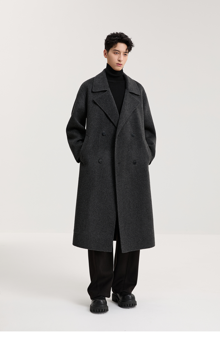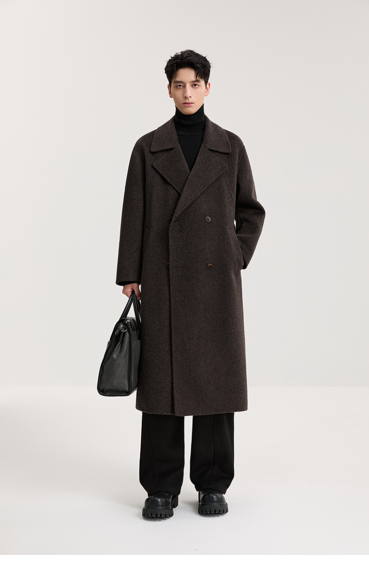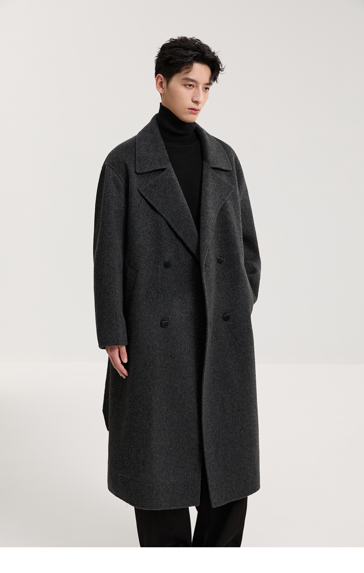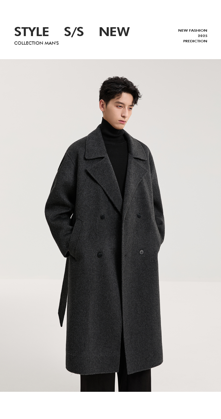 100% Sheep Wool Black Double-Sided Woolen Coat for Men 2025 Autumn New High-End Woolen Mid-Length Coat