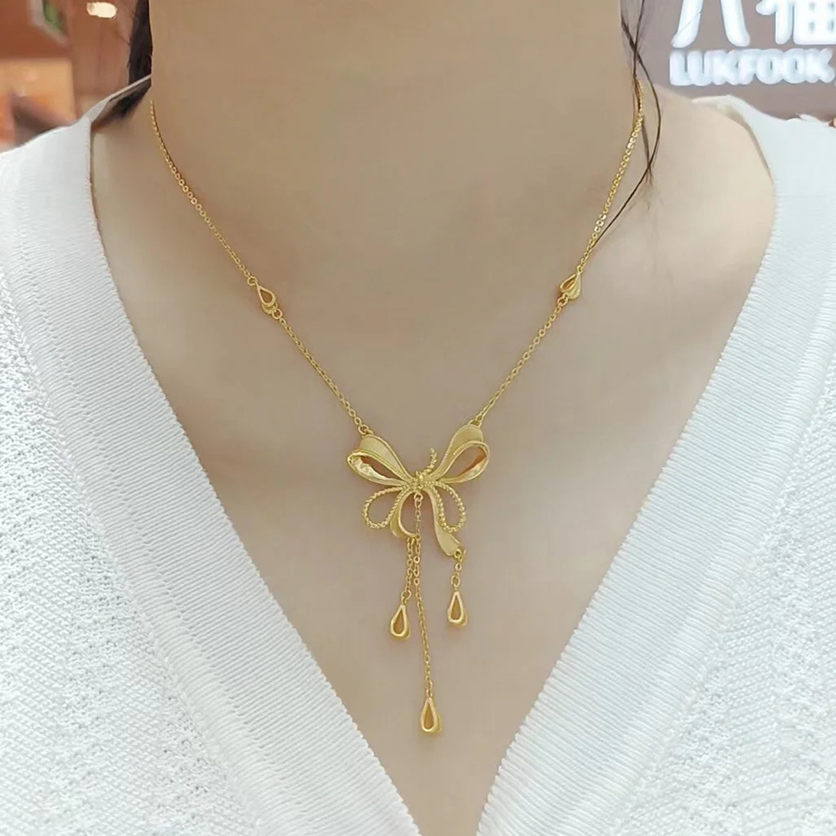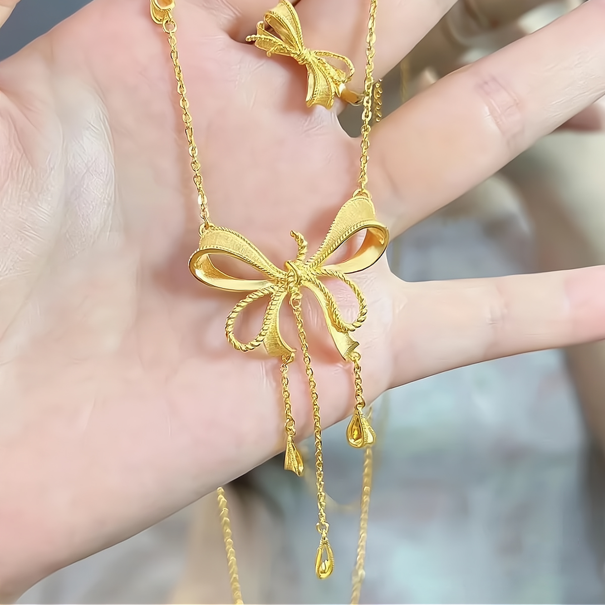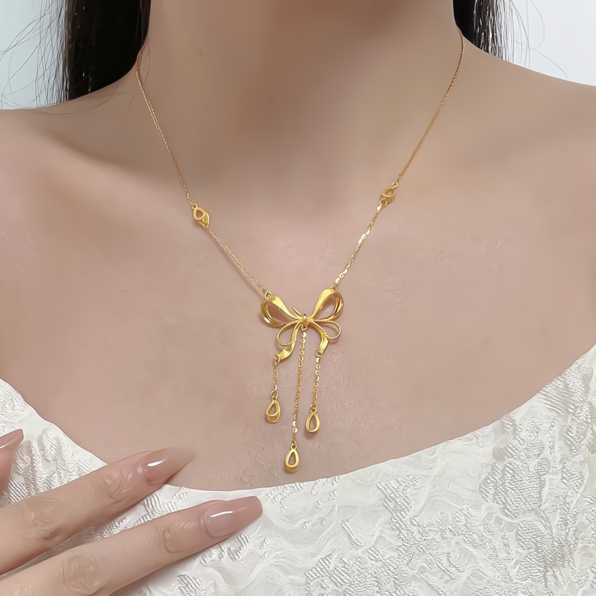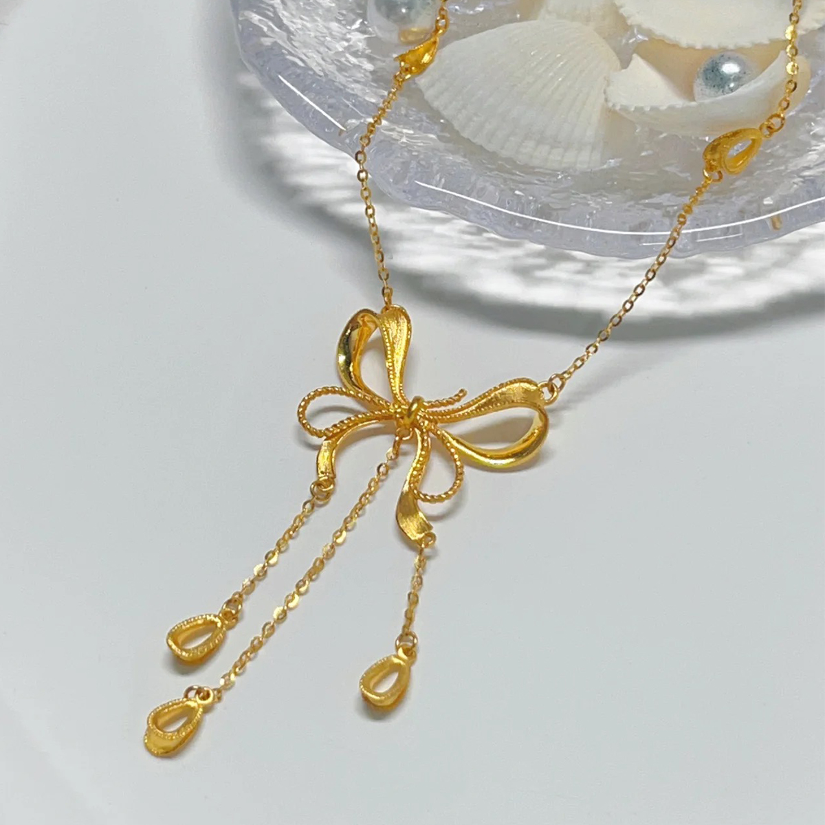 Water shell gold necklace at large Princess Bows 999 gold pendant Heart tassel one-piece chain for girls