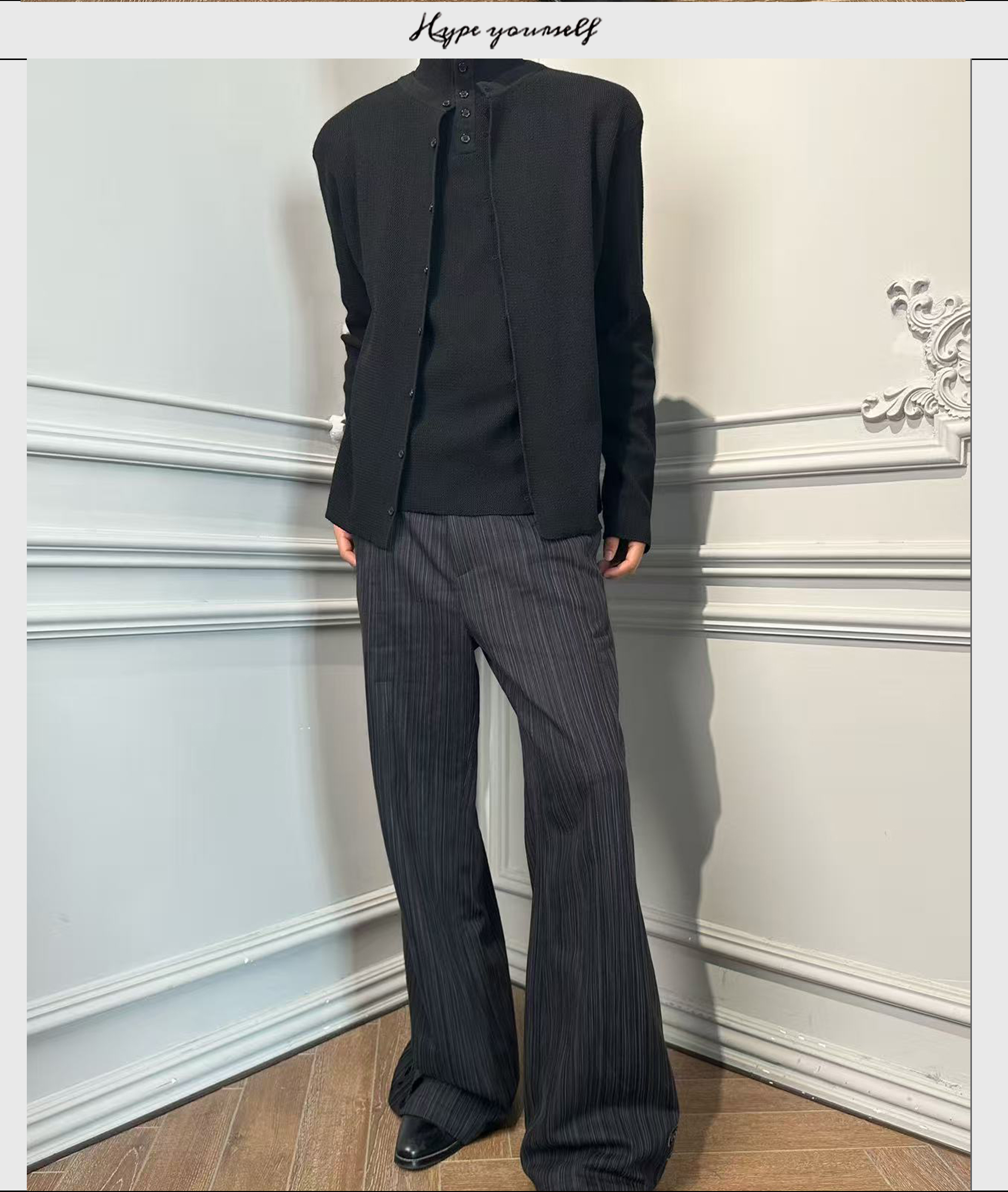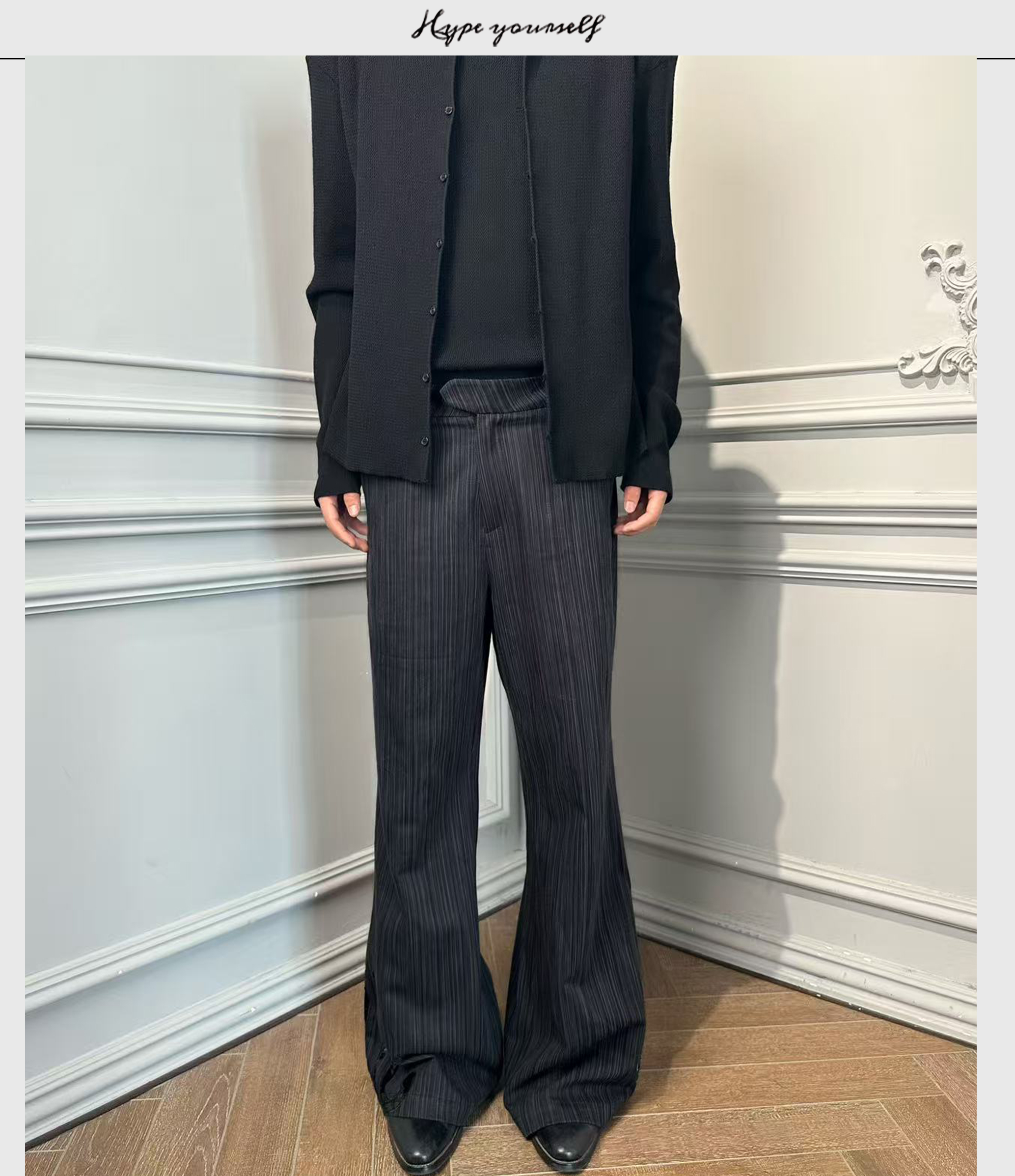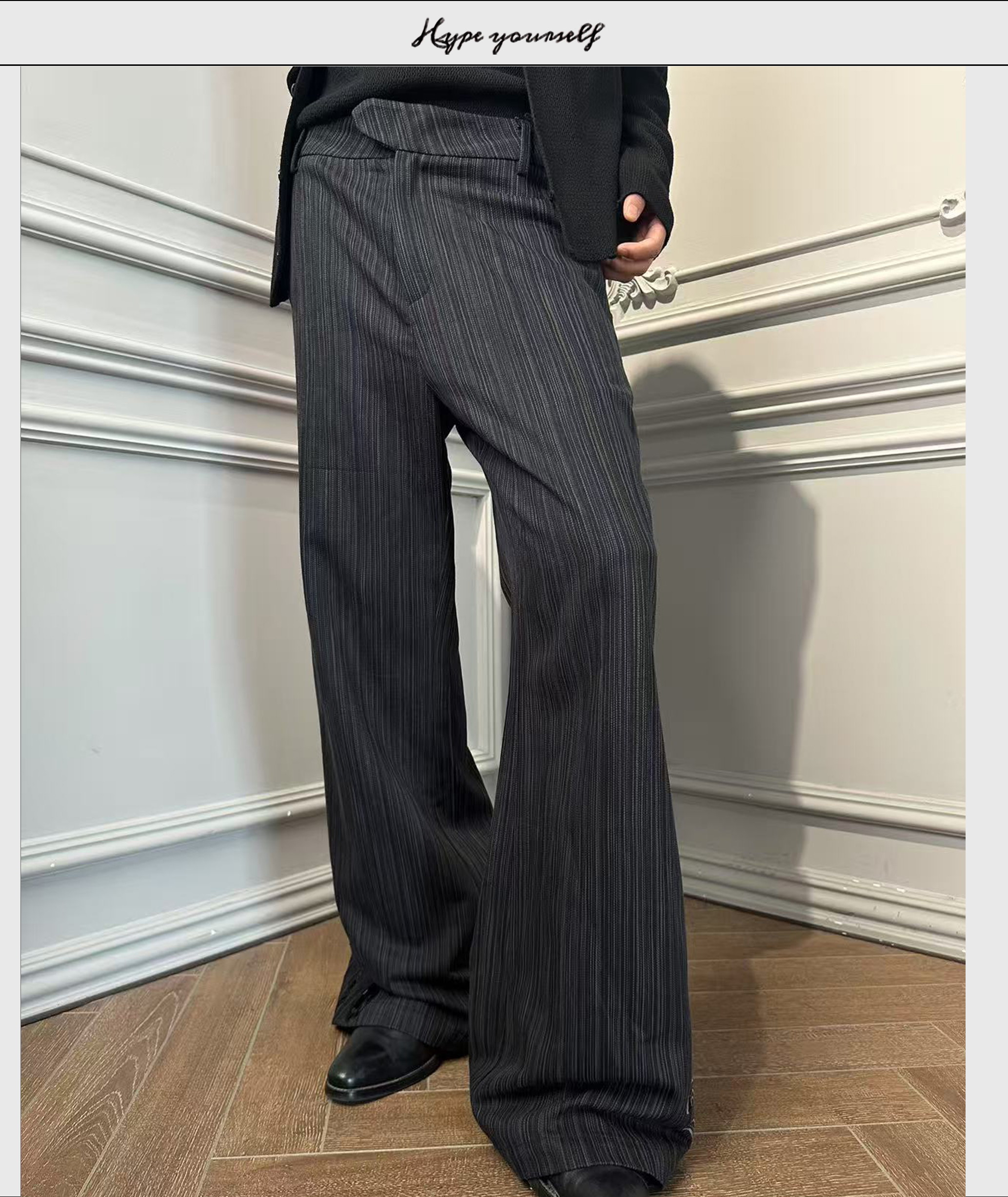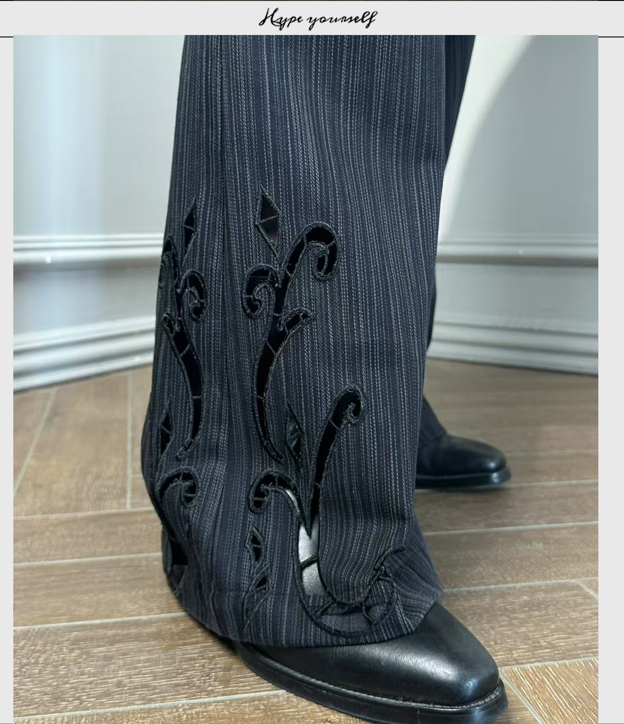 Hype Yourself: "Per Mirror" Iris Flower Hollow Floral Embroidery Textured Striped Flared Trousers