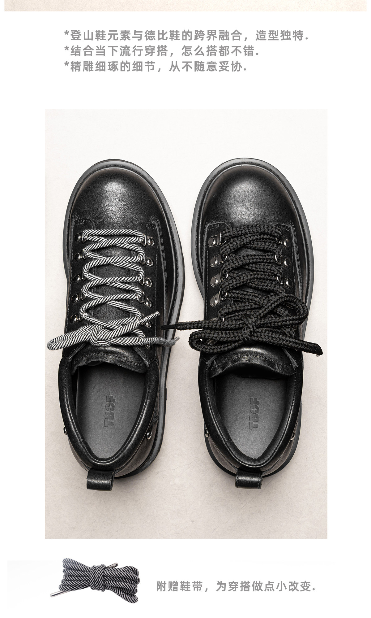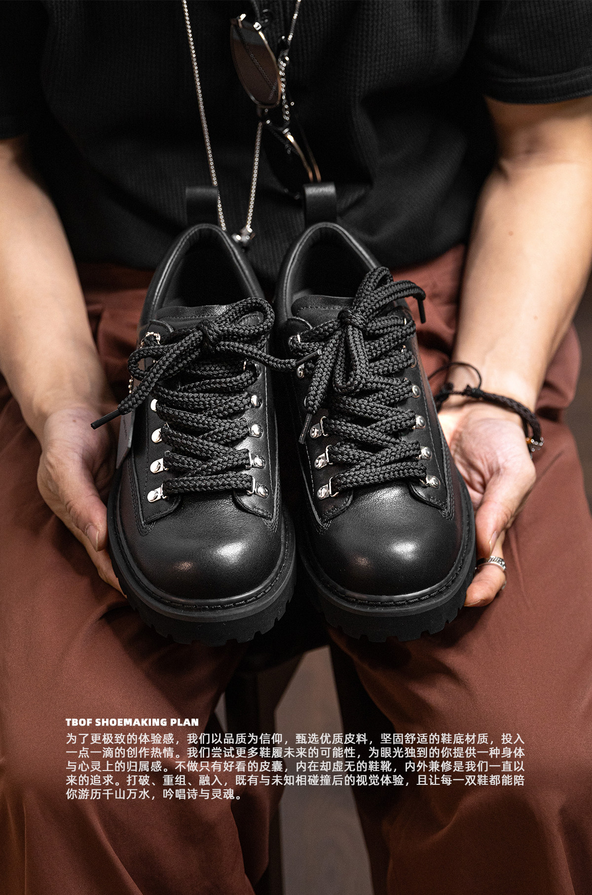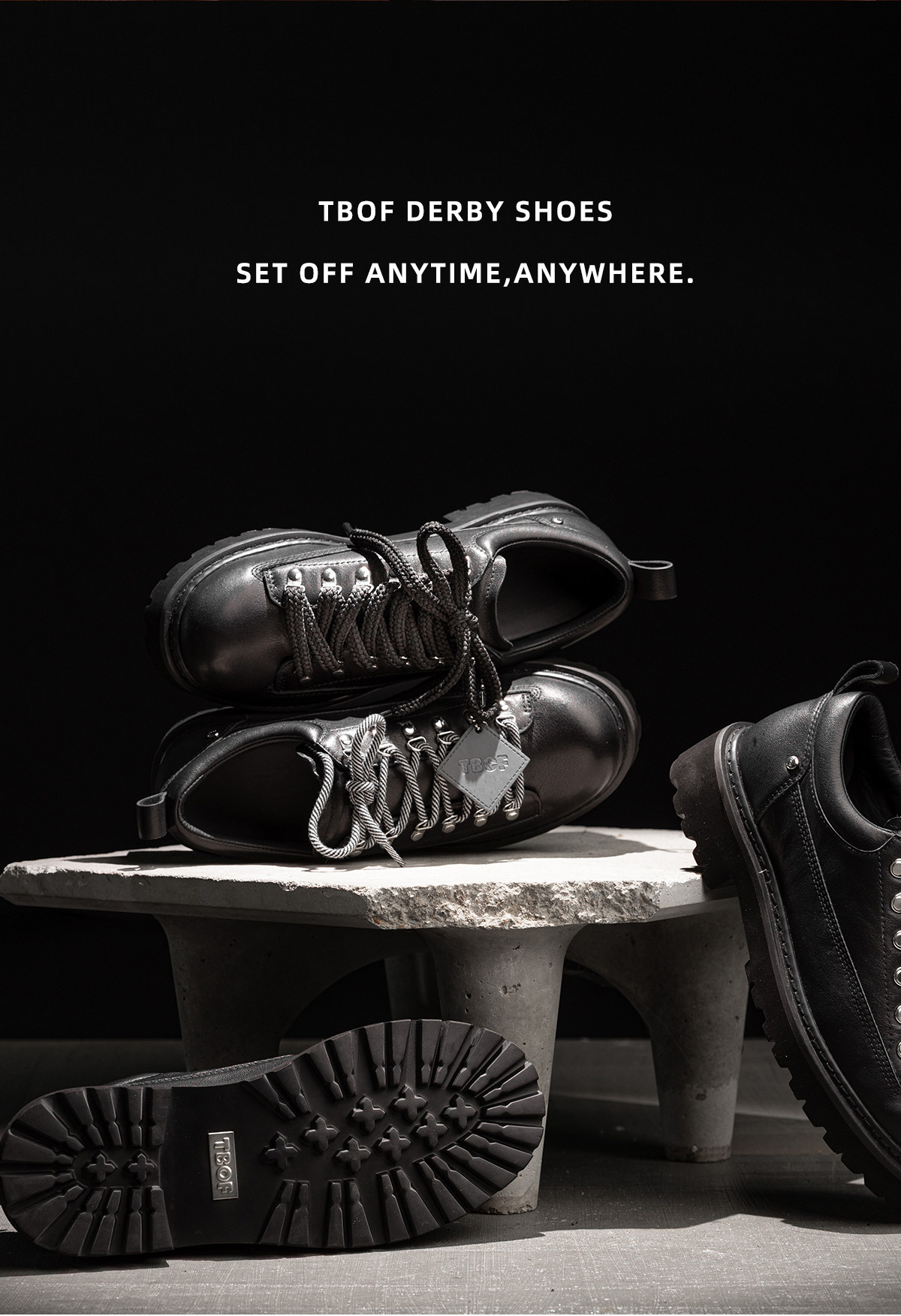 Tbof【Cross-Border Fusion】First Layer Cowhide Round-Toe Lace-Up Hiking Derby Shoes for Men, Height-Increasing Casual Leather Shoes