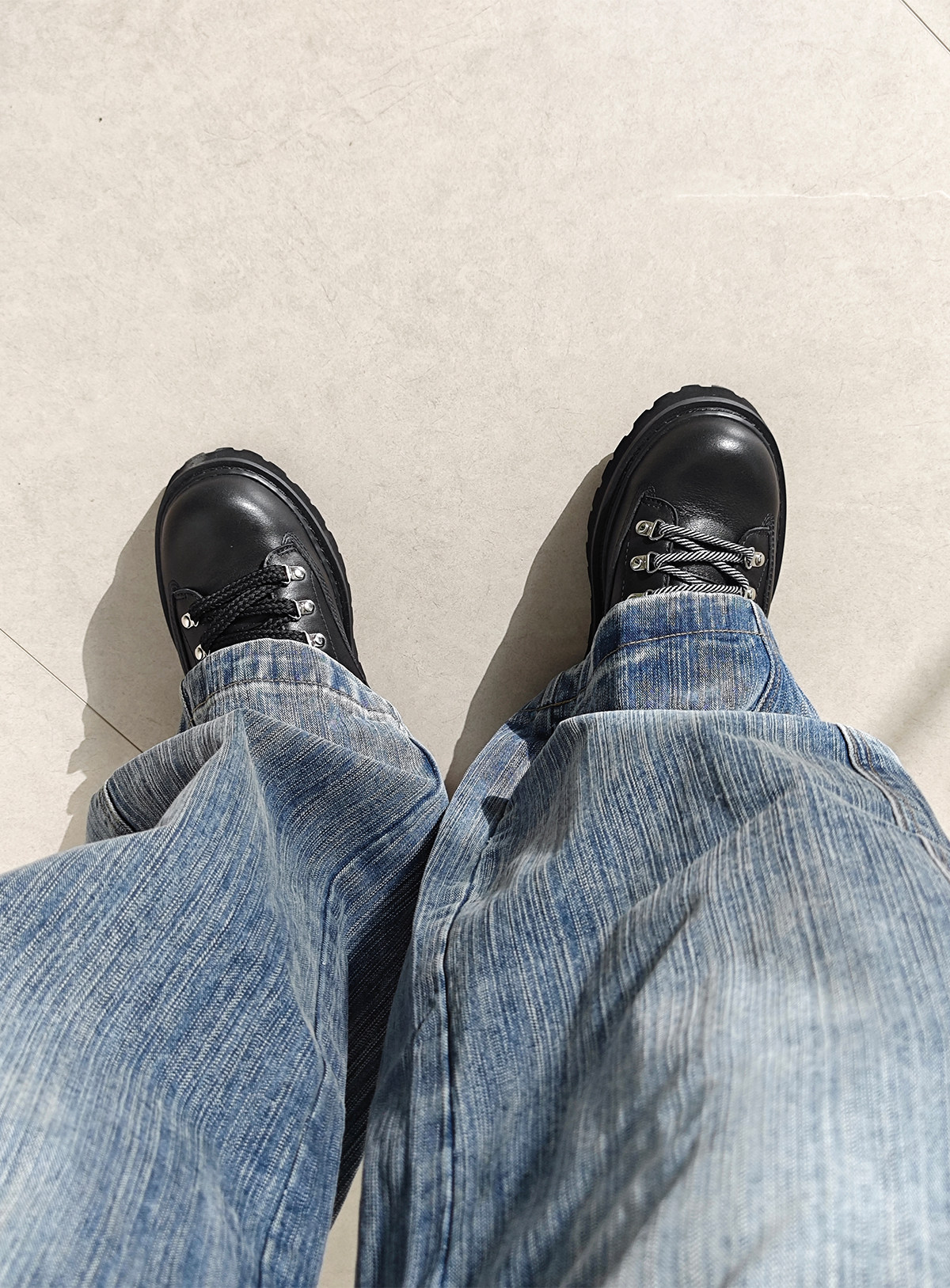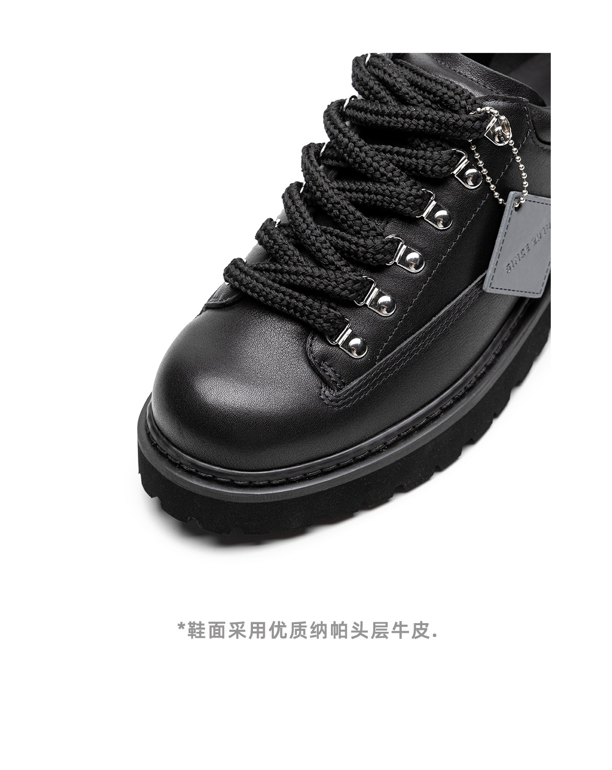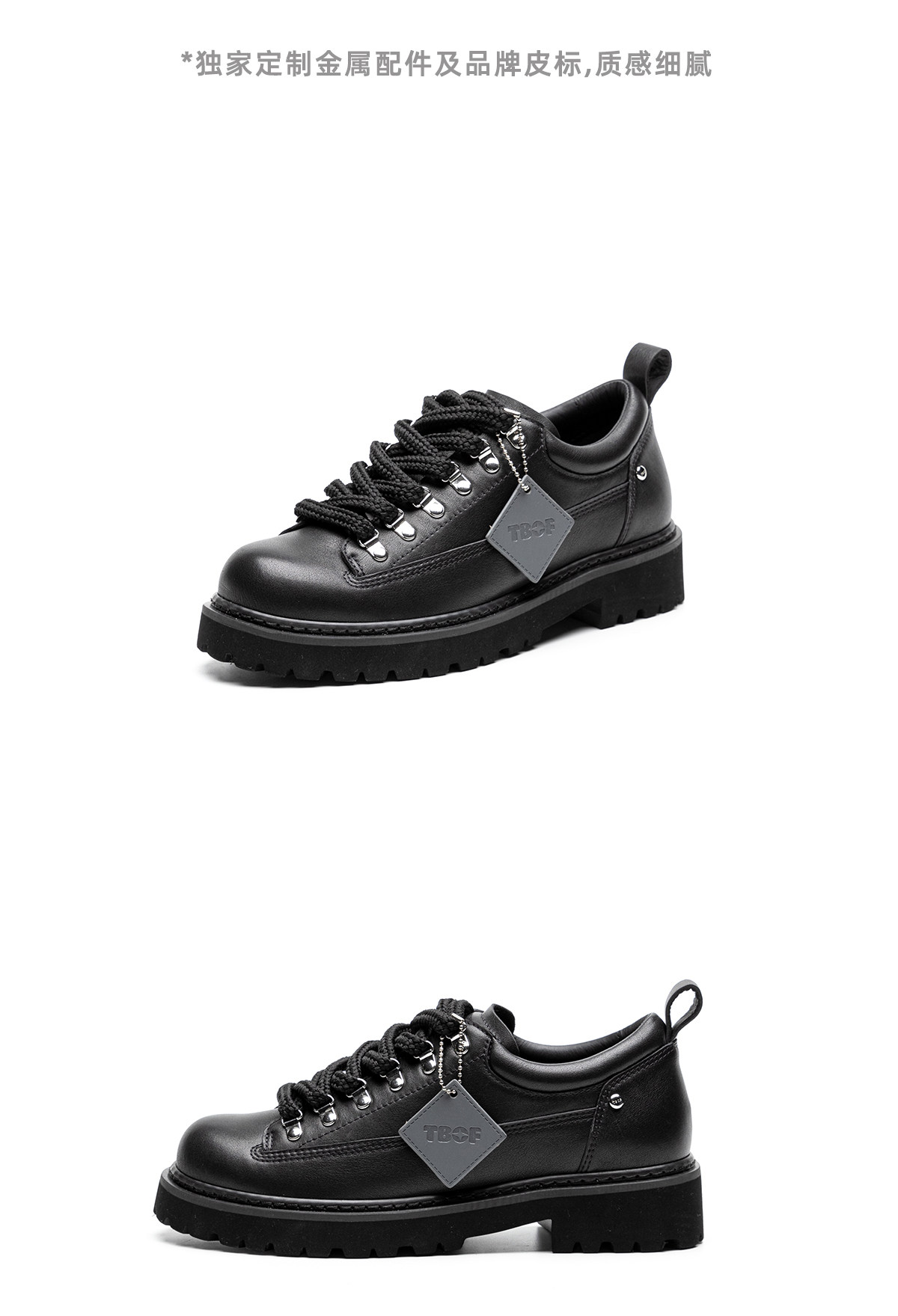 Tbof【Cross-Border Fusion】First Layer Cowhide Round-Toe Lace-Up Hiking Derby Shoes for Men, Height-Increasing Casual Leather Shoes