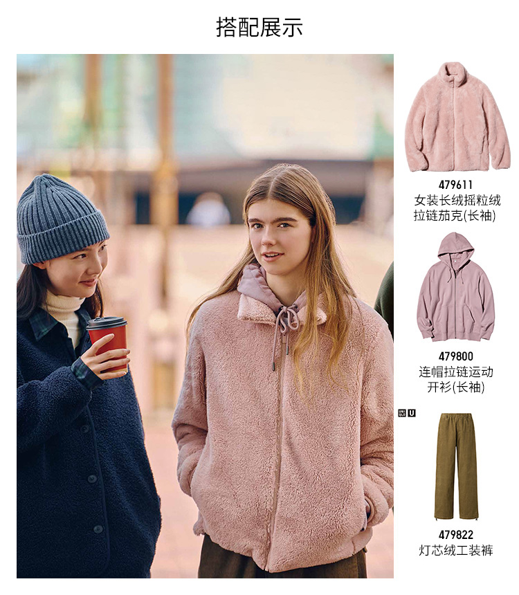 UNIQLO Women's Long Velvet Fleece Zipper Jacket/Long sleeves Outwear jacket 25 Fall and winter New arrival 479611