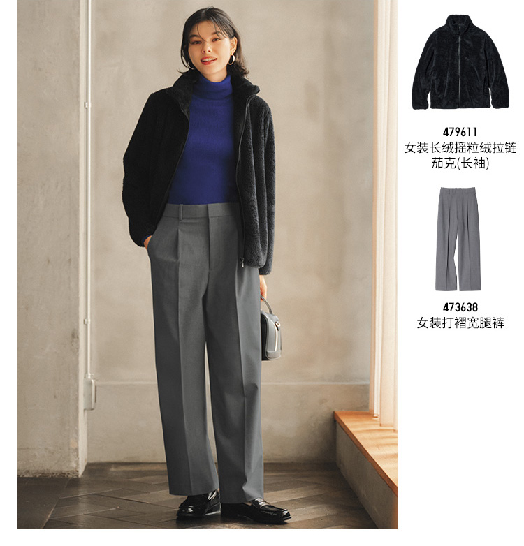 Uniqlo Women's and Men's Long Fleece Zipper Jacket/Long-Sleeve Coat Jacket Winter New Model 479611