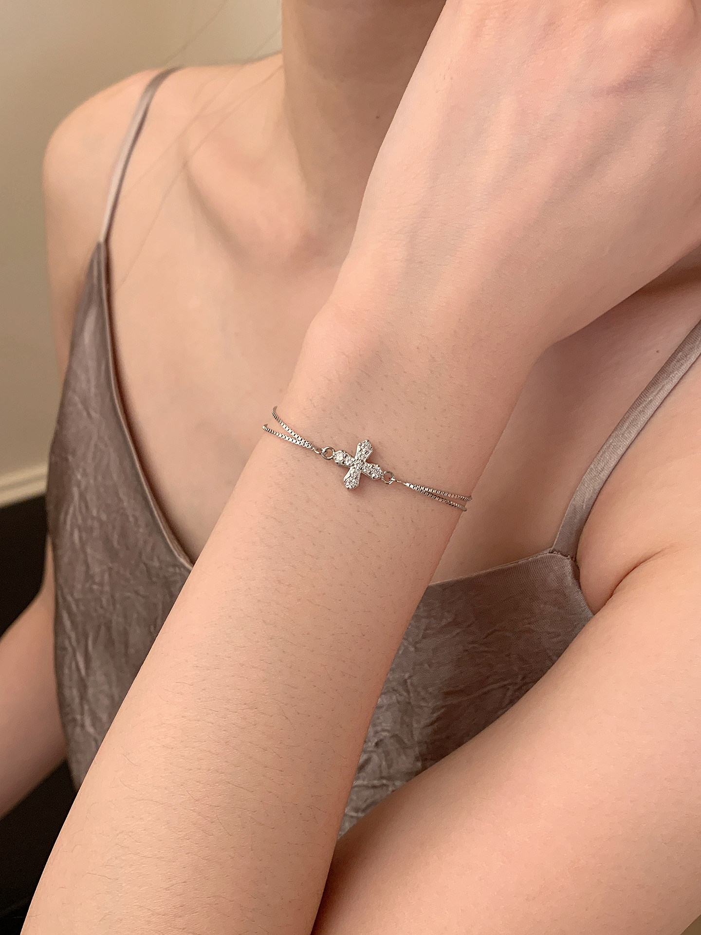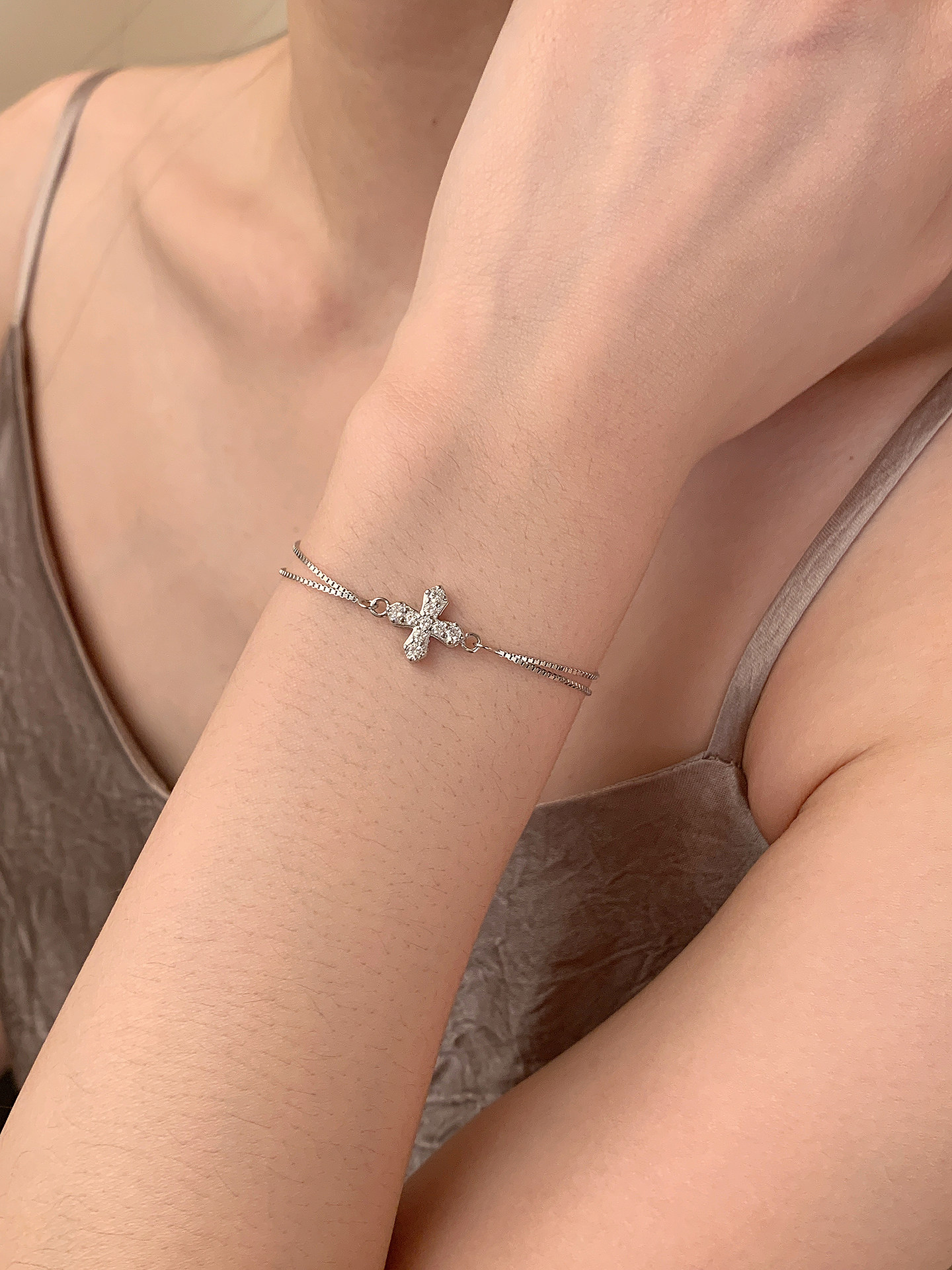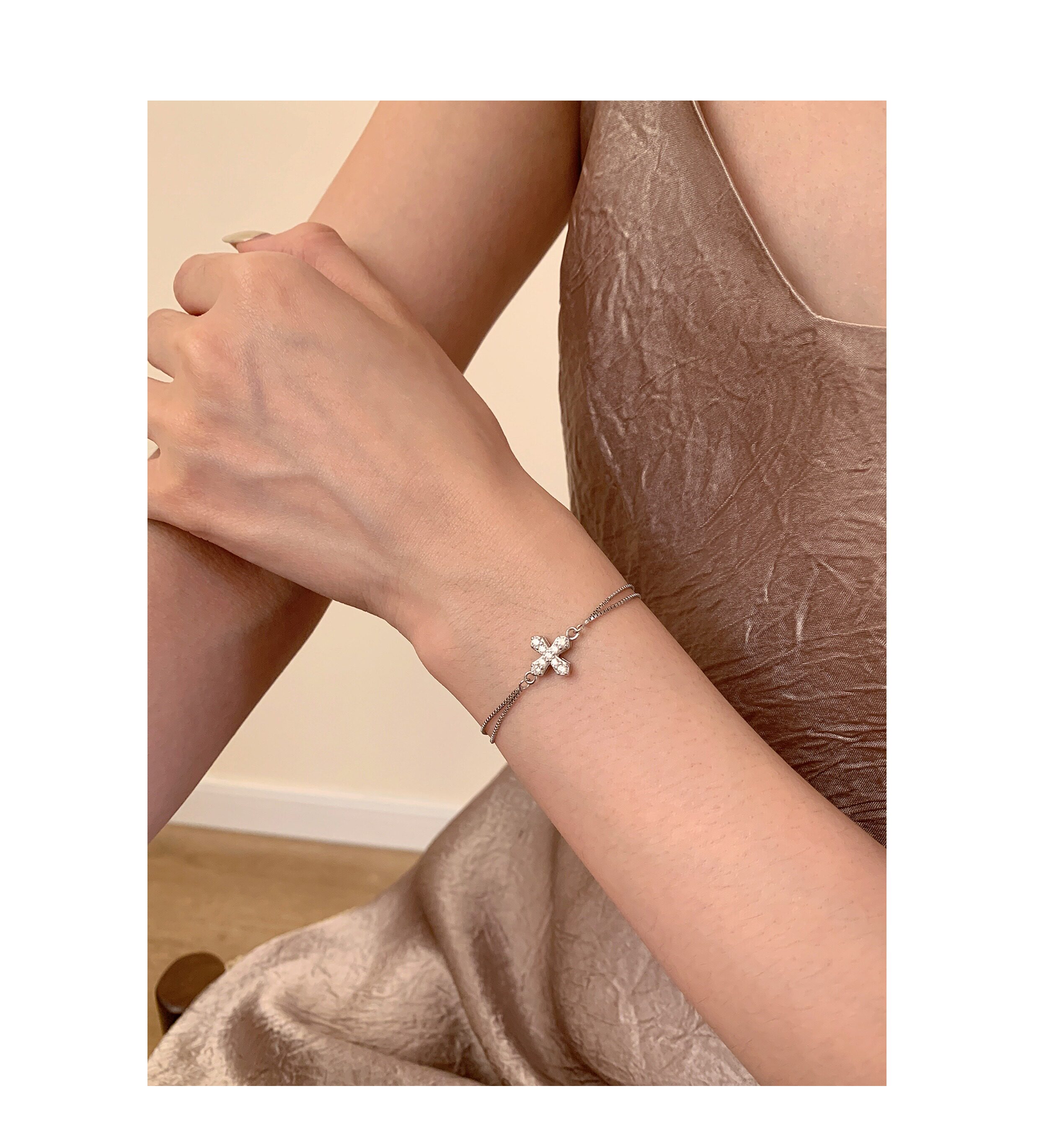 Lunar Moon's Sea Cross Double-Layer S925 Sterling Silver Bracelet Women's Jewelry Niche Design Simple and Versatile ins