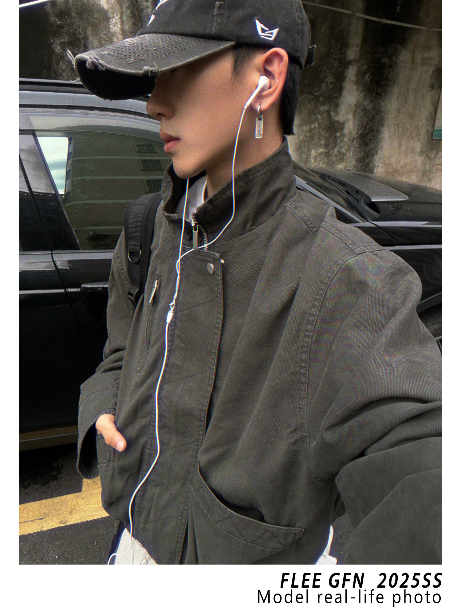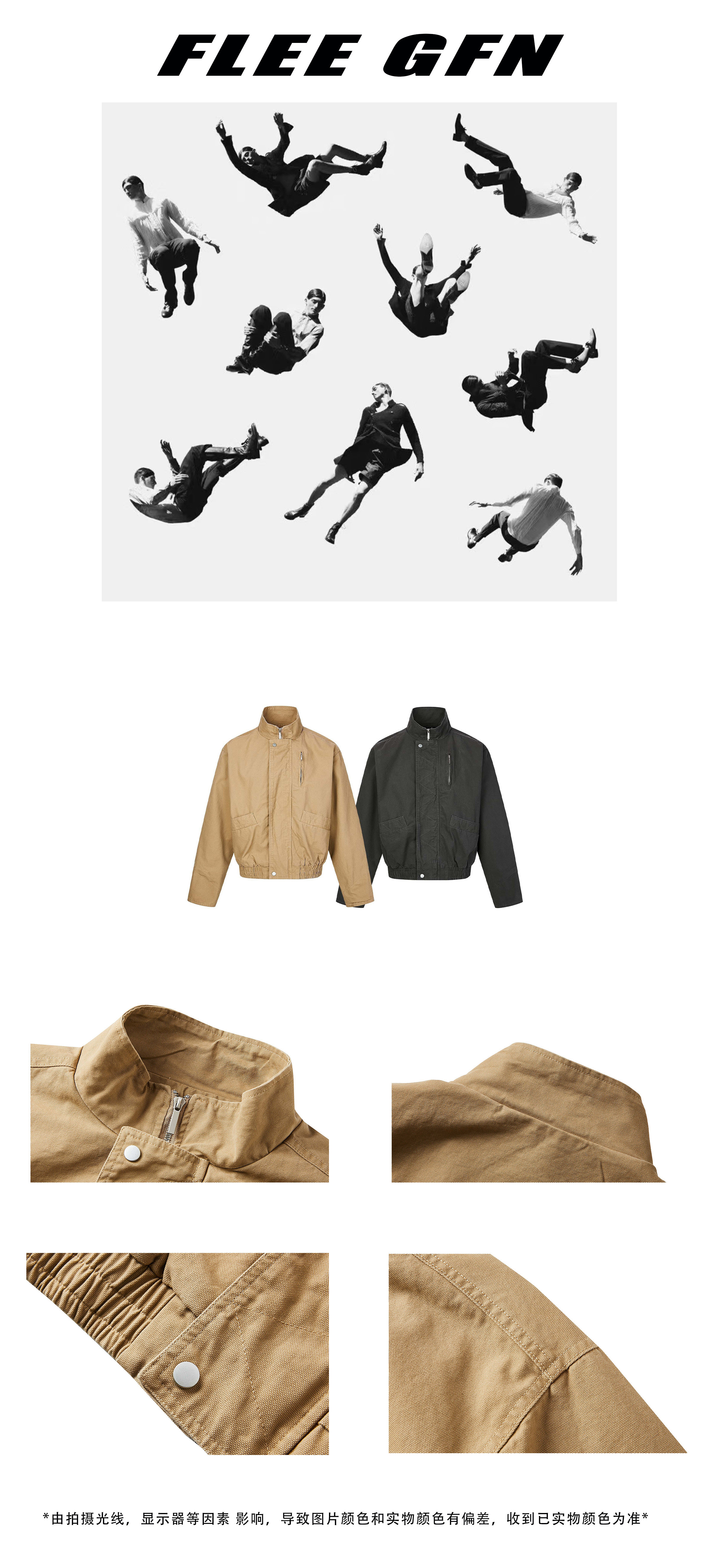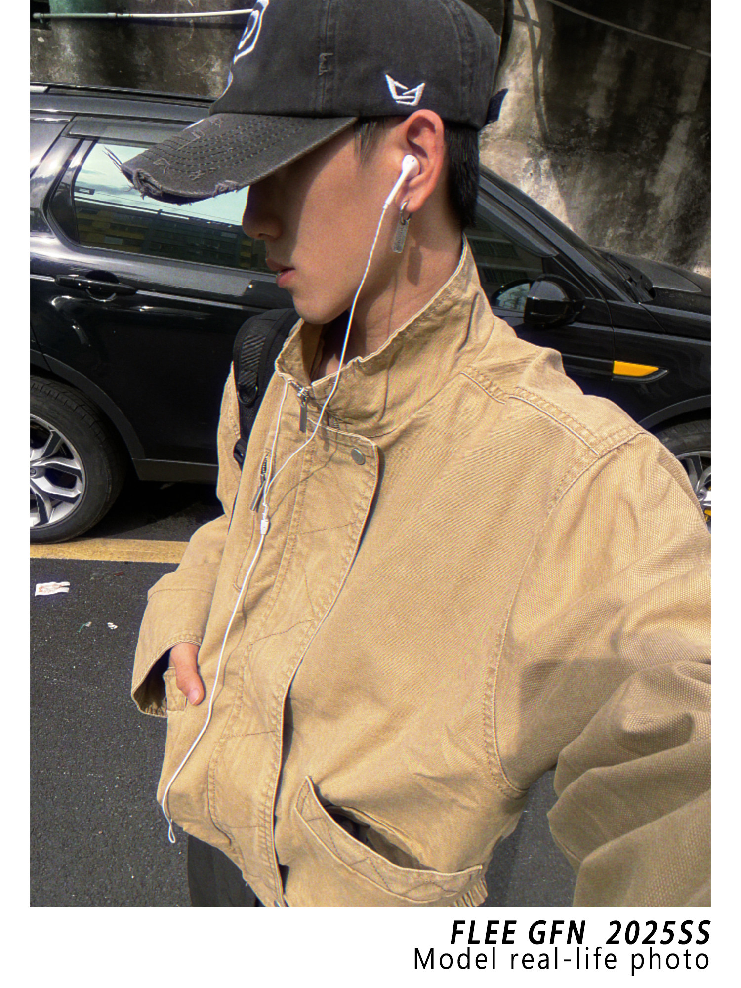 Escape from Guangfu South American-Style Bomber Jacket with Stand Collar, Boxy Short Style, Barn-Style Workwear Jacket, Trendy
