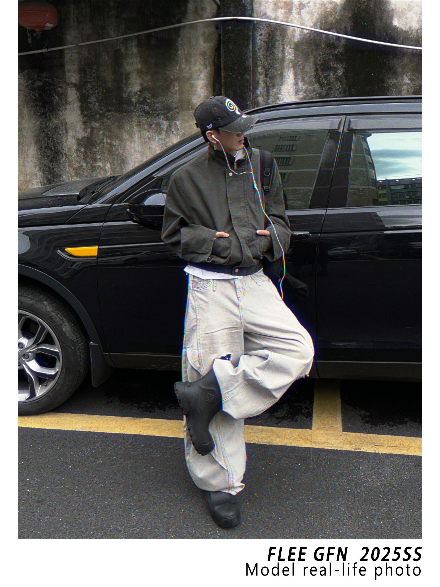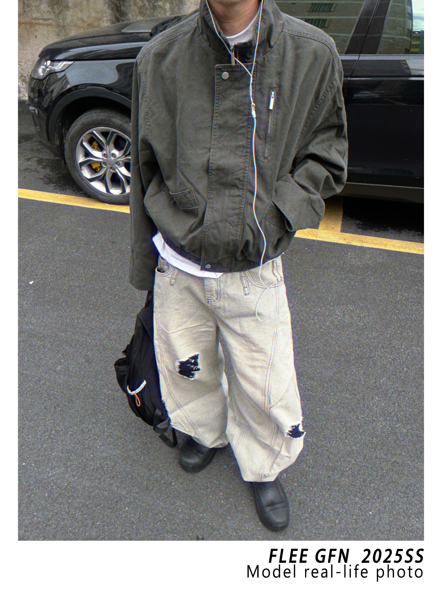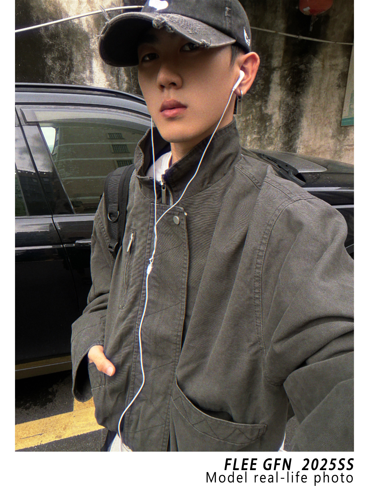 Escape from Guangfu South American-Style Bomber Jacket with Stand Collar, Boxy Short Style, Barn-Style Workwear Jacket, Trendy