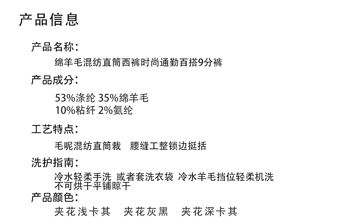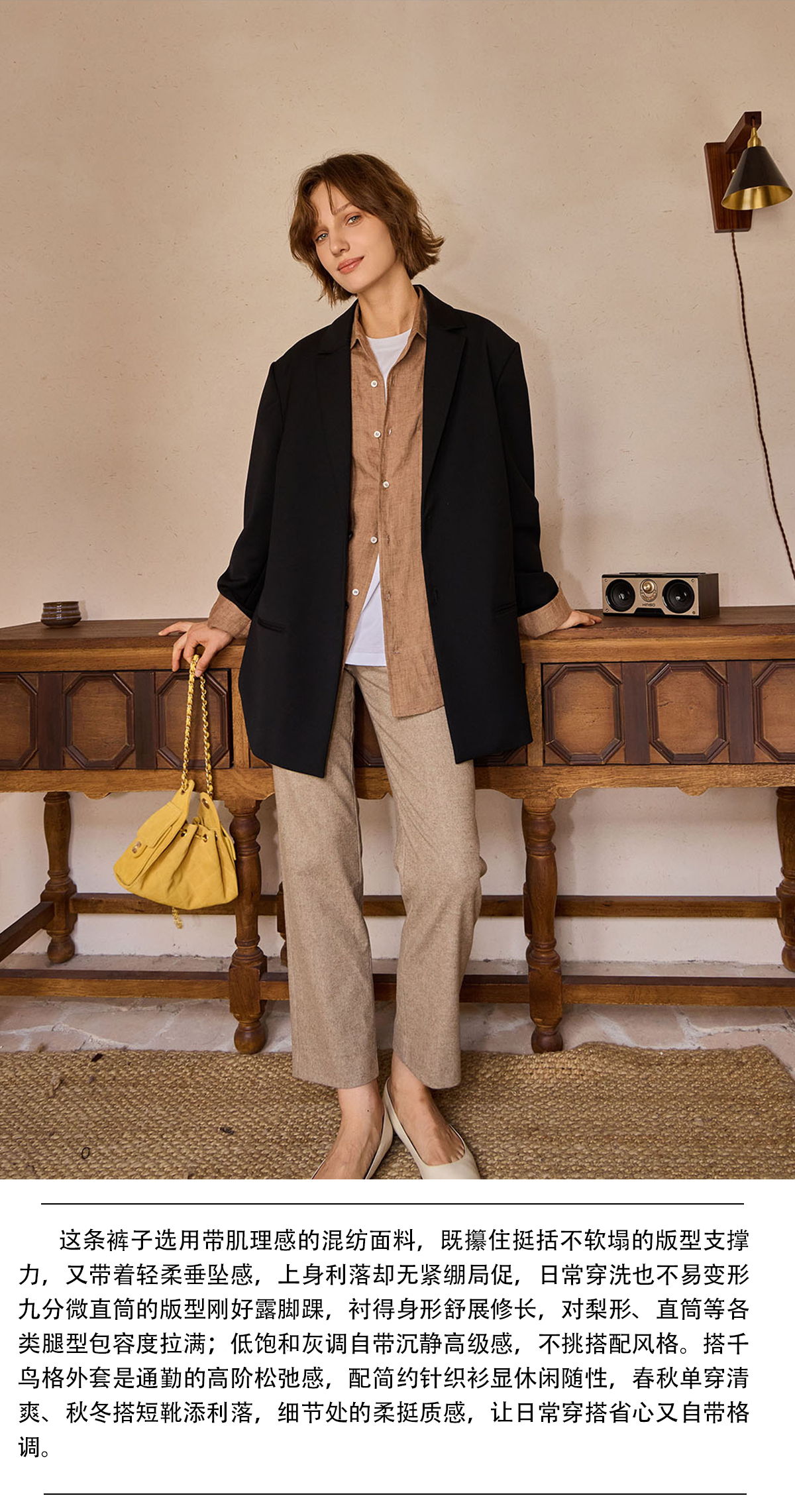 The Ease Comfortable [Pants King] Wool Blend Straight-Leg Dress Pants Fashionable Commuting Versatile 9/10 Length Pants