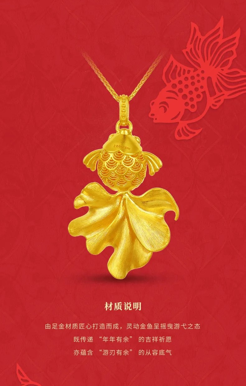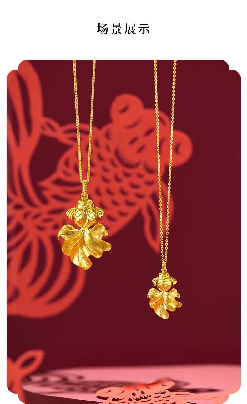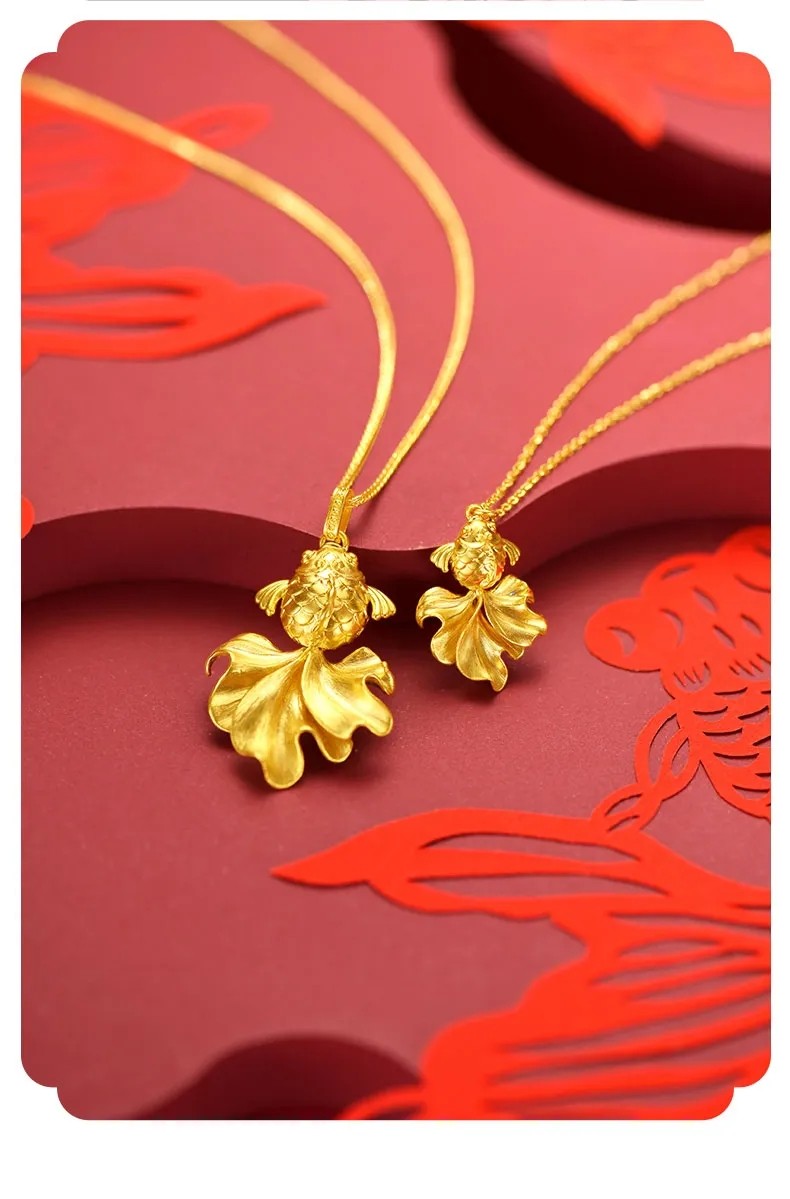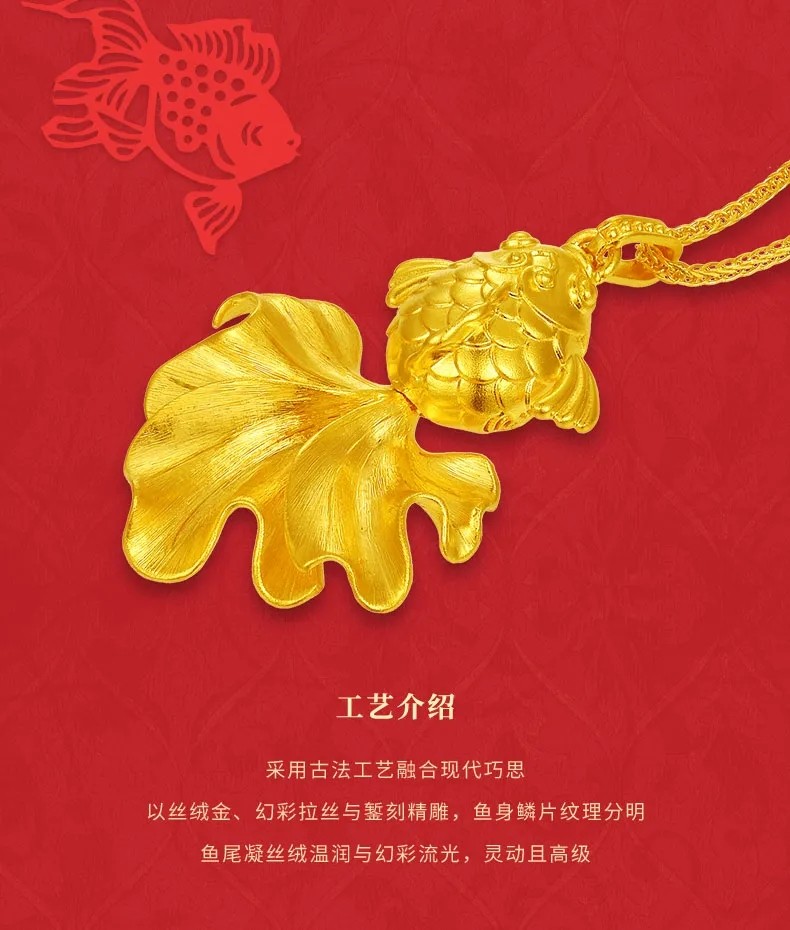 Lao Fengxiang Fengxiang Happy Occasion Fish Joy Series Golden Jubilee Koi Gold Necklace New Year Gift