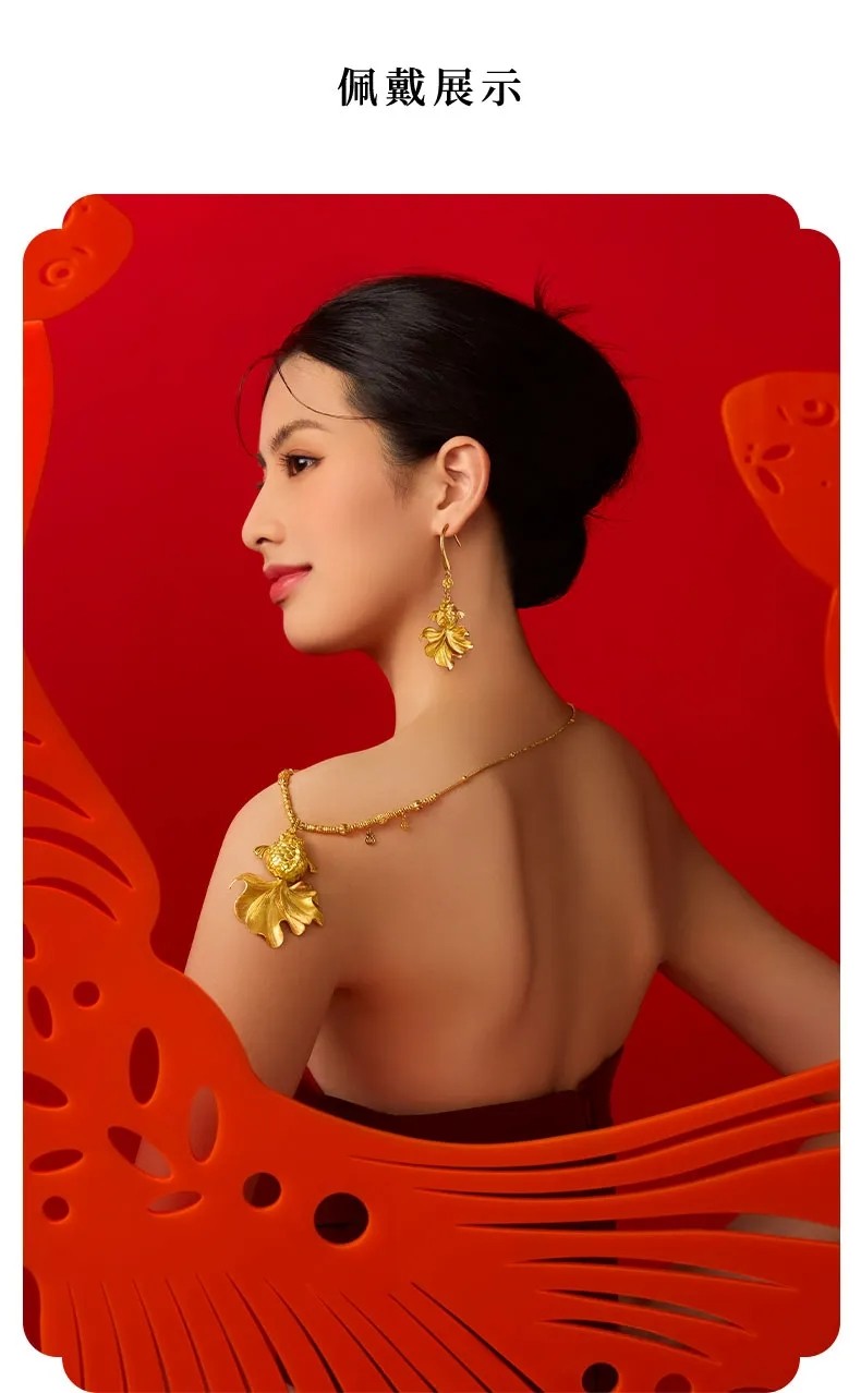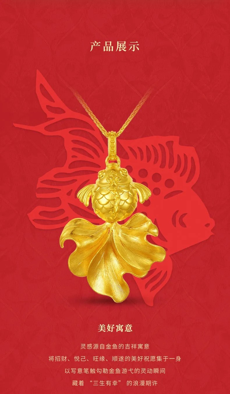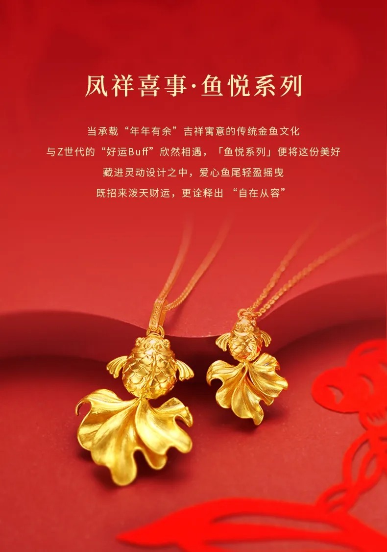 Lao Fengxiang Fengxiang Happy Occasion Fish Joy Series Golden Jubilee Koi Gold Necklace New Year Gift