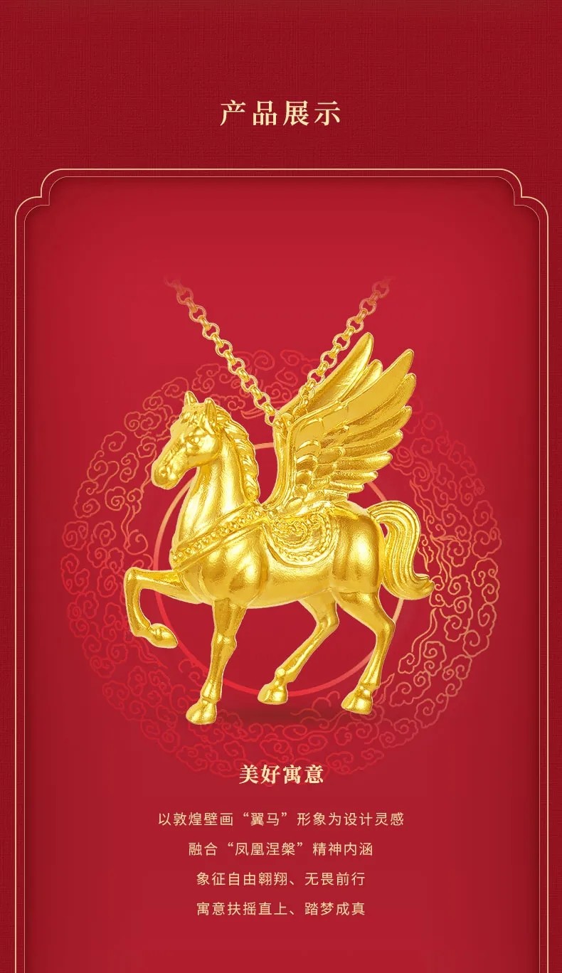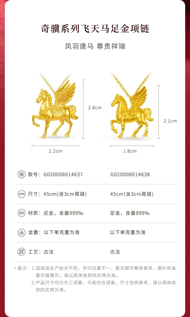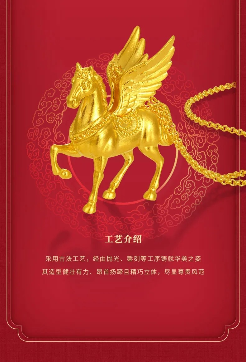 [Same Style as Ding Yuxi] Lao Fengxiang Qiji Series Flying Horse Gold Necklace, Pure Gold, New Year Gift