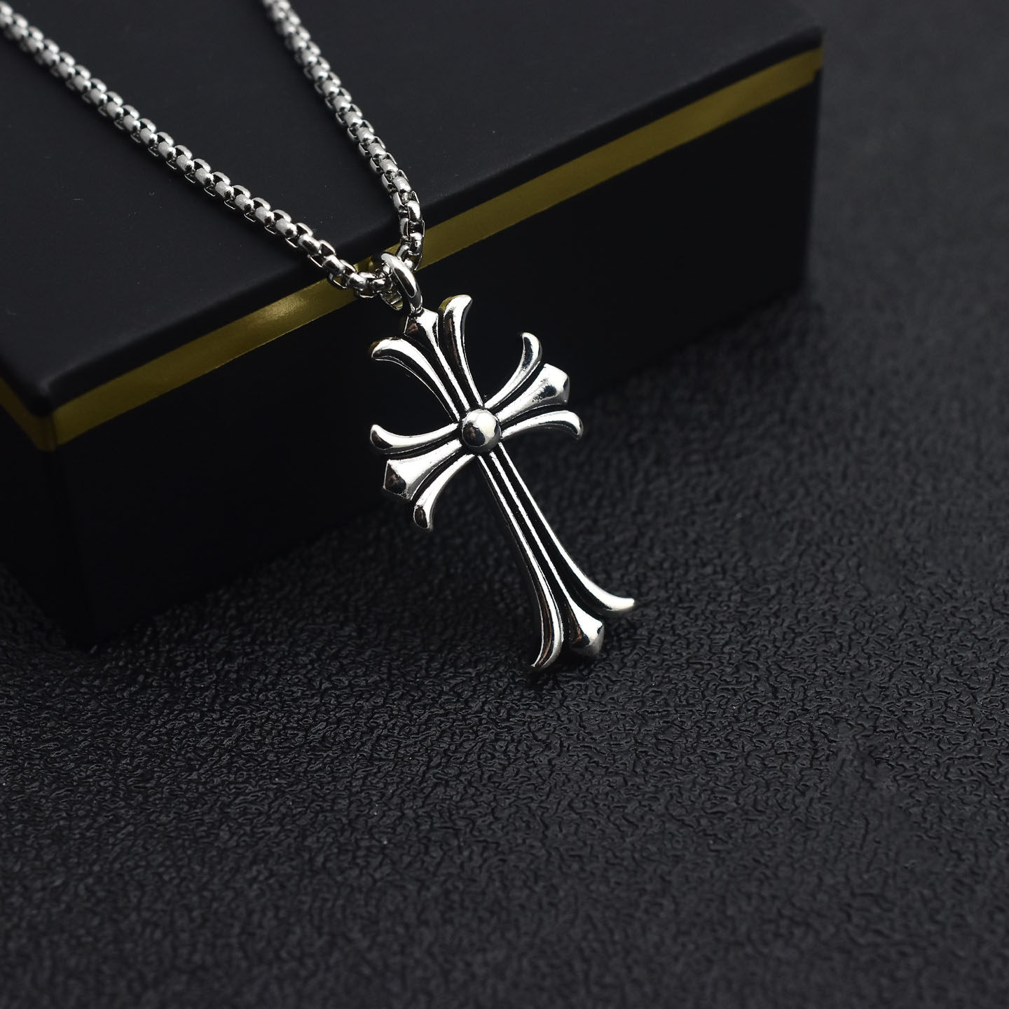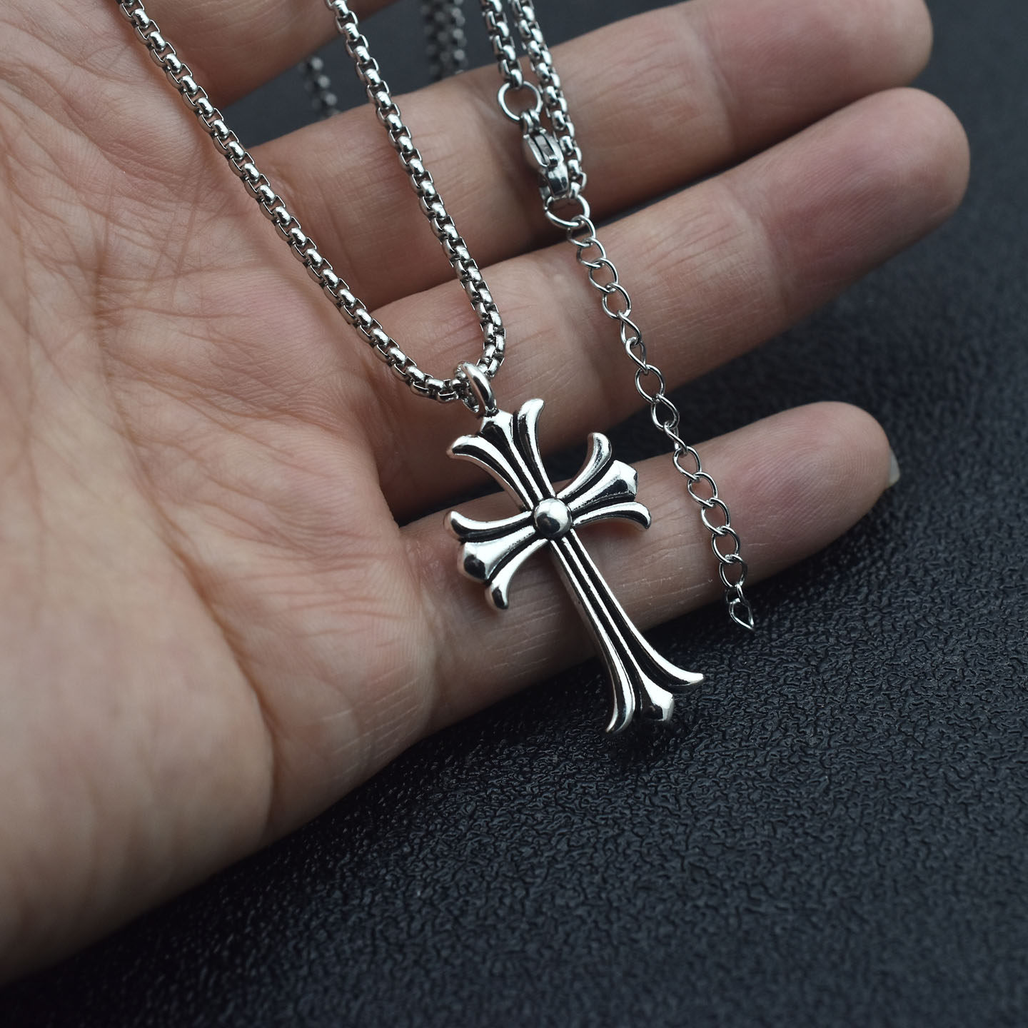Retro Antique Silver Cross Pendant Necklace for Men and Women, Versatile T-Shirt, Sweatshirt Chain, Sweater Chain, Couple's Long and Short Necklace