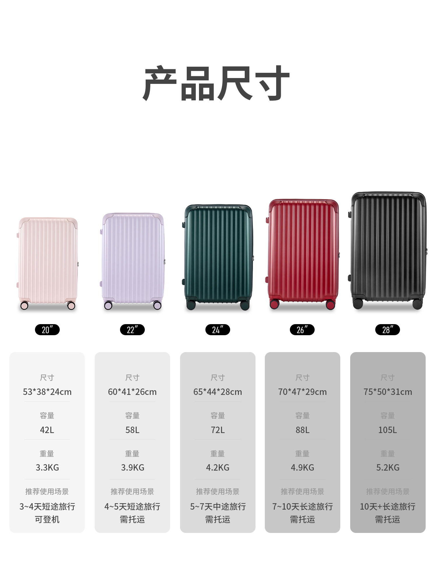 Marrlve【Malve】Pure Pc Zipper 20-Inch Carry-On Luggage for International Students 24inch Sturdy Trolley Suitcase Travel Luggage
