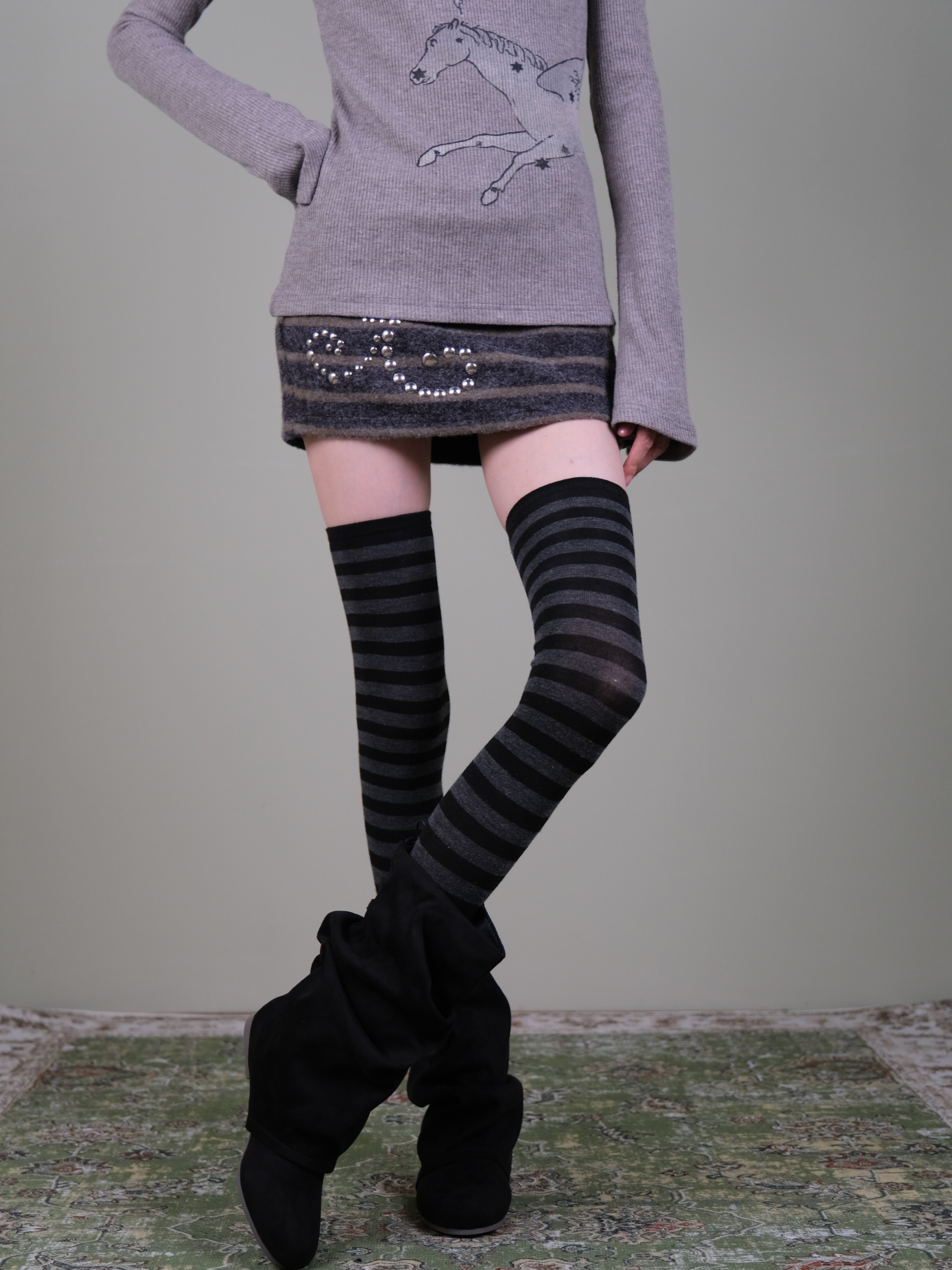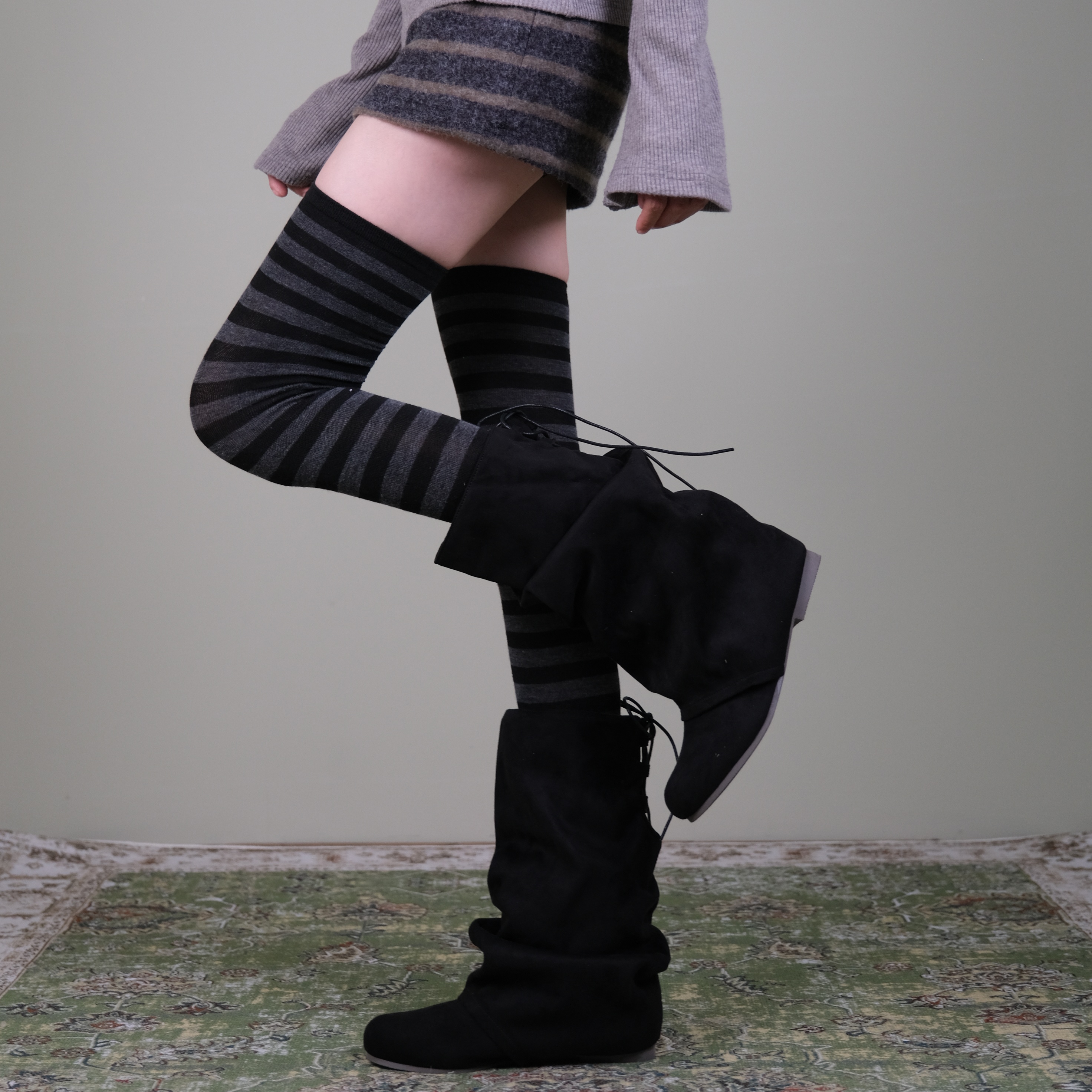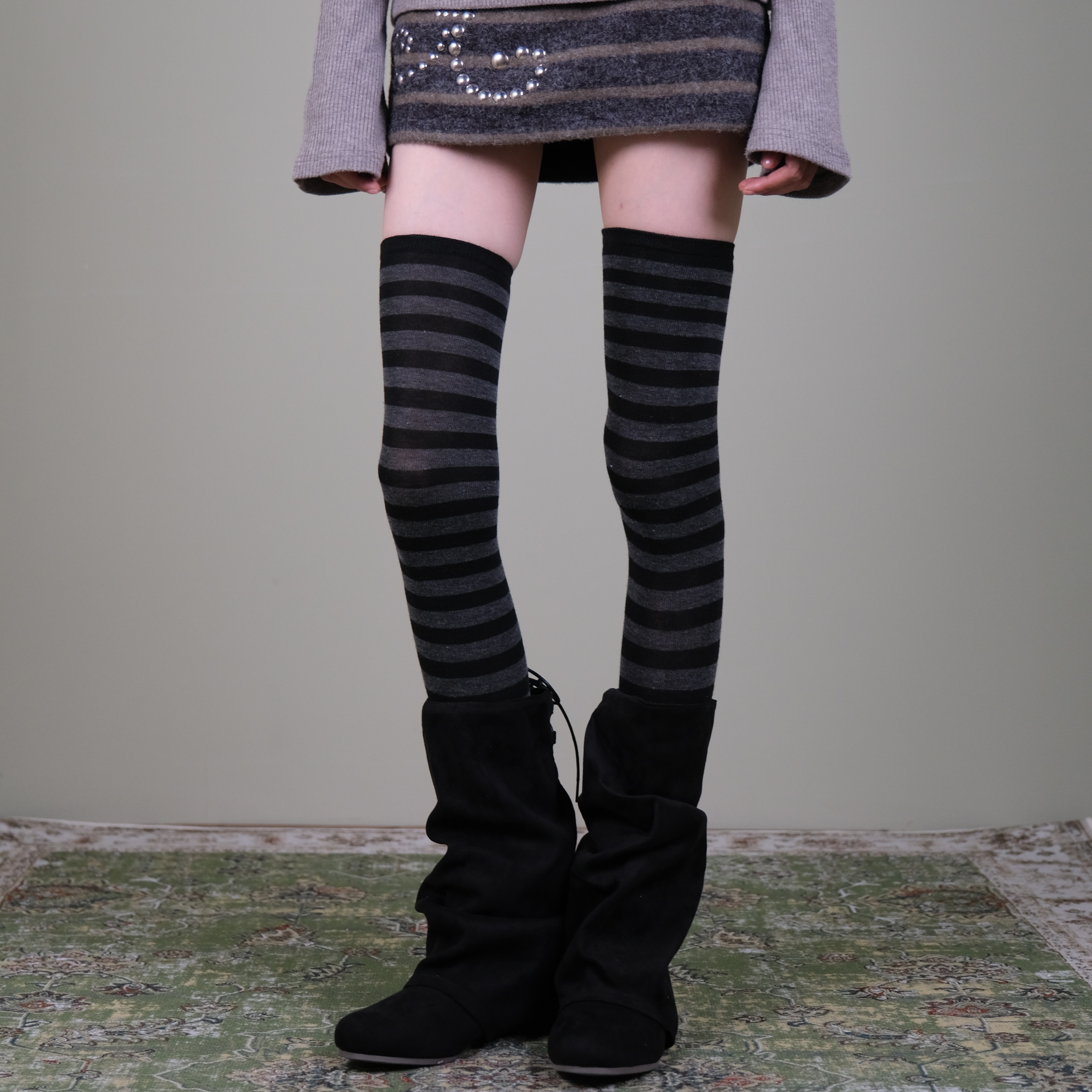 Xiling's "Striped Daily Style" Autumn/Winter Vintage Wood Tone Striped Over-The-Knee Thigh Socks for Women
