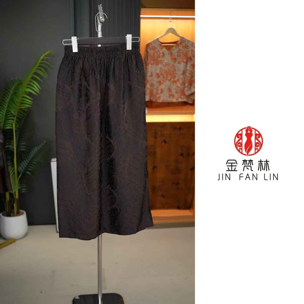 【Elegant Dance of Pen and Ink】New Chinese-Style Xiangyun Silk Sea Wave Pattern Half-Skirt with Retro Elastic Waist and Floral Design