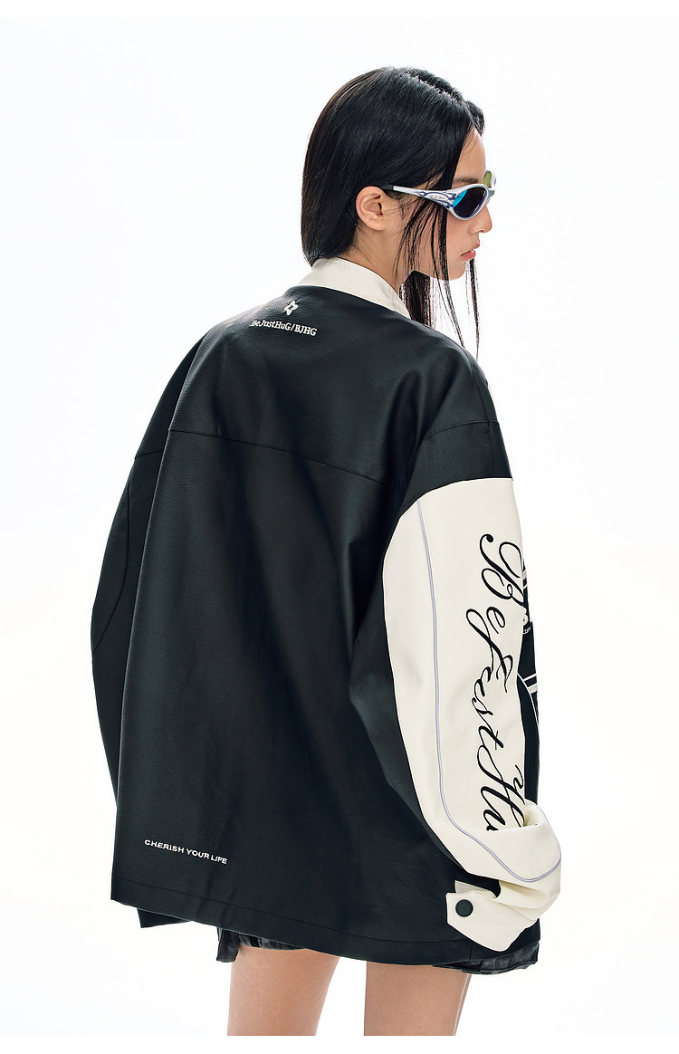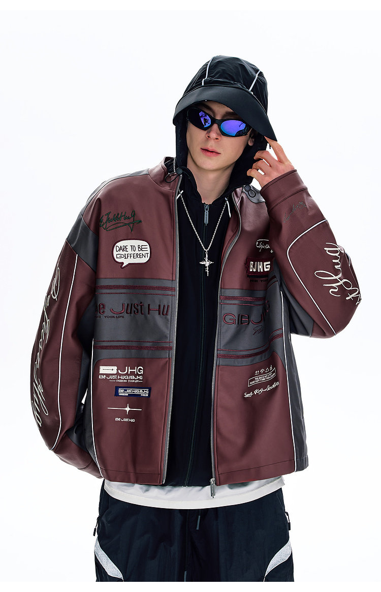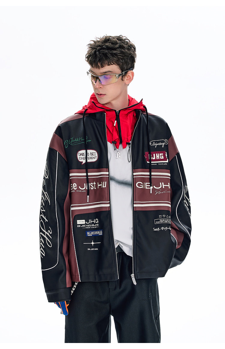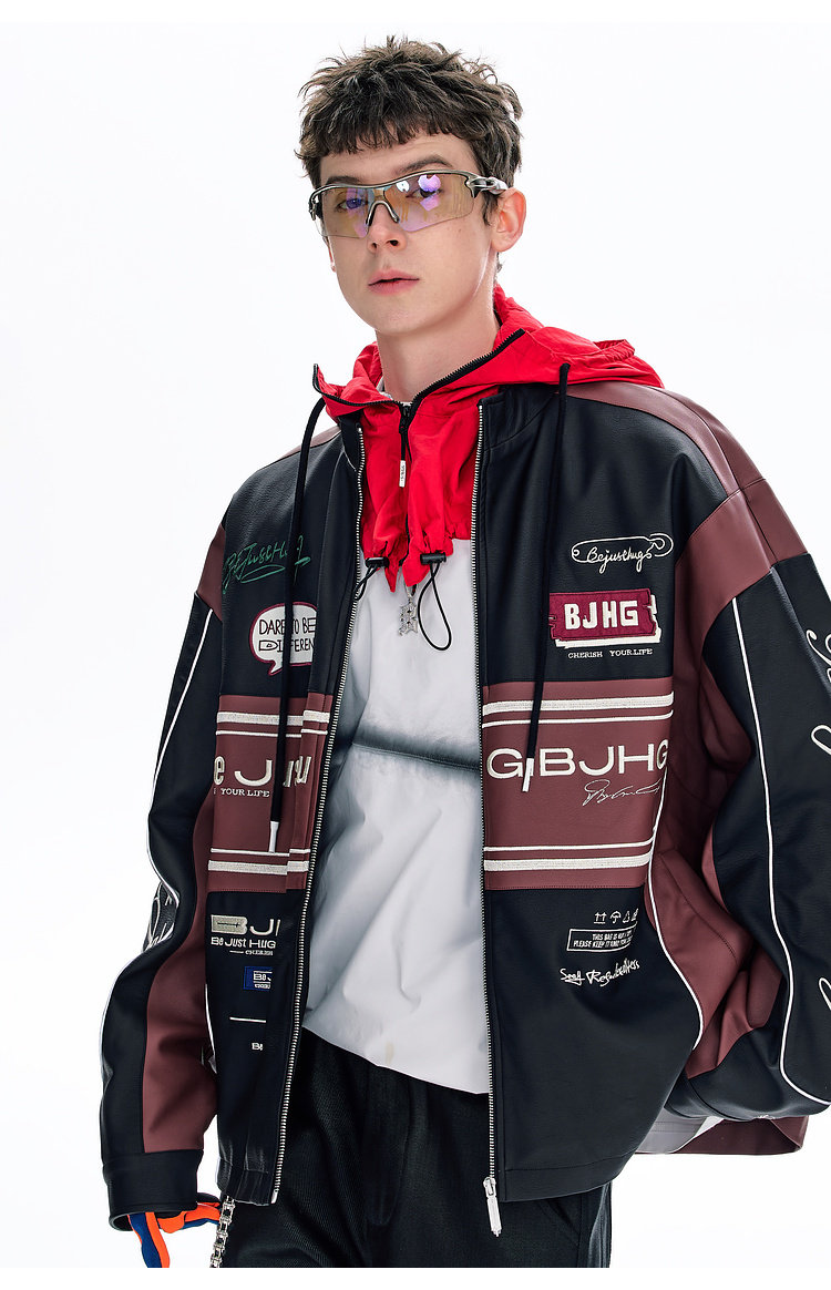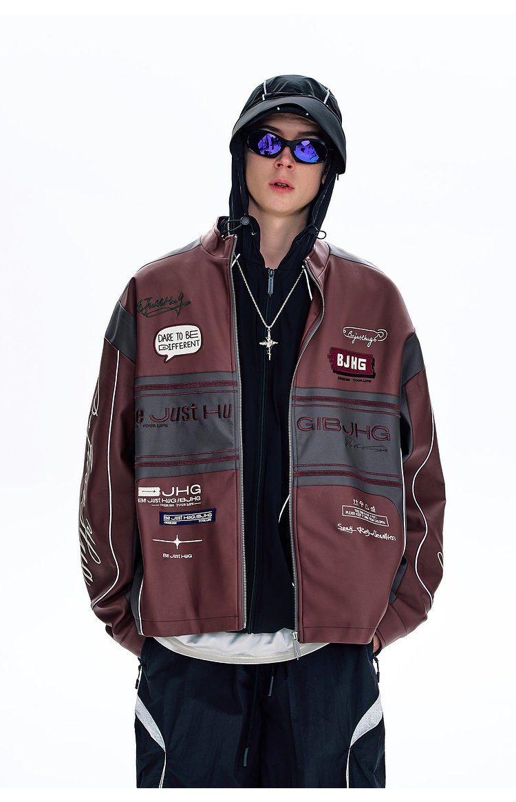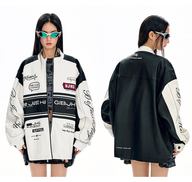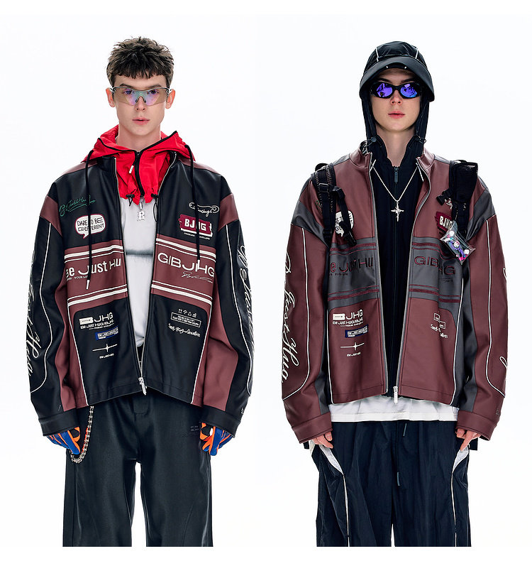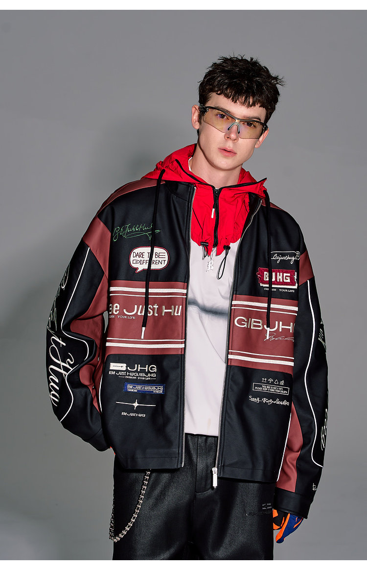 Bjhg Reckless Style Song Yuqi Same Style American Motorcycle Leather Jacket Men's Spring Red Racing Jacket Women's
