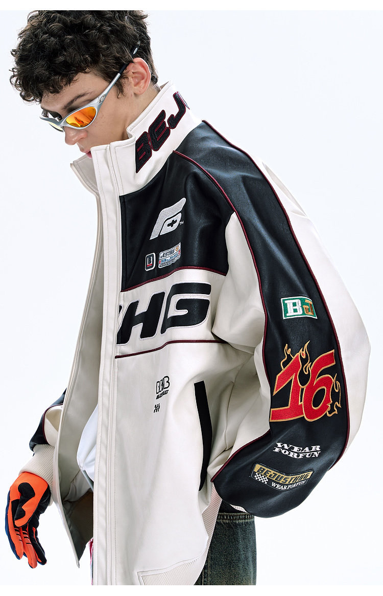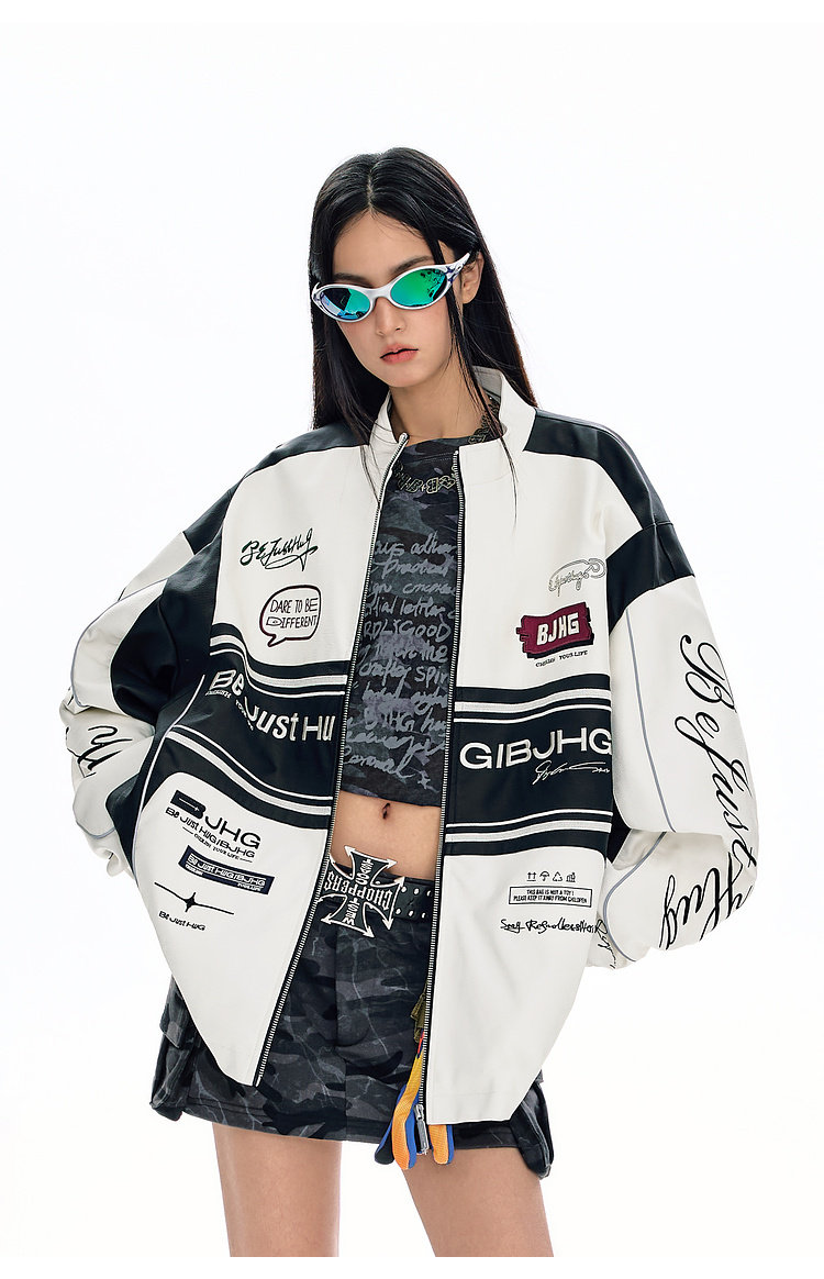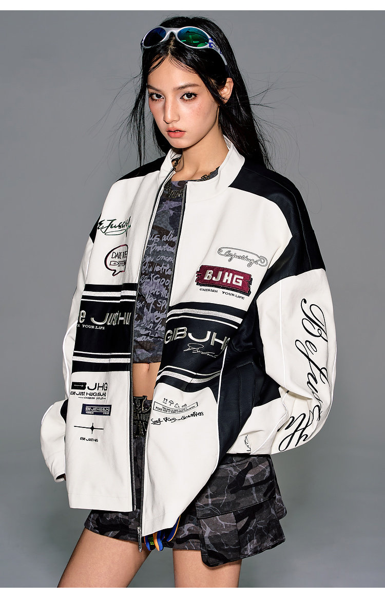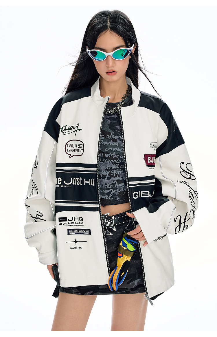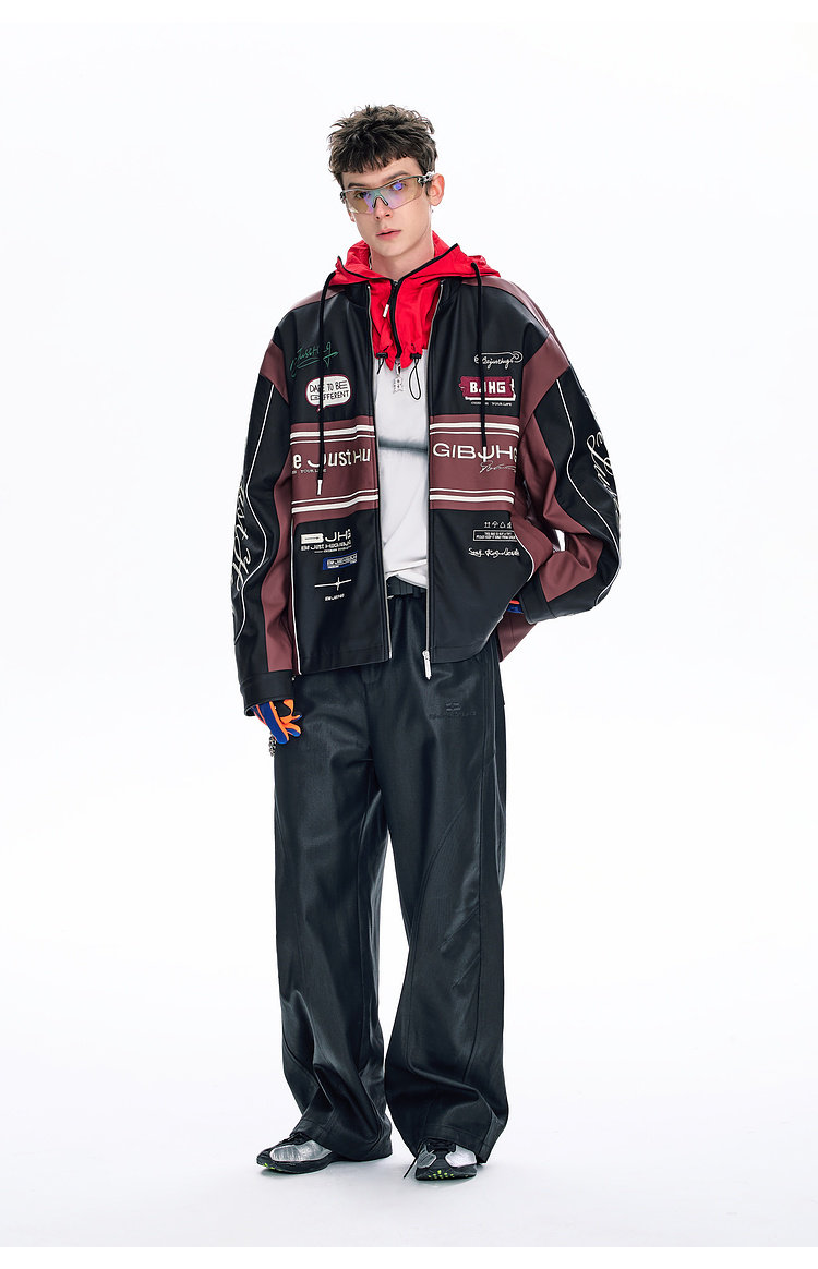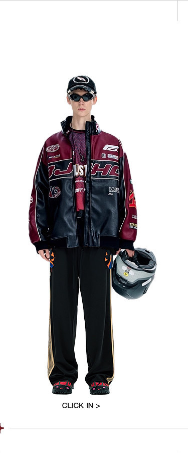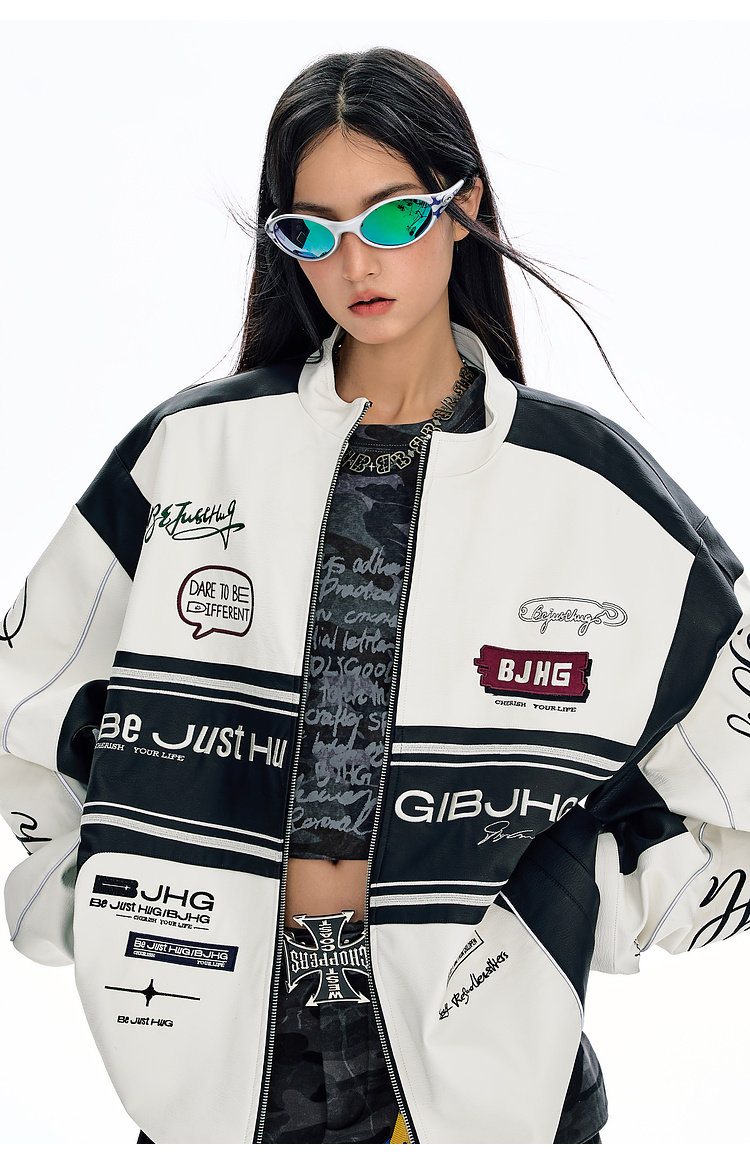Bjhg Reckless Style Song Yuqi Same Style American Motorcycle Leather Jacket Men's Spring Red Racing Jacket Women's