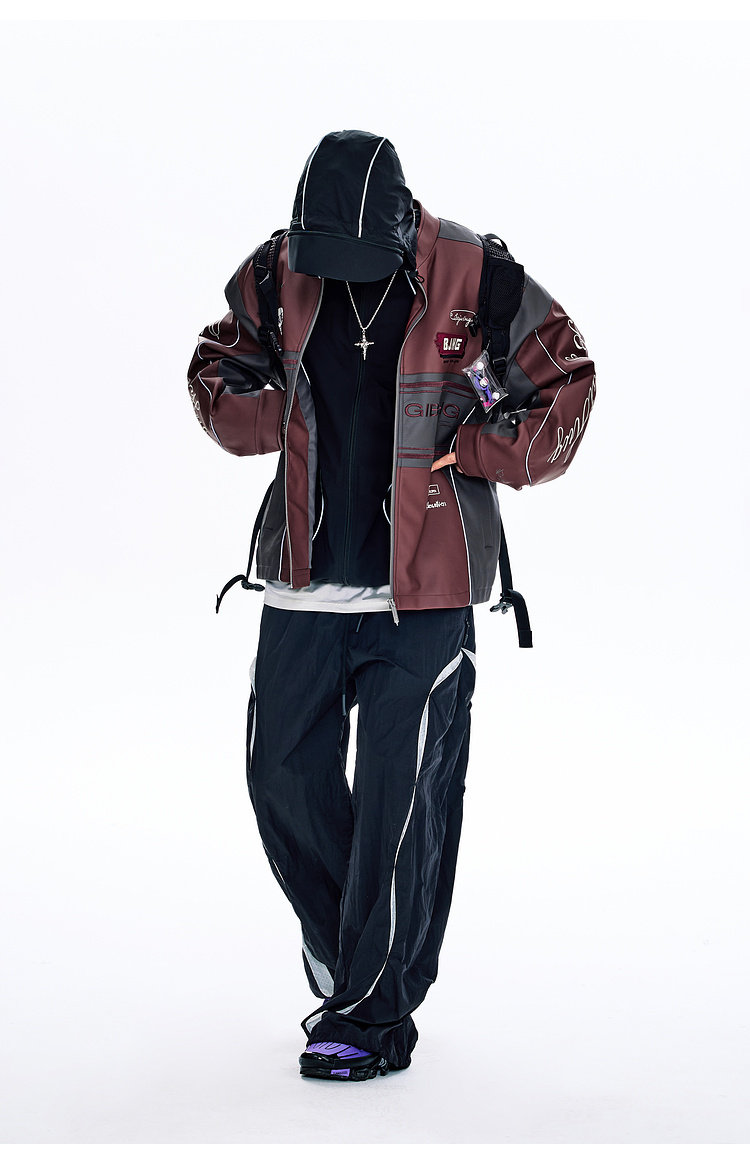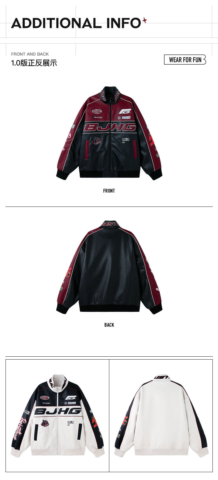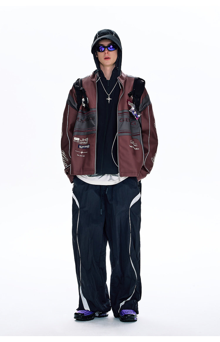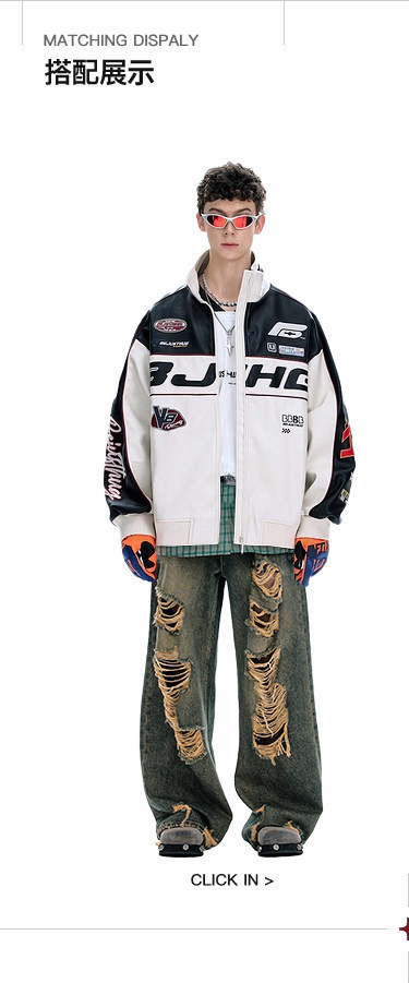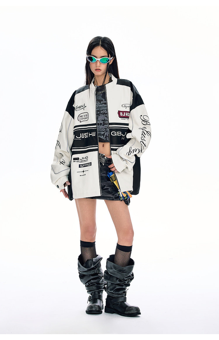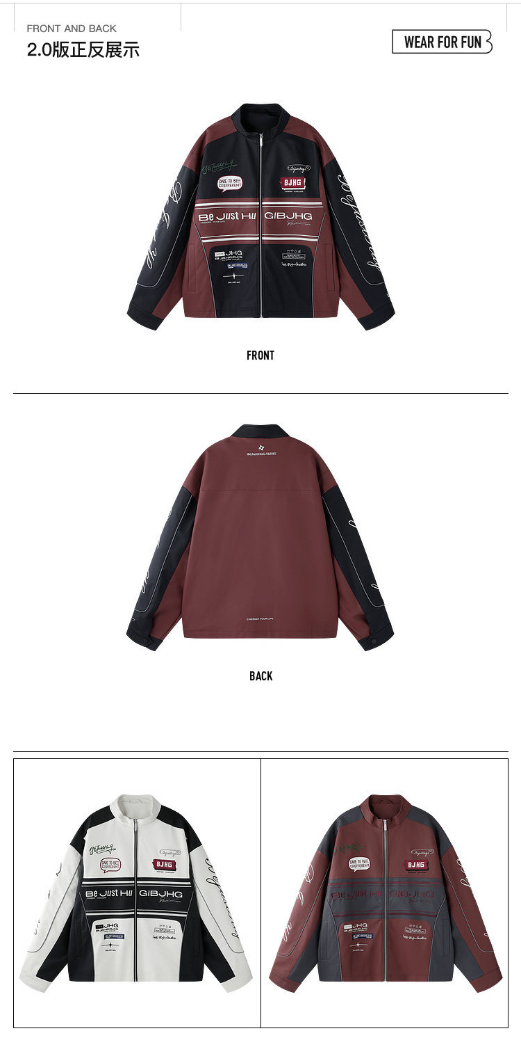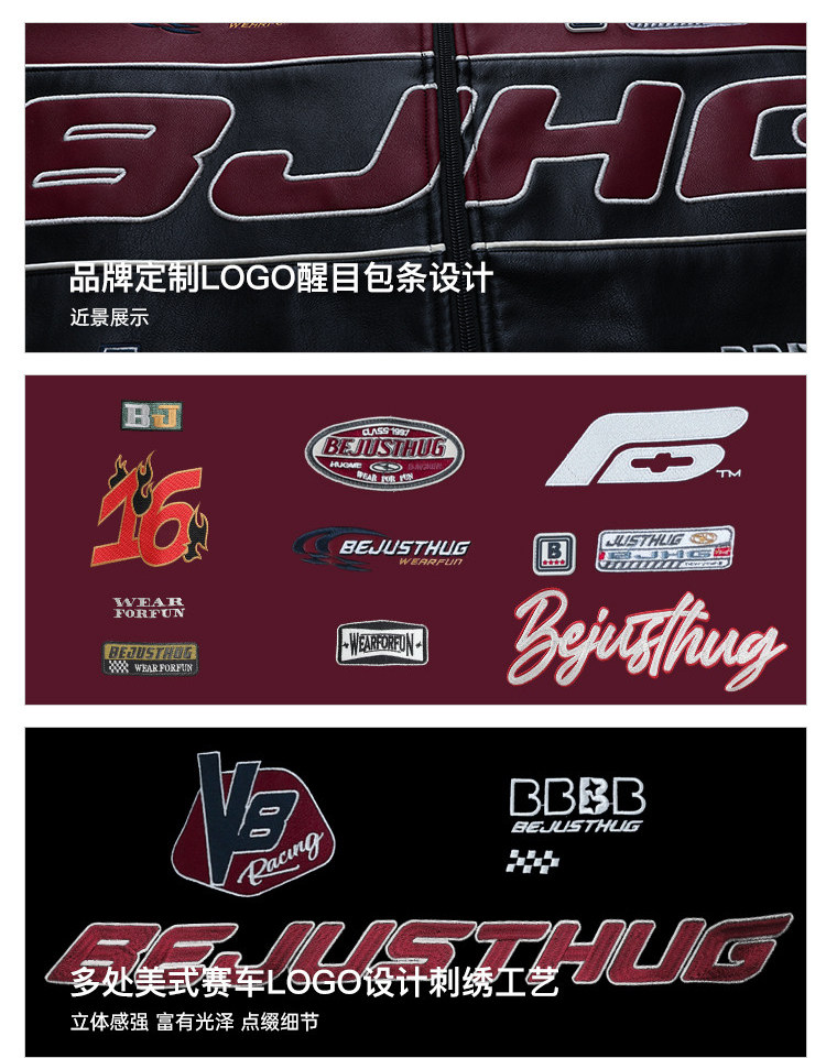 Bjhg Reckless Style Song Yuqi Same Style American Motorcycle Leather Jacket Men's Spring Red Racing Jacket Women's