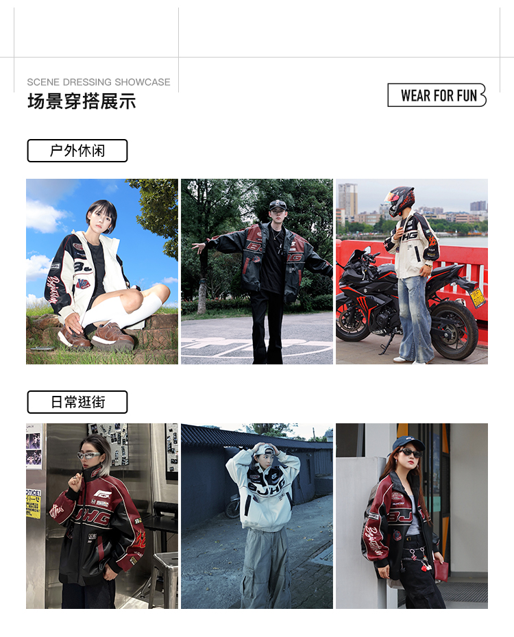 BJHG reckless American motorcycle clothing leather Outwear men's 2025 New arrival autumn litchi pattern racing jacket women