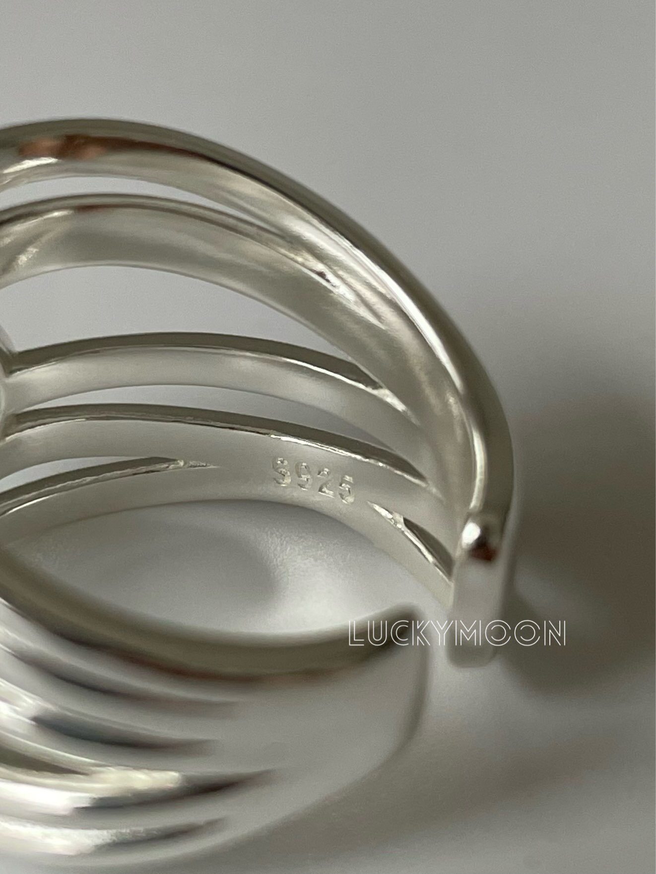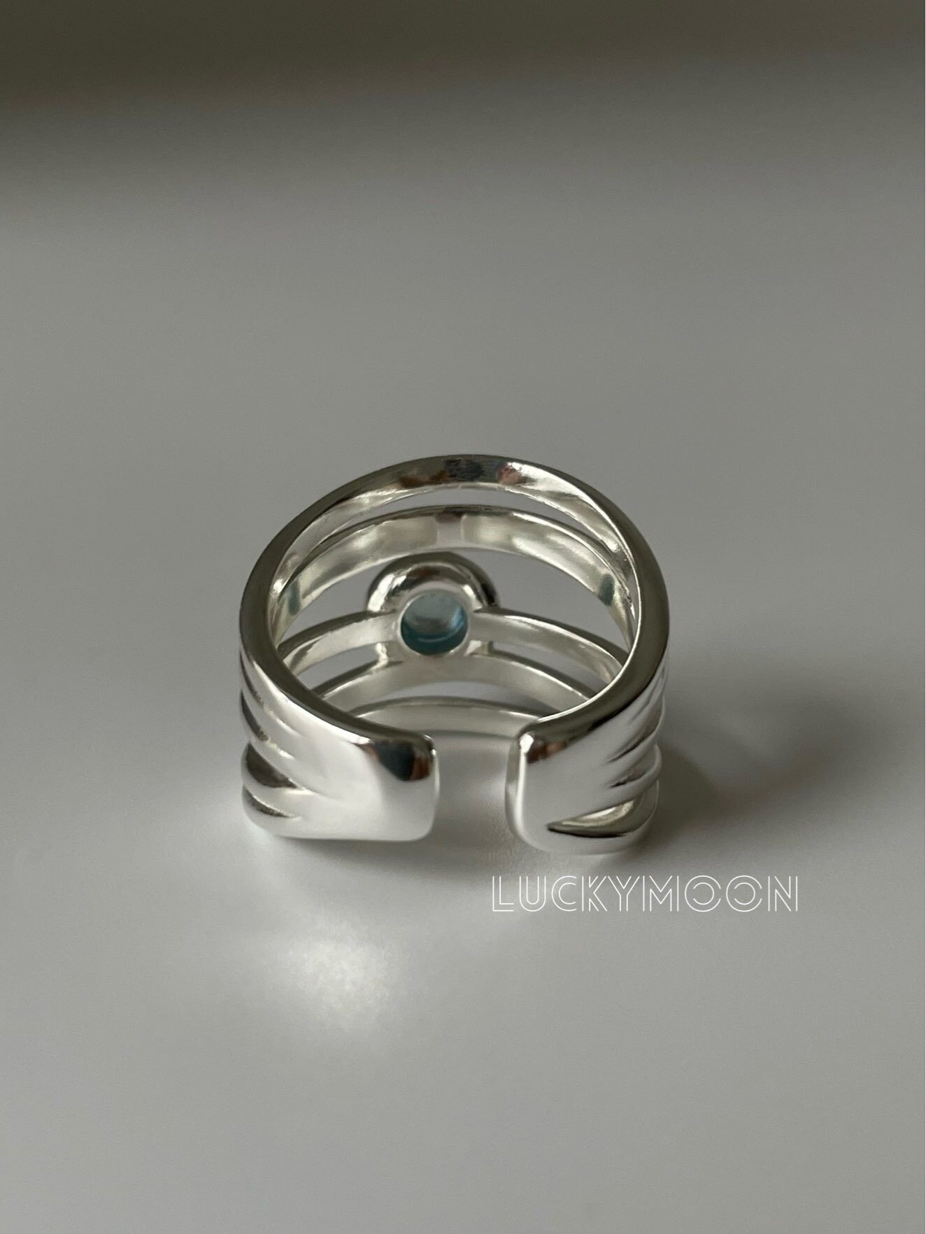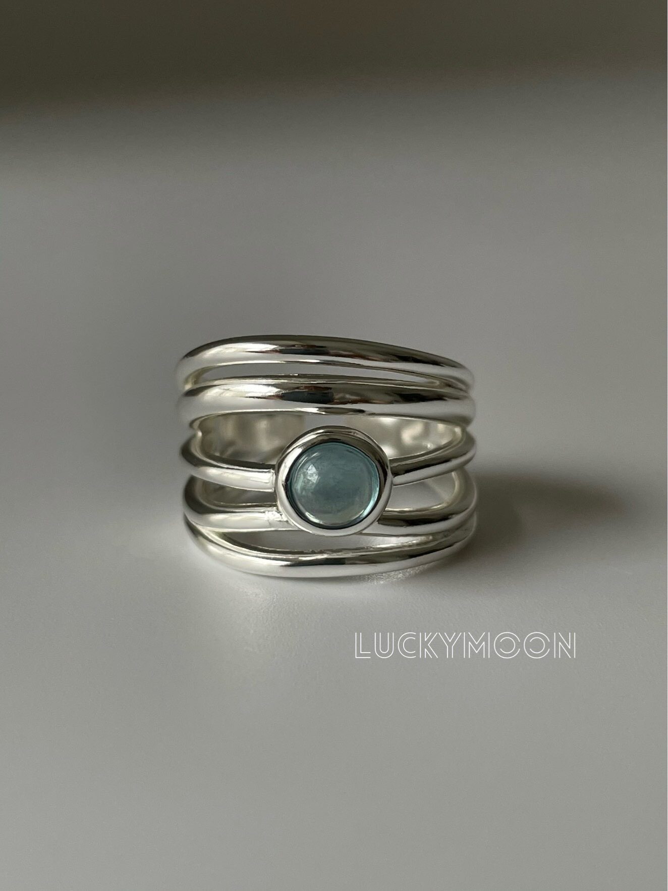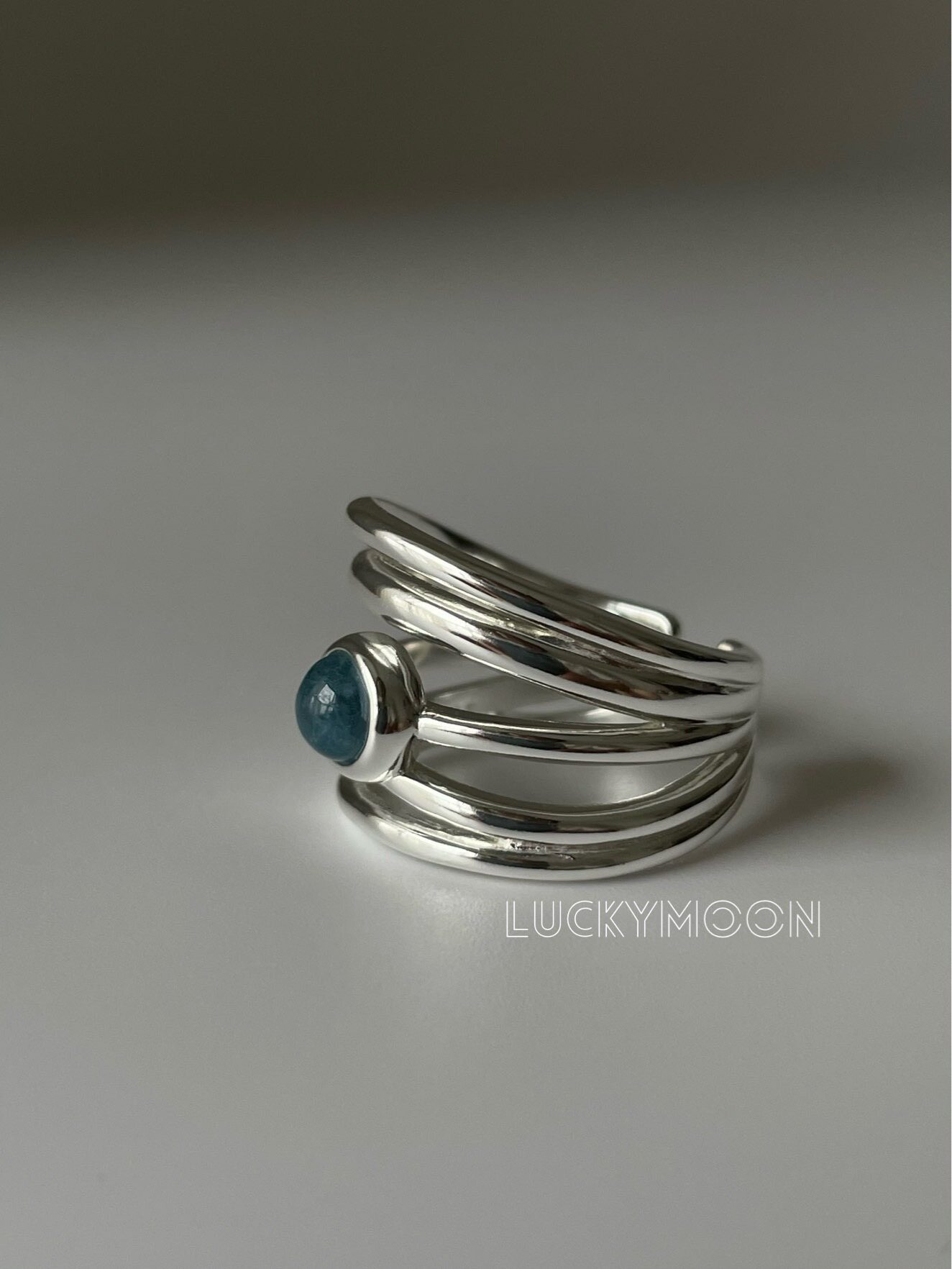 Luckymoon Multi-Layered Irregular Line Natural Aquamarine Inlaid Ring All-Over S925 Sterling Silver R309