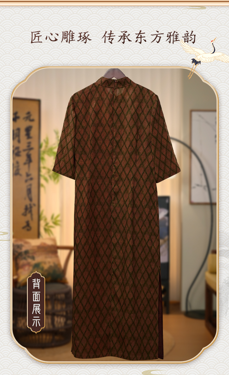 Linen Yarn ● Meige】258139 Shen Haha Mulberry Silk Yarn Fragrant Cloud Silk Cheongsam Dress Long Robe 45
