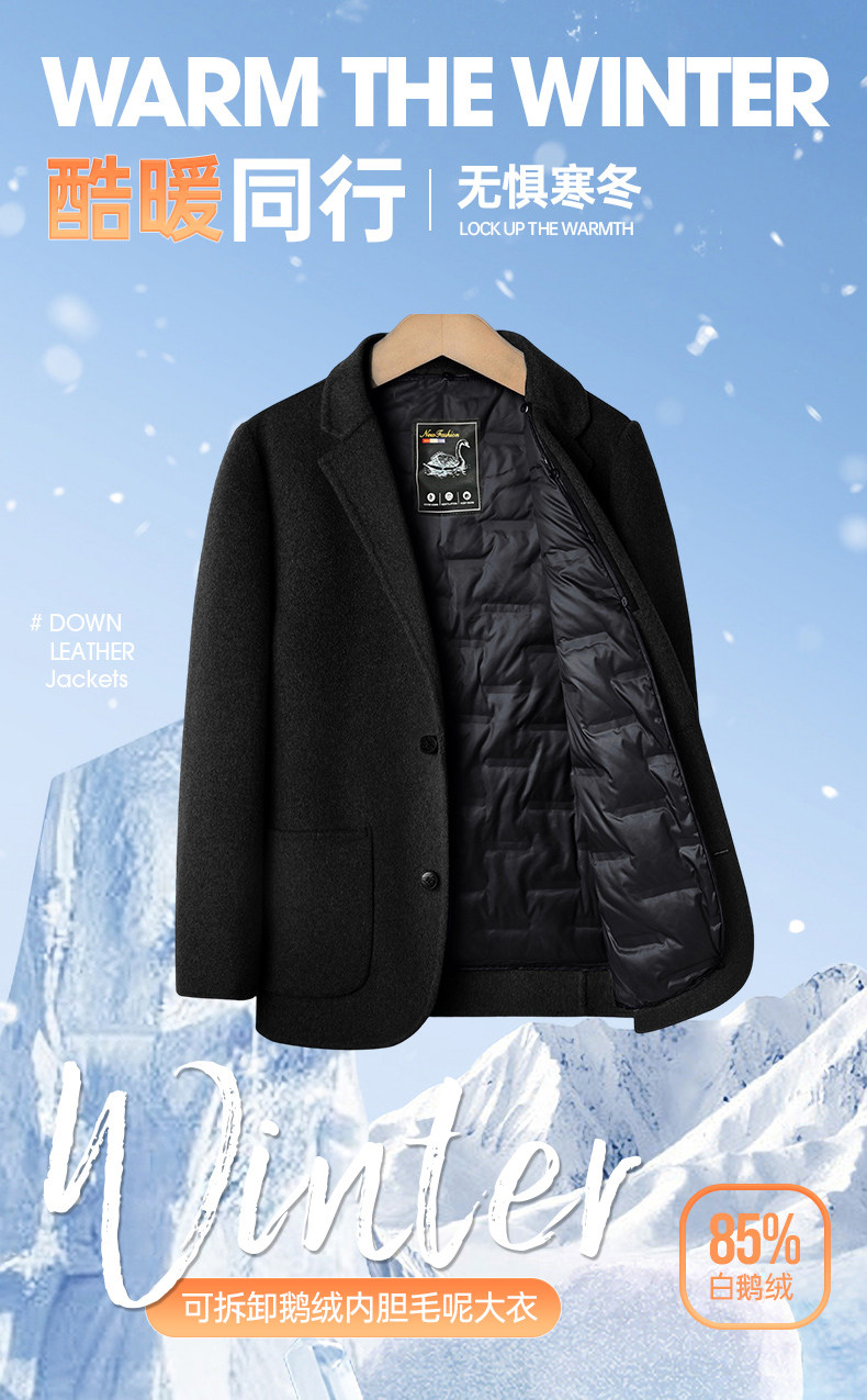 Vintage Car-Themed Three-In-One down Wool Jacket for Middle-Aged and Elderly Men, Thickened Wool Warm Coat for Autumn and Winter