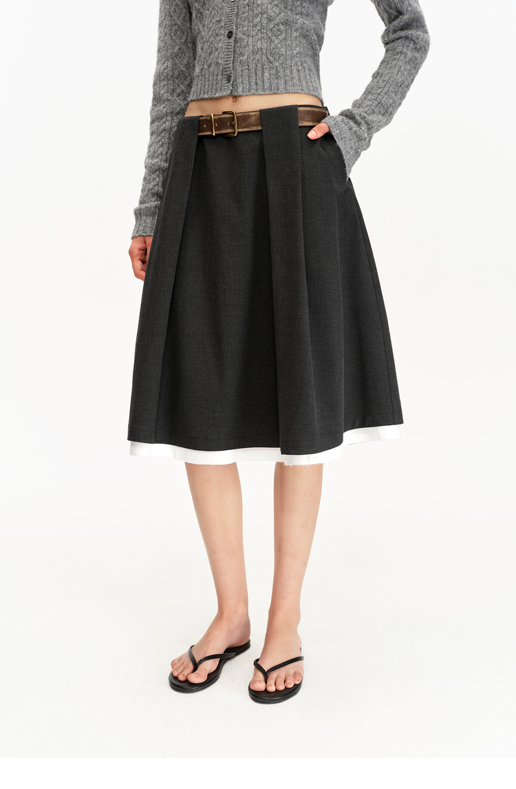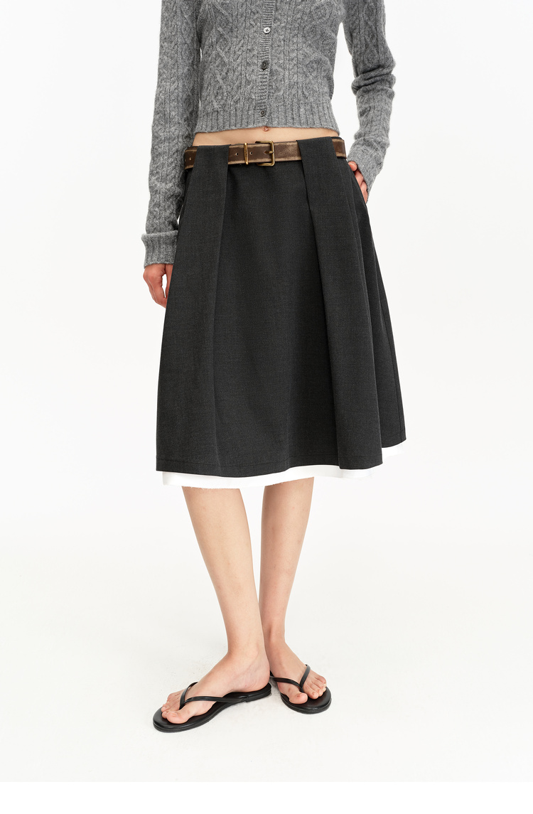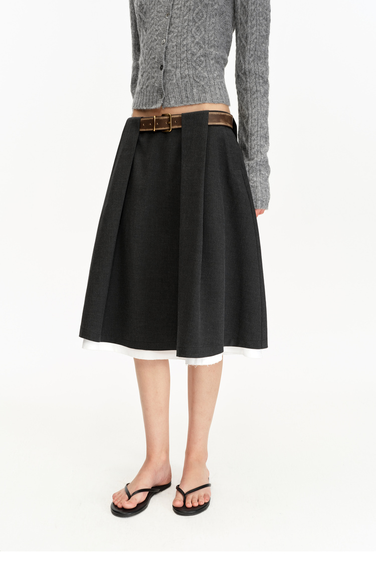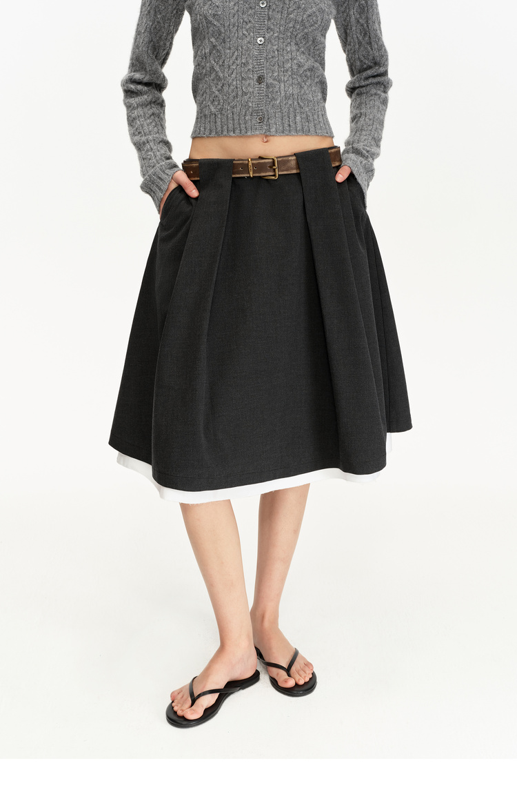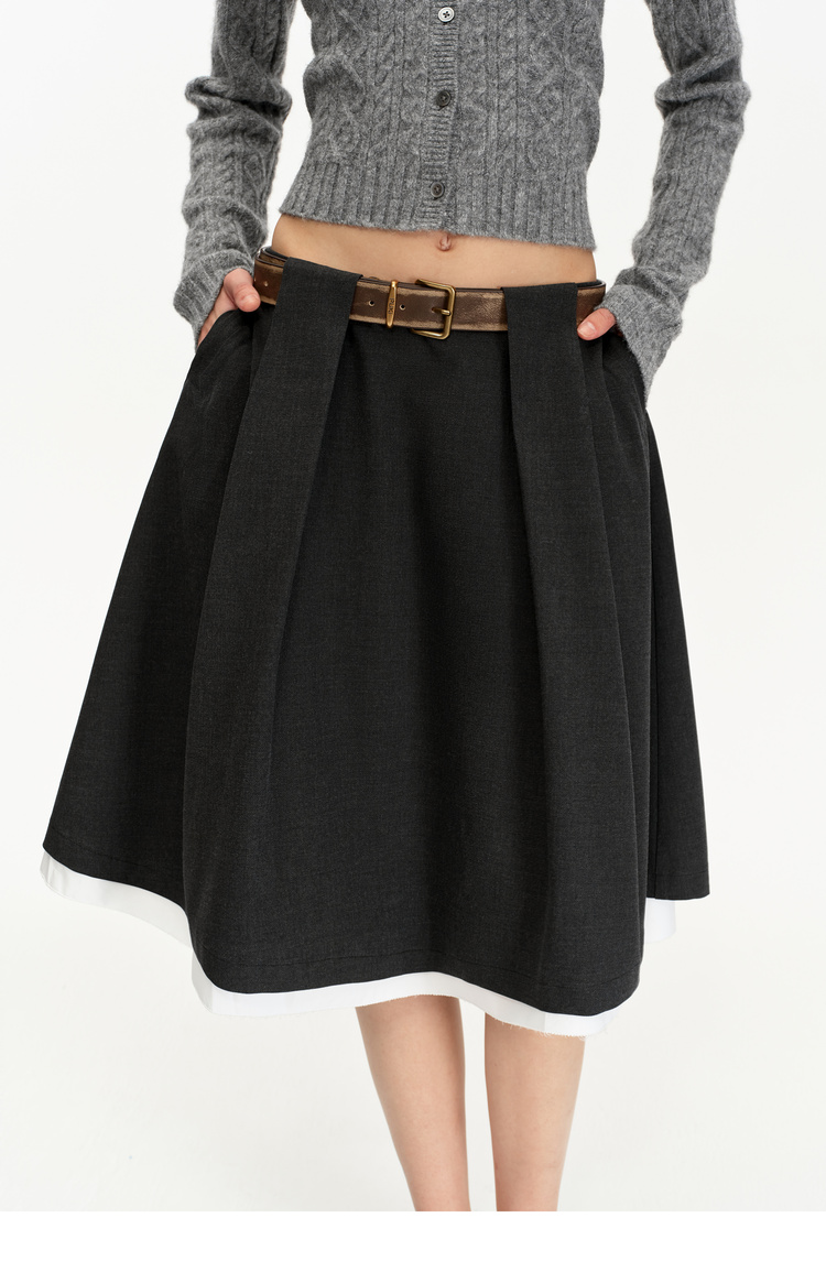 Puki Special Waistband Design, Retro High-Waisted Color-Blocked A-Line Versatile Umbrella Skirt Long Skirt