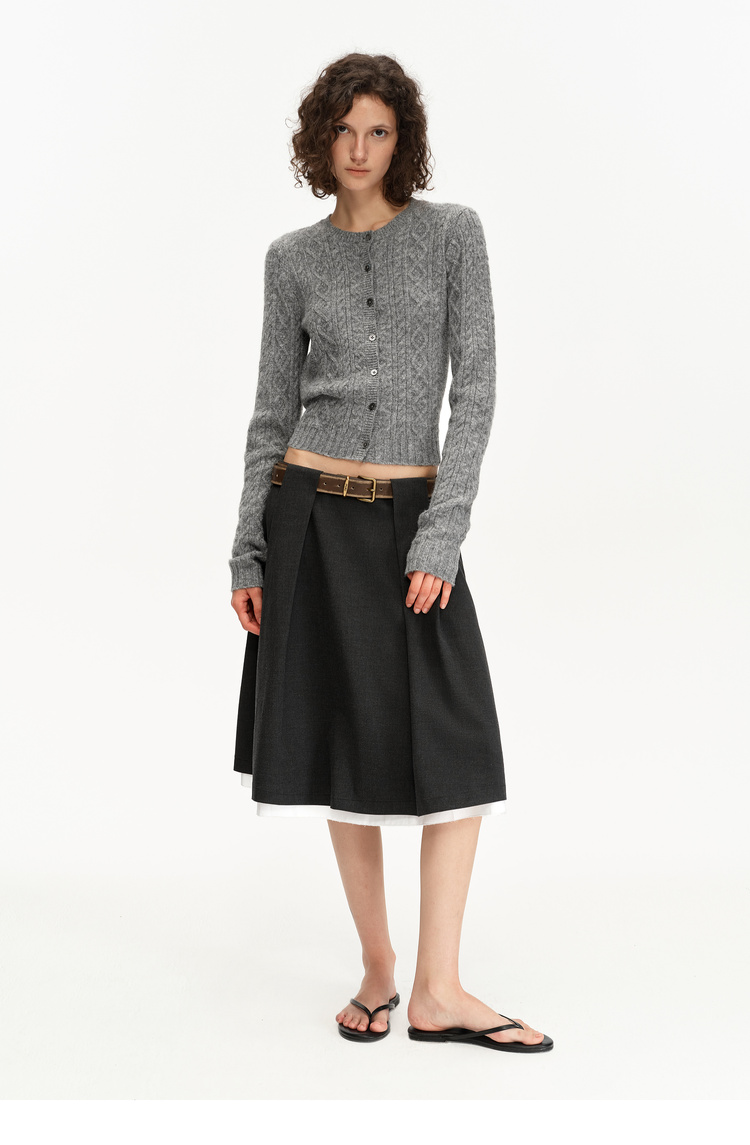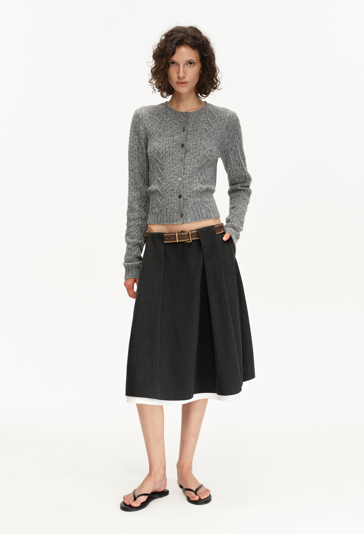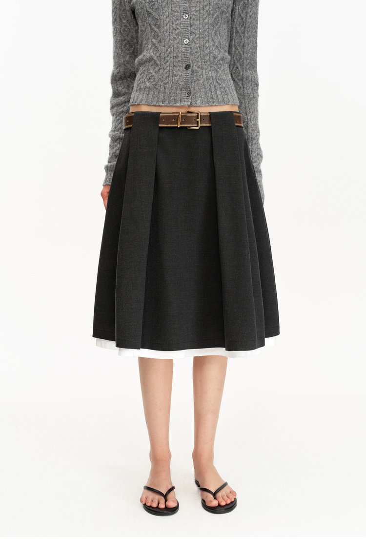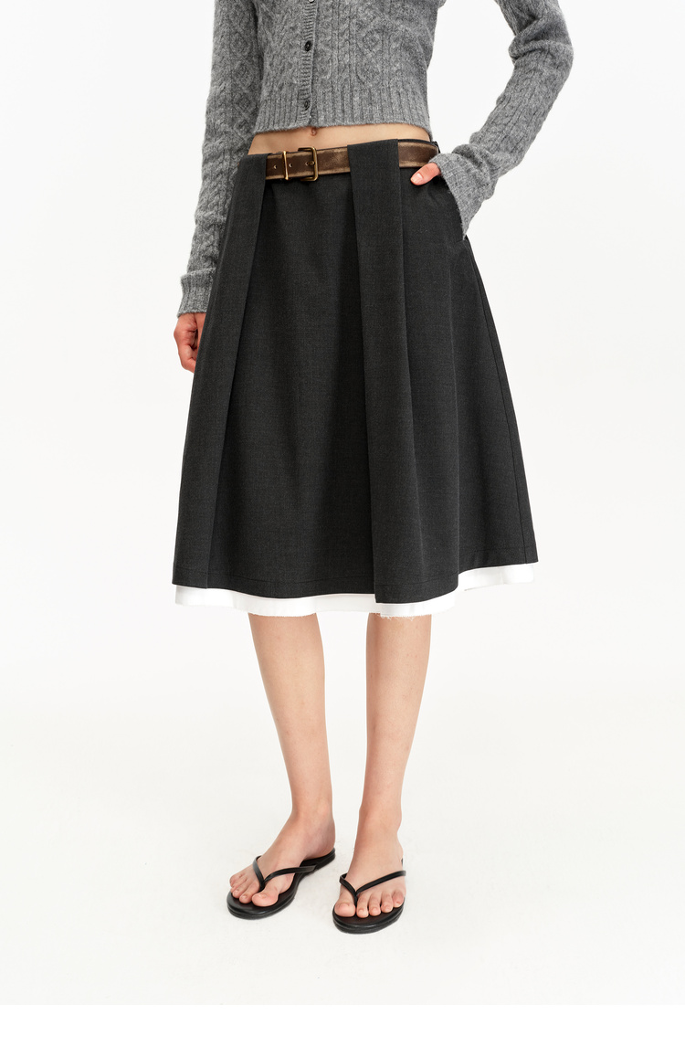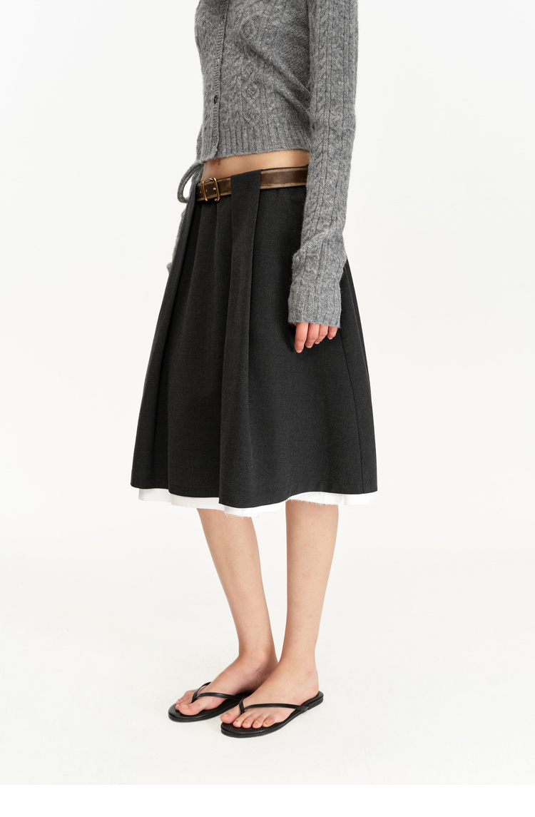 Puki Special Waistband Design, Retro High-Waisted Color-Blocked A-Line Versatile Umbrella Skirt Long Skirt