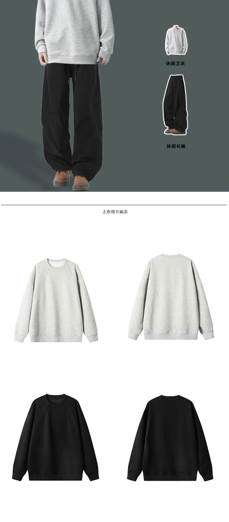 2025 autumn Handsome Loose Casual Fashion Suit men's Matching a set of round neck Sweatshirt Cargo Pants Two-piece set