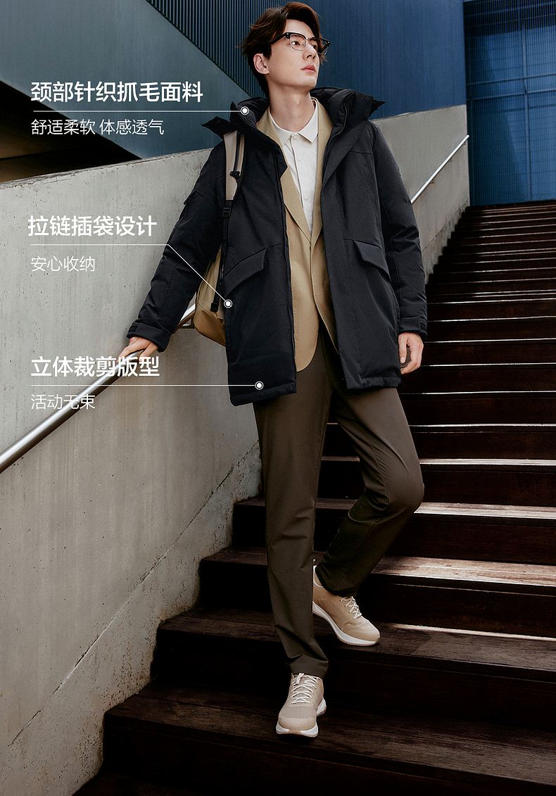 Kolon Sport Kolon Goose down Jacket Waterproof, Windproof and Breathable Men's and Women's Medium-Weight Fur Collar down Jacket