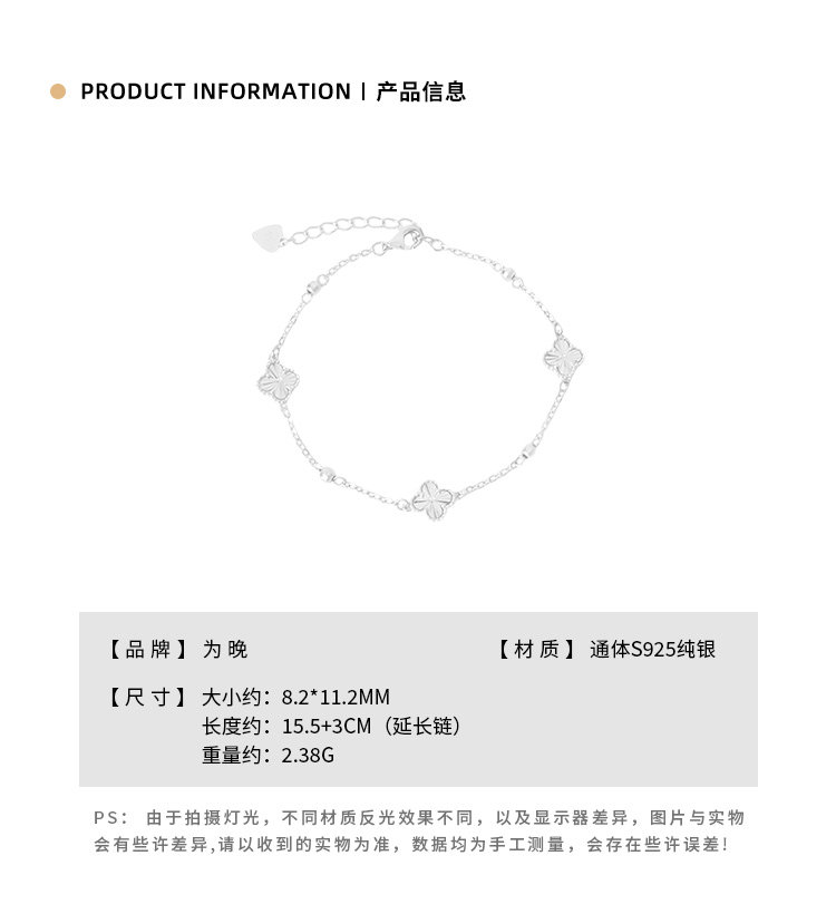 S925 Sterling Silver Four-Leaf Clover Bracelet for Women, High Aesthetic Value, Makes Skin Look Fairer, Light Luxury, Exquisite and Stunning Silver Jewelry Bracelet