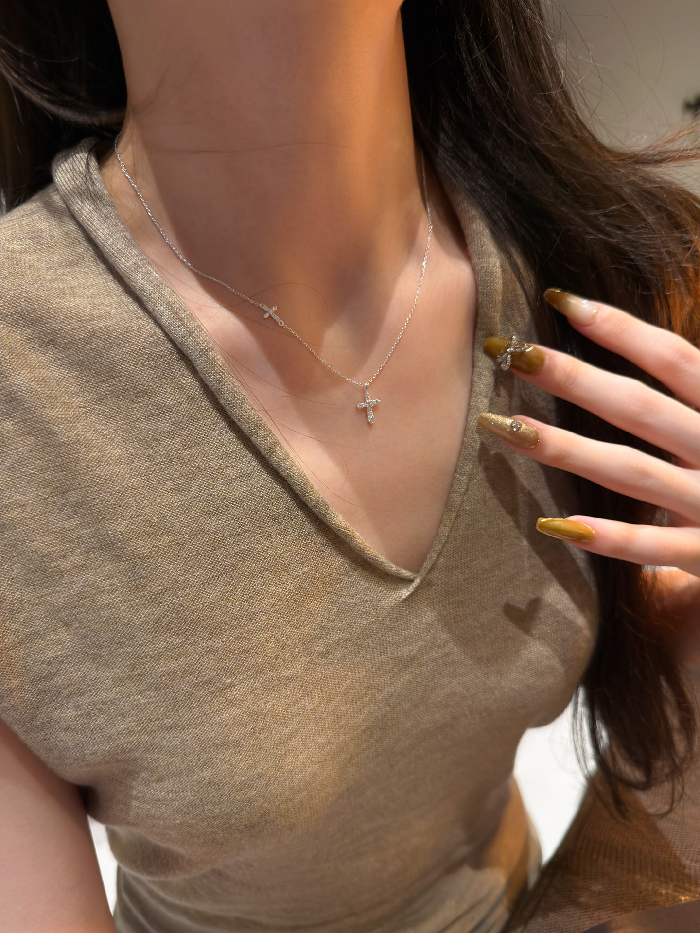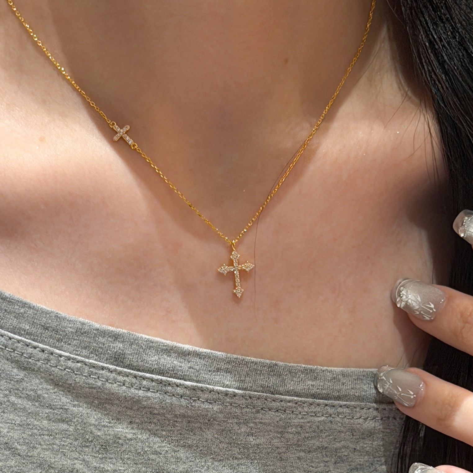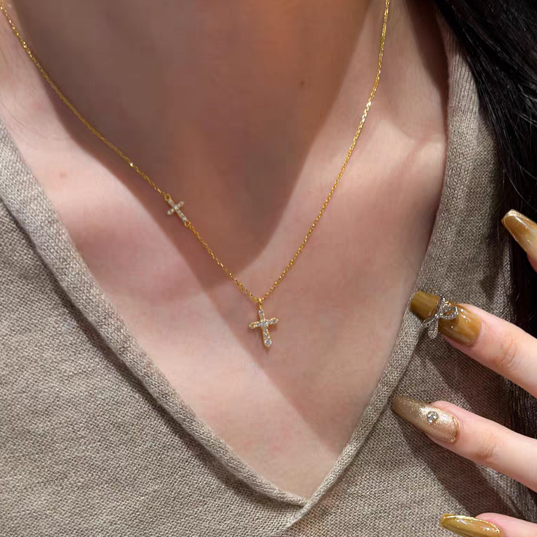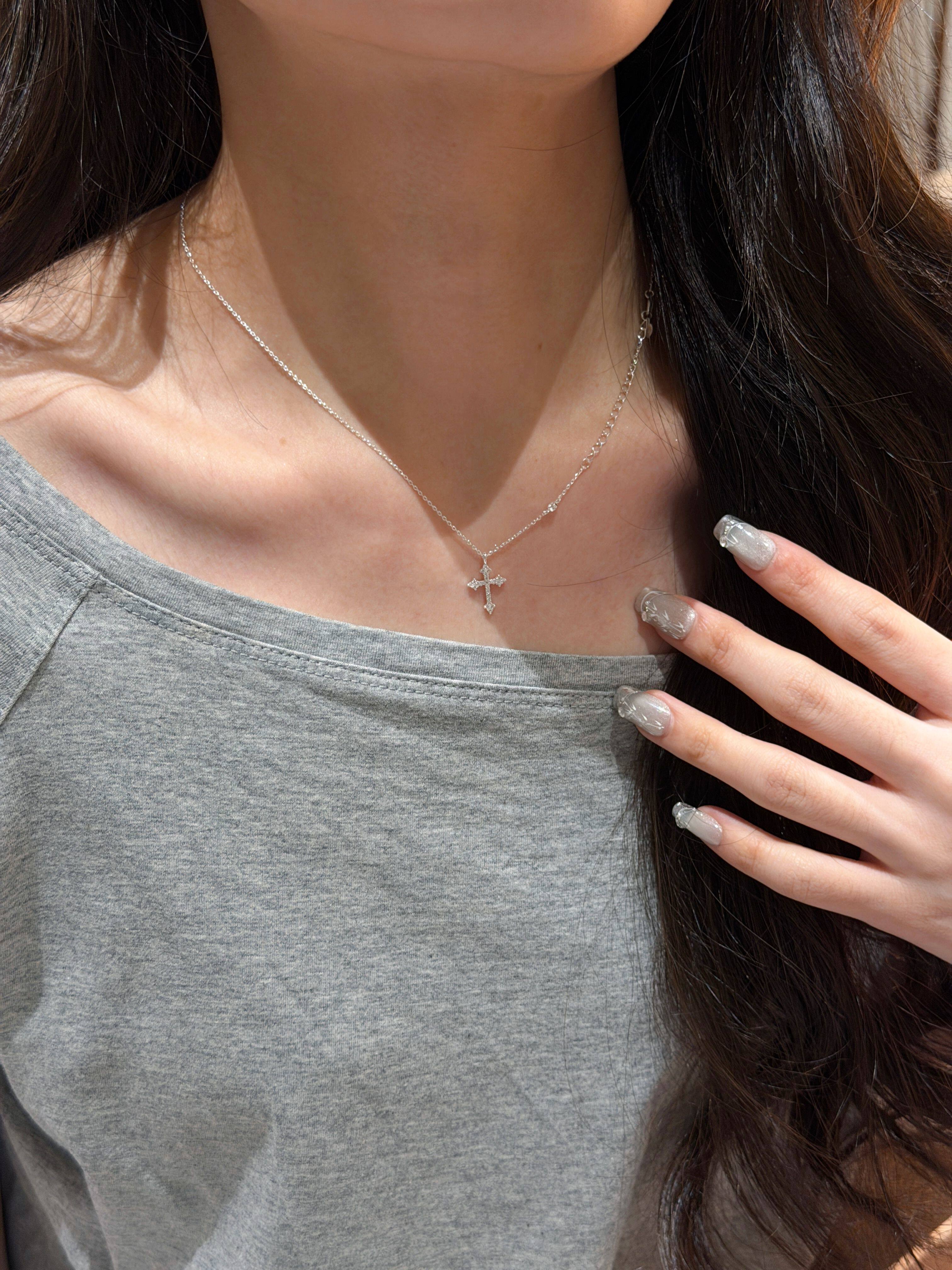 Shilijian [925 Silver | Exquisite Edition] Simple and Elegant S925 Silver Cross Necklace Versatile Clavicle Chain