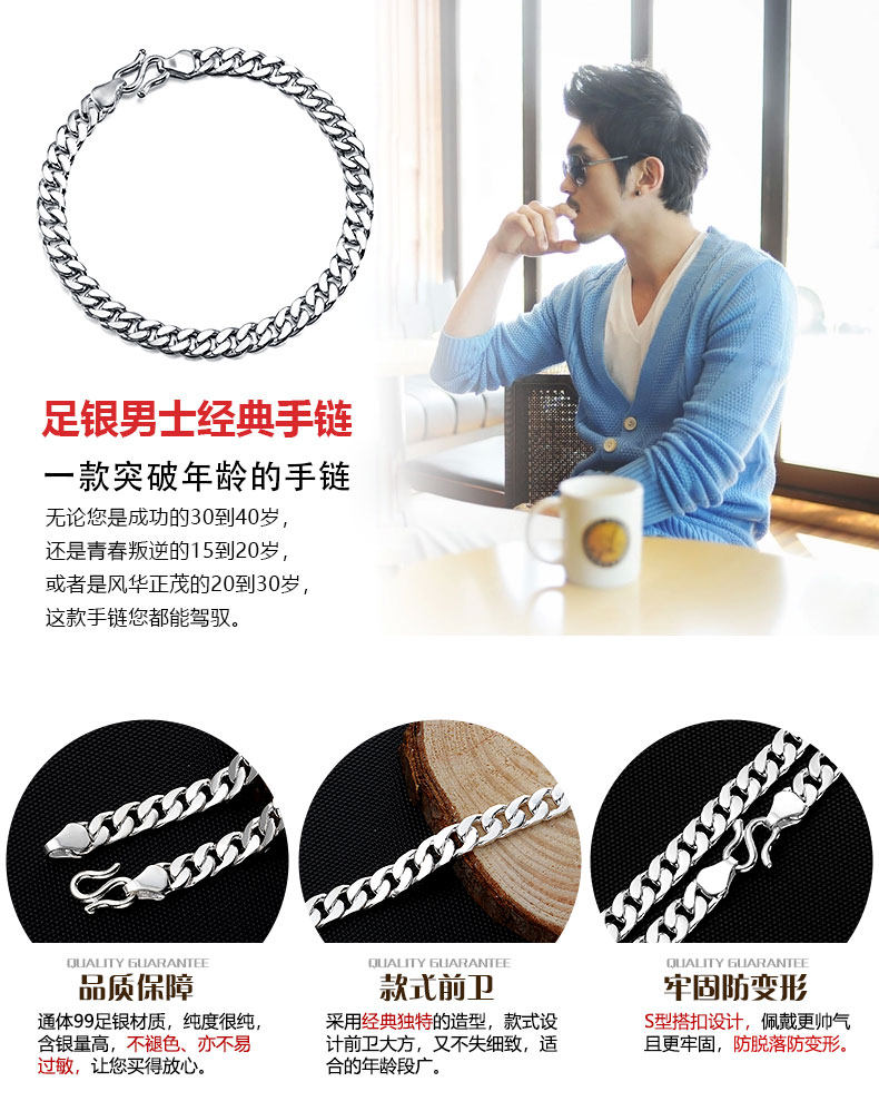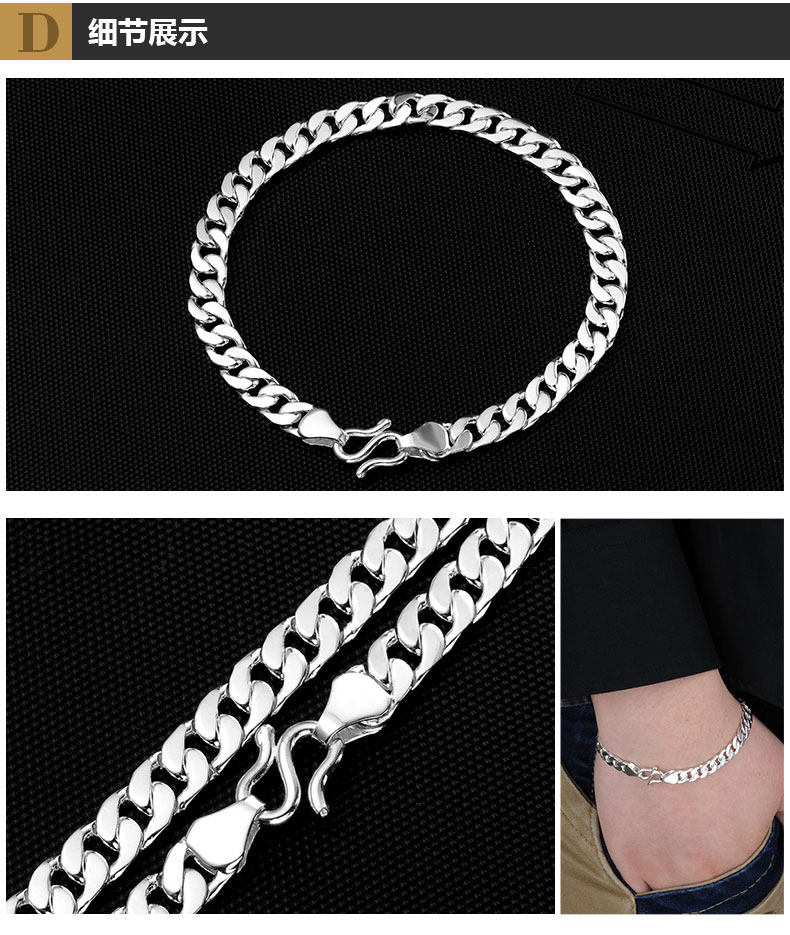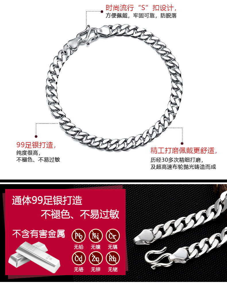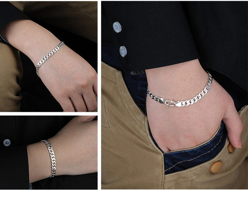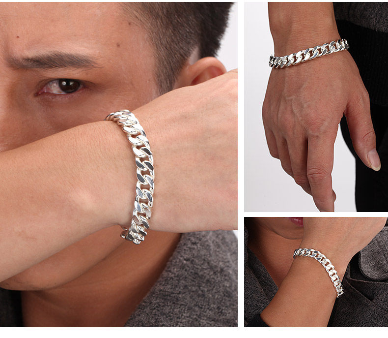 999 Pure Silver Bracelet Cuban Double Chain Hip-Hop Style for Men and Women Handmade Horsewhip Silver Chain Thick and Thin Styles Gift for Boyfriend