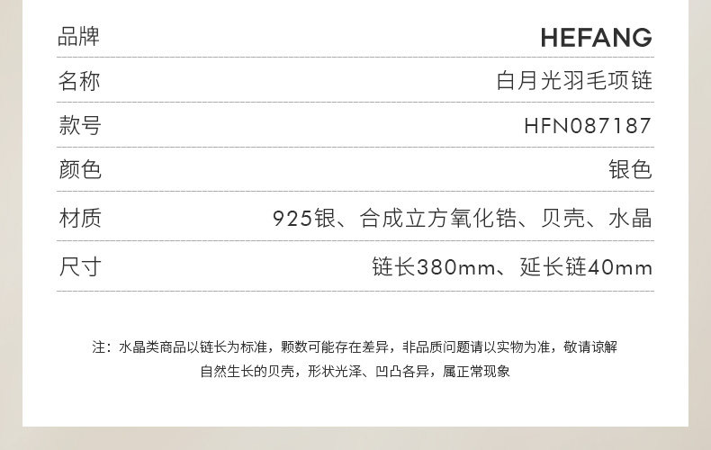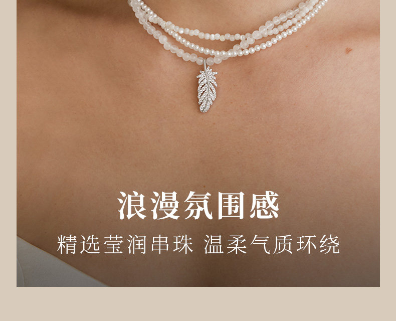 [New Product] Hefang Jewelry White Moonlight Feather Necklace Light Luxury Elegant Accessory Christmas Gift