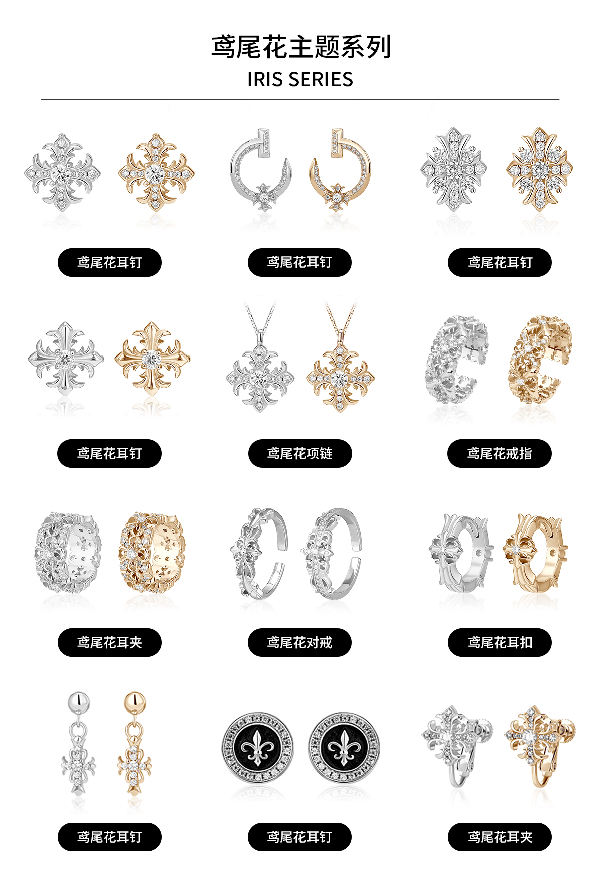 Ygpm Original Iris Flower Earrings for Women, Sterling Silver Moissanite, Niche Design, Light Luxury, Elegant and Relaxed Earrings