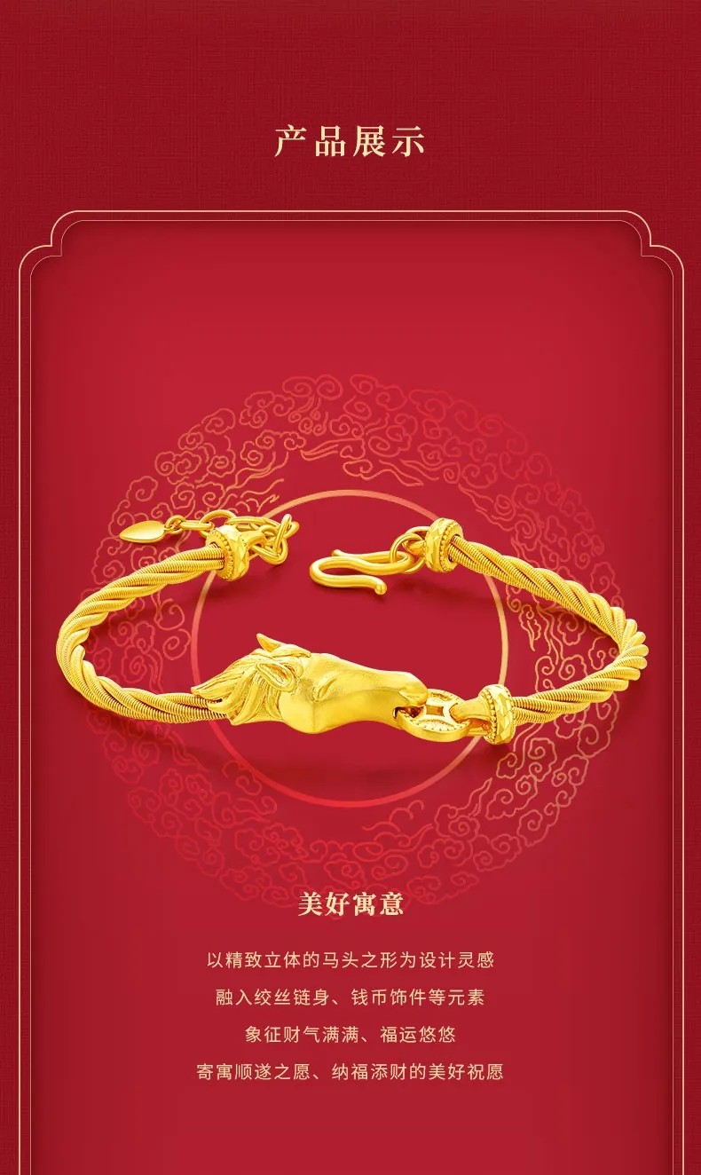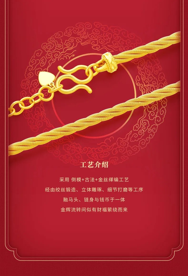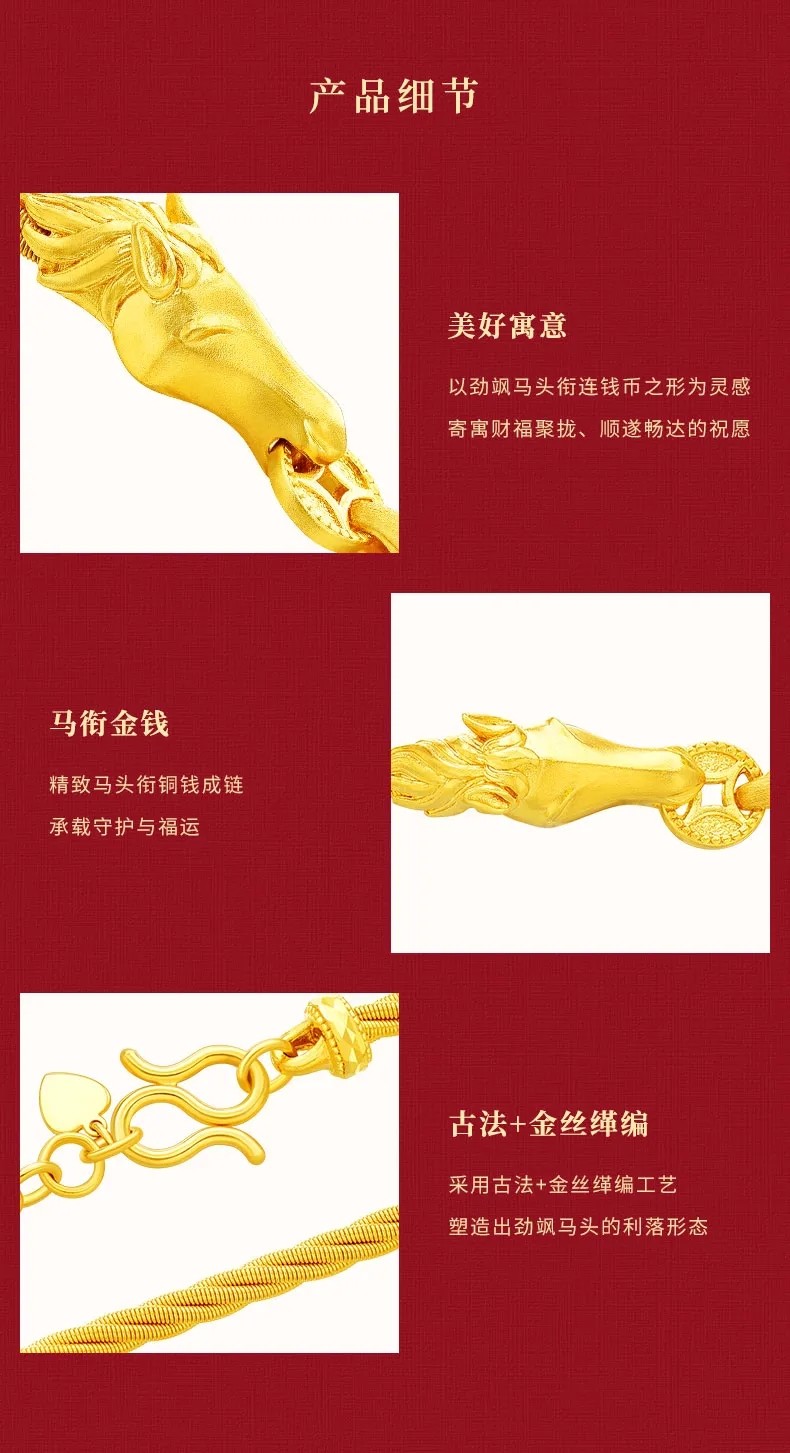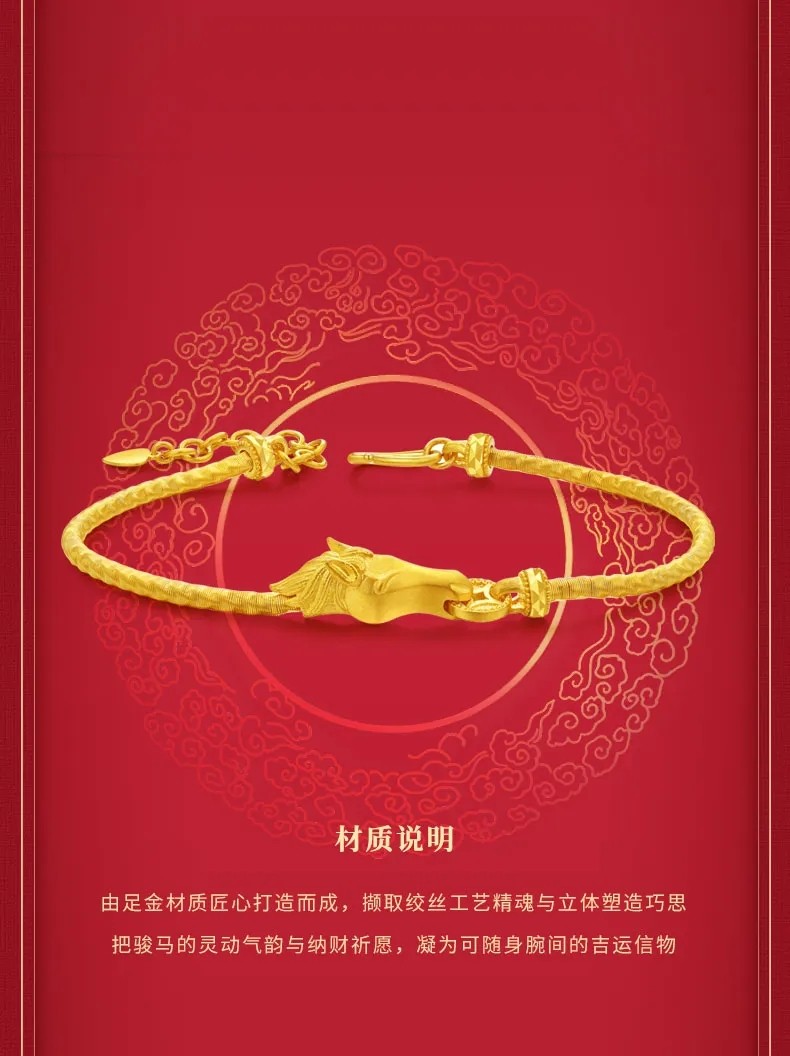 [Same Style as Ding Yuxi] Lao Fengxiang Full-Power Horse Money Magic Art Chain Gold Pure Gold Bracelet