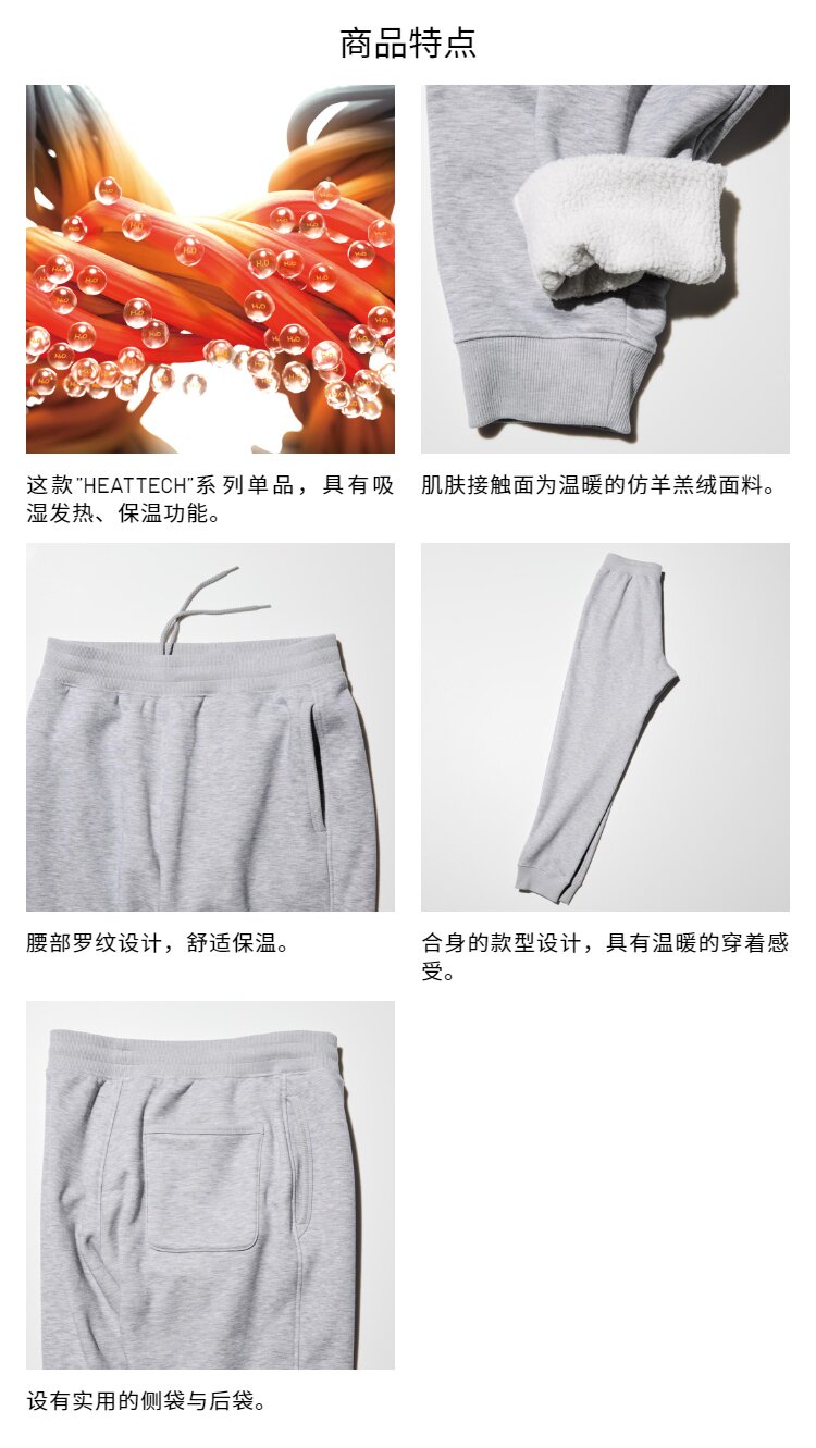 Extended-Length Uniqlo Men's Heattech Faux Lamb Wool Sports Pants Casual 479788