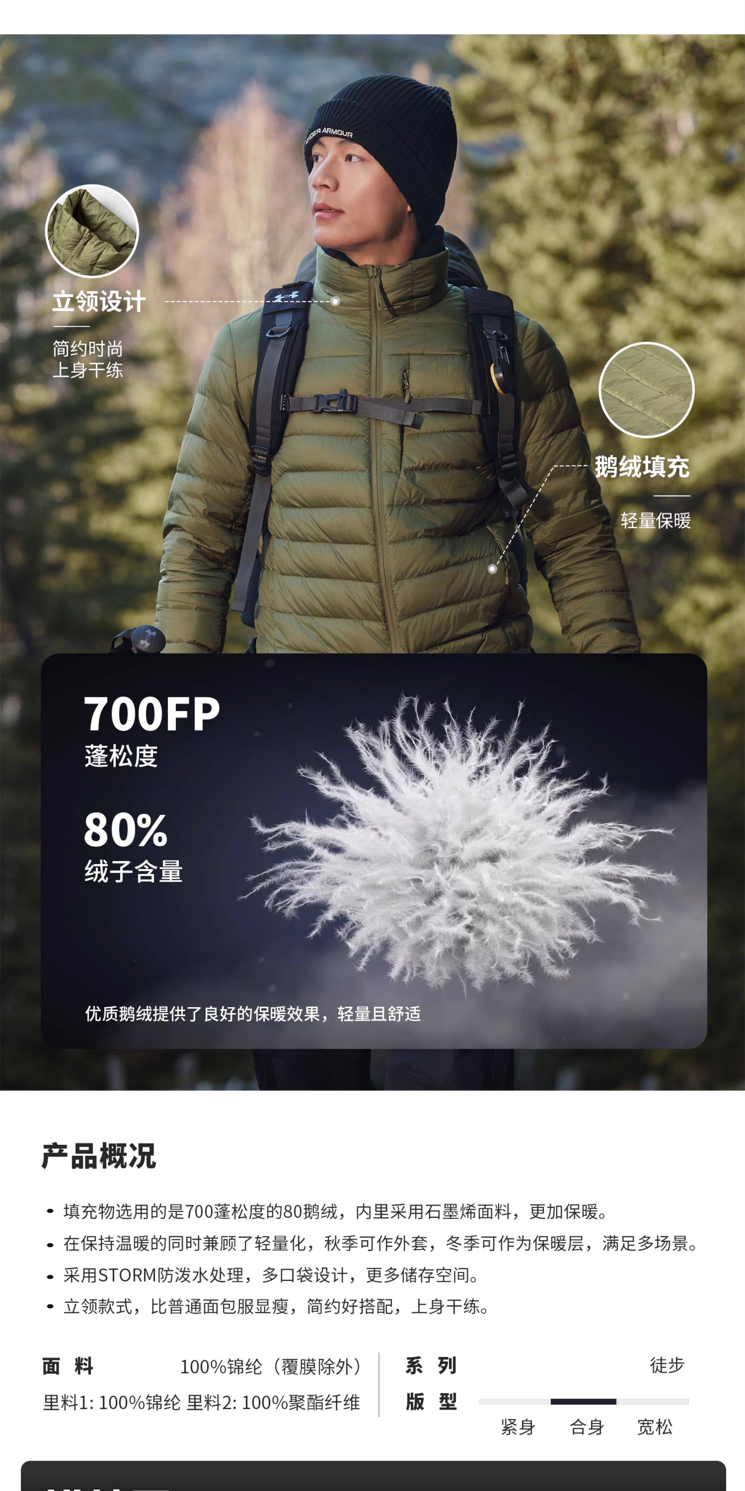 Under Armour Official Men's Goose down Jacket for Winter, Water-Repellent, Windproof, Graphene Lining, Warm, Stand-Up Collar, Lightweight down Jacket