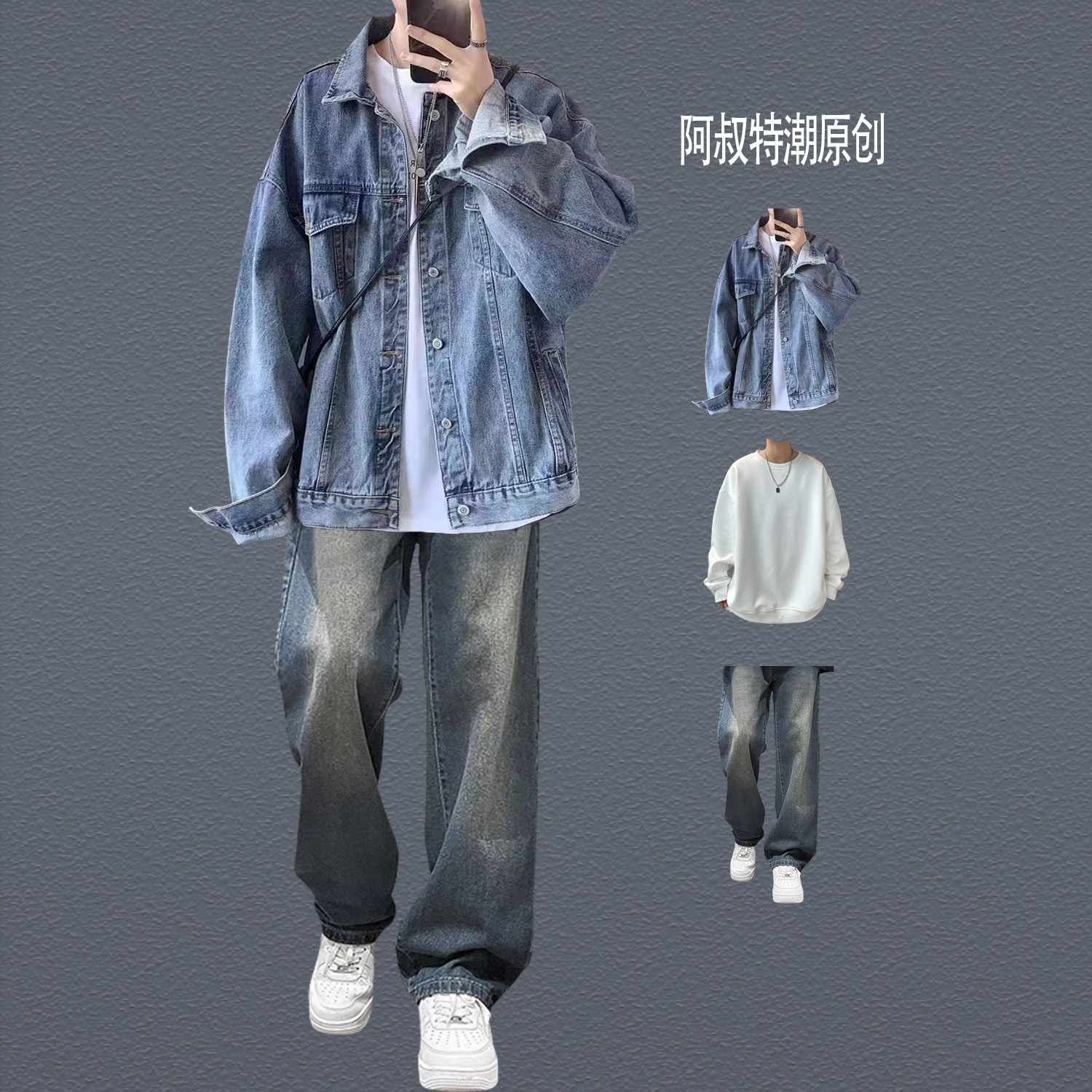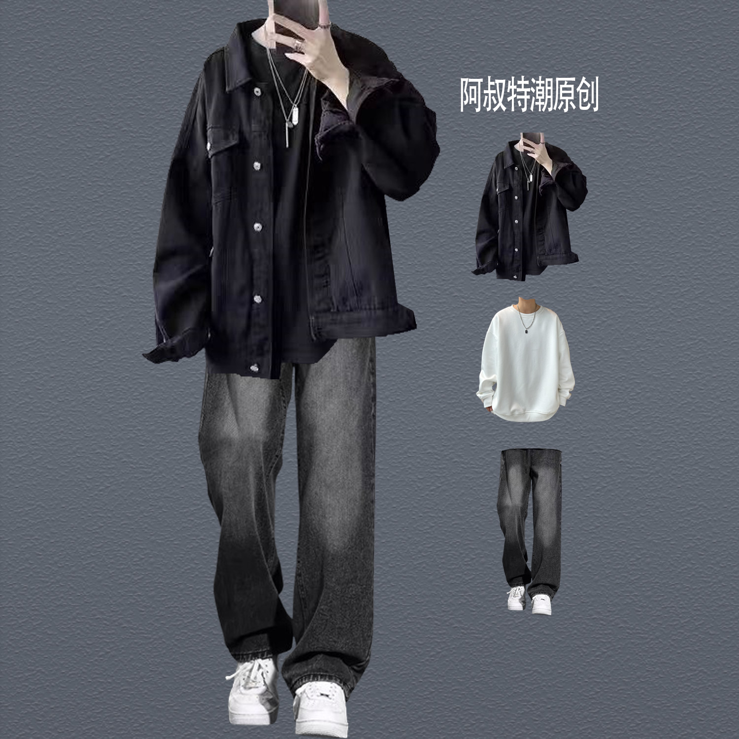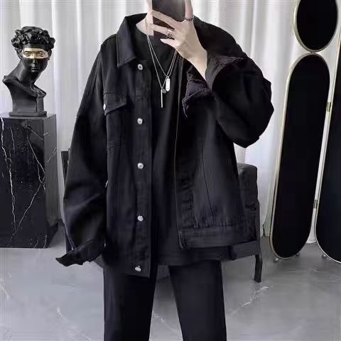 American retro Black Cowboy jacket Men's Spring and Autumn Suit Trendy High Street Handsome Loose Casual parka Outwear