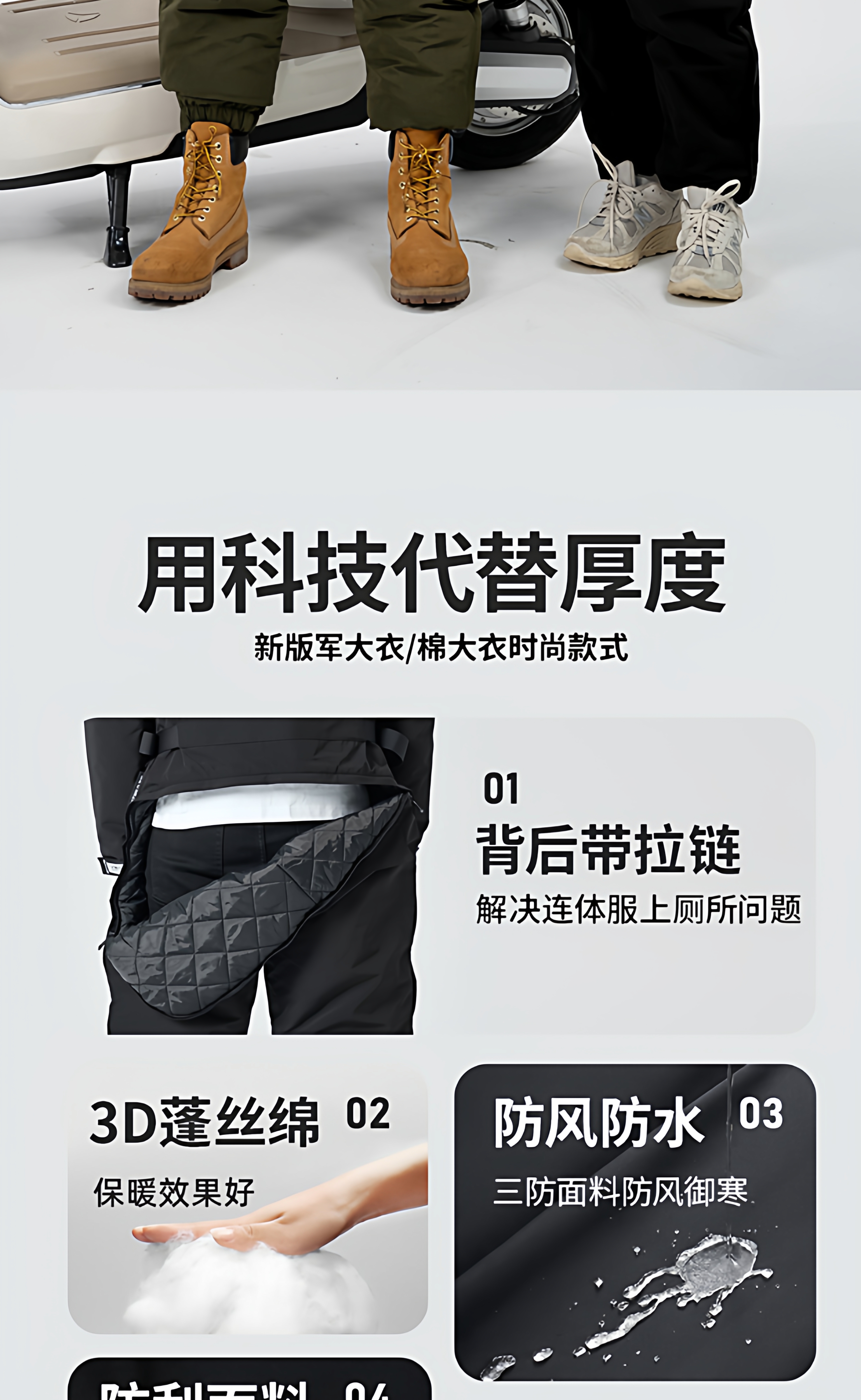 Military-Style Coat for Men and Women, Thickened for Winter, Suitable for Riding Electric Bikes in the Northeast Where Temperatures Can Reach Minus 40 Degrees, Cold-Proof Cotton Jacket
