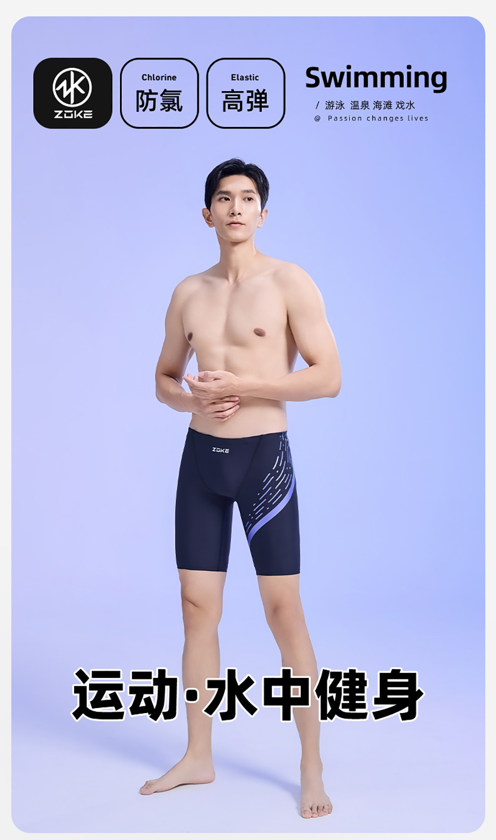 Zoke Men's Swim Trunks, Five-Point Length, Professional Swimming Training, Quick-Drying, Large Size, Anti-Embarrassment, Student Competition Swimwear