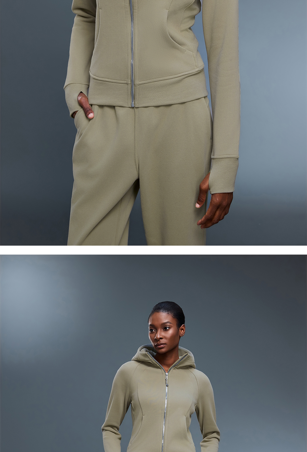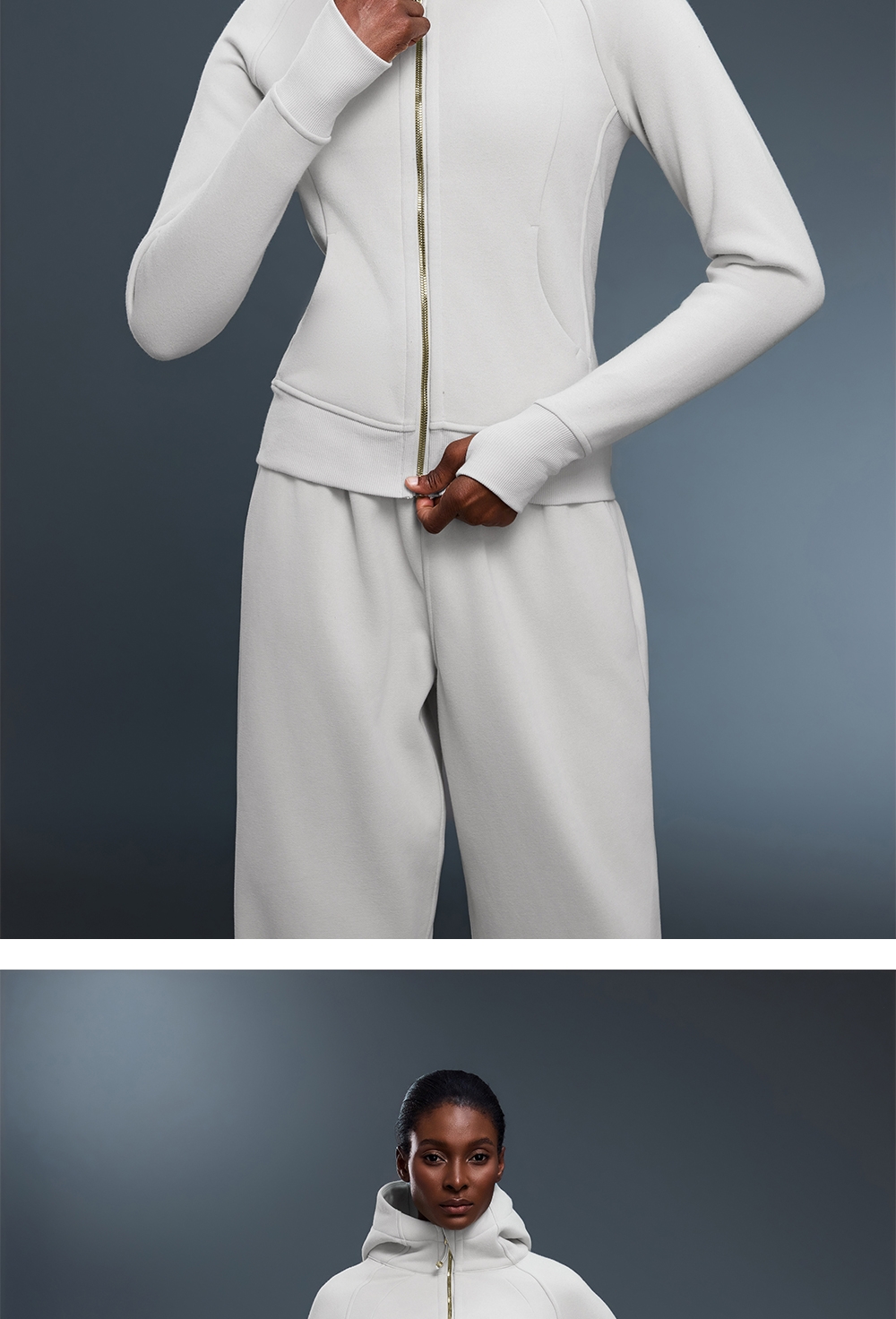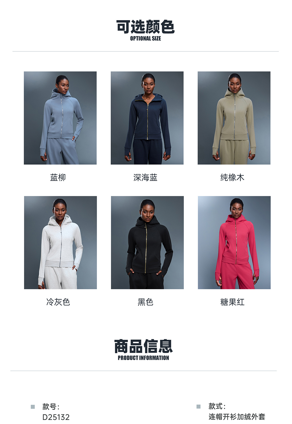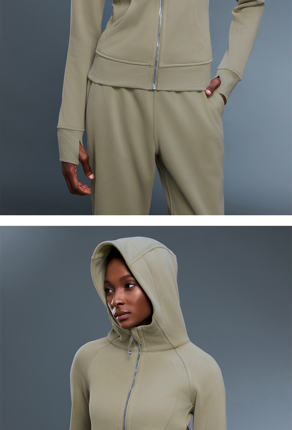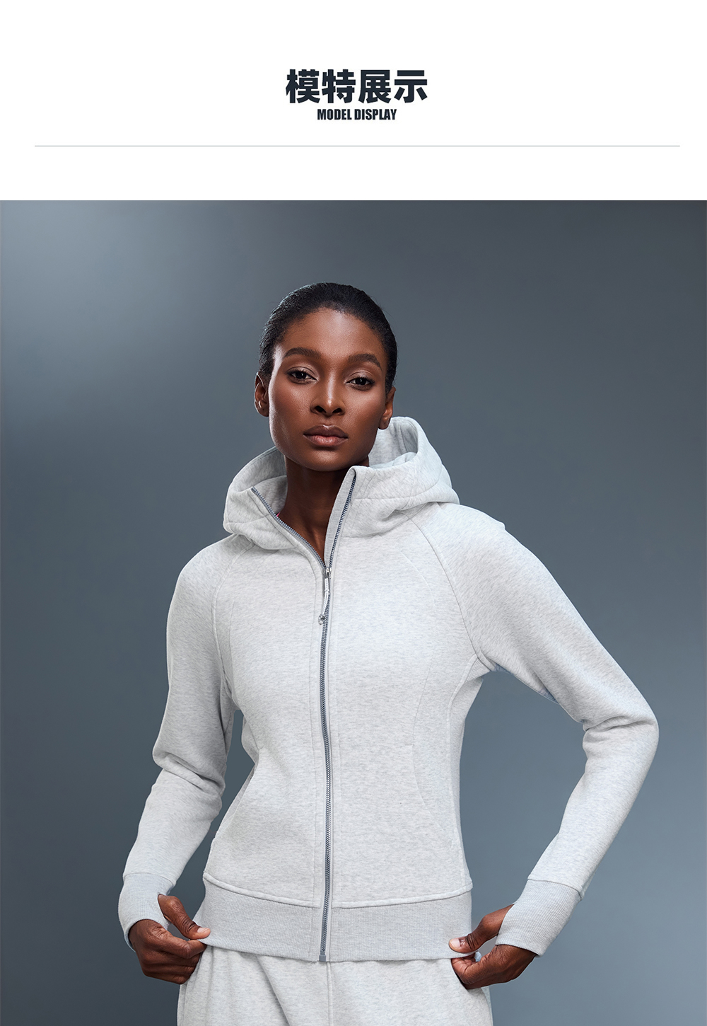 American Sports Jacket for Women in Autumn and Winter, Fleece-Lined, Thickened, Slim-Fit, Hooded, Casual Running, Yoga, Fitness Cardigan Sweatshirt