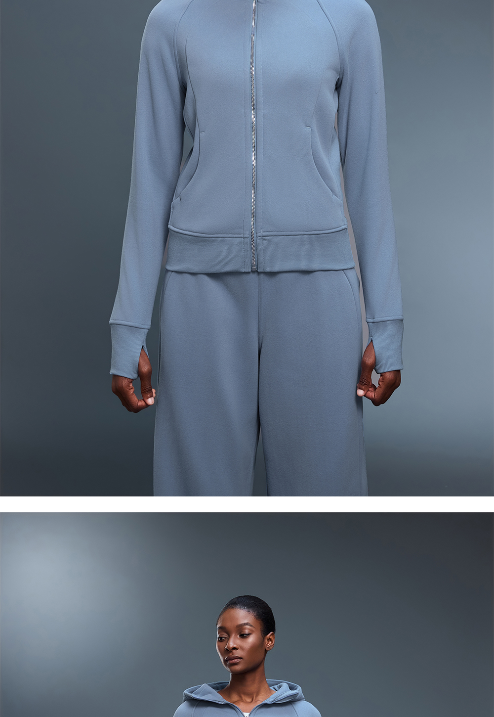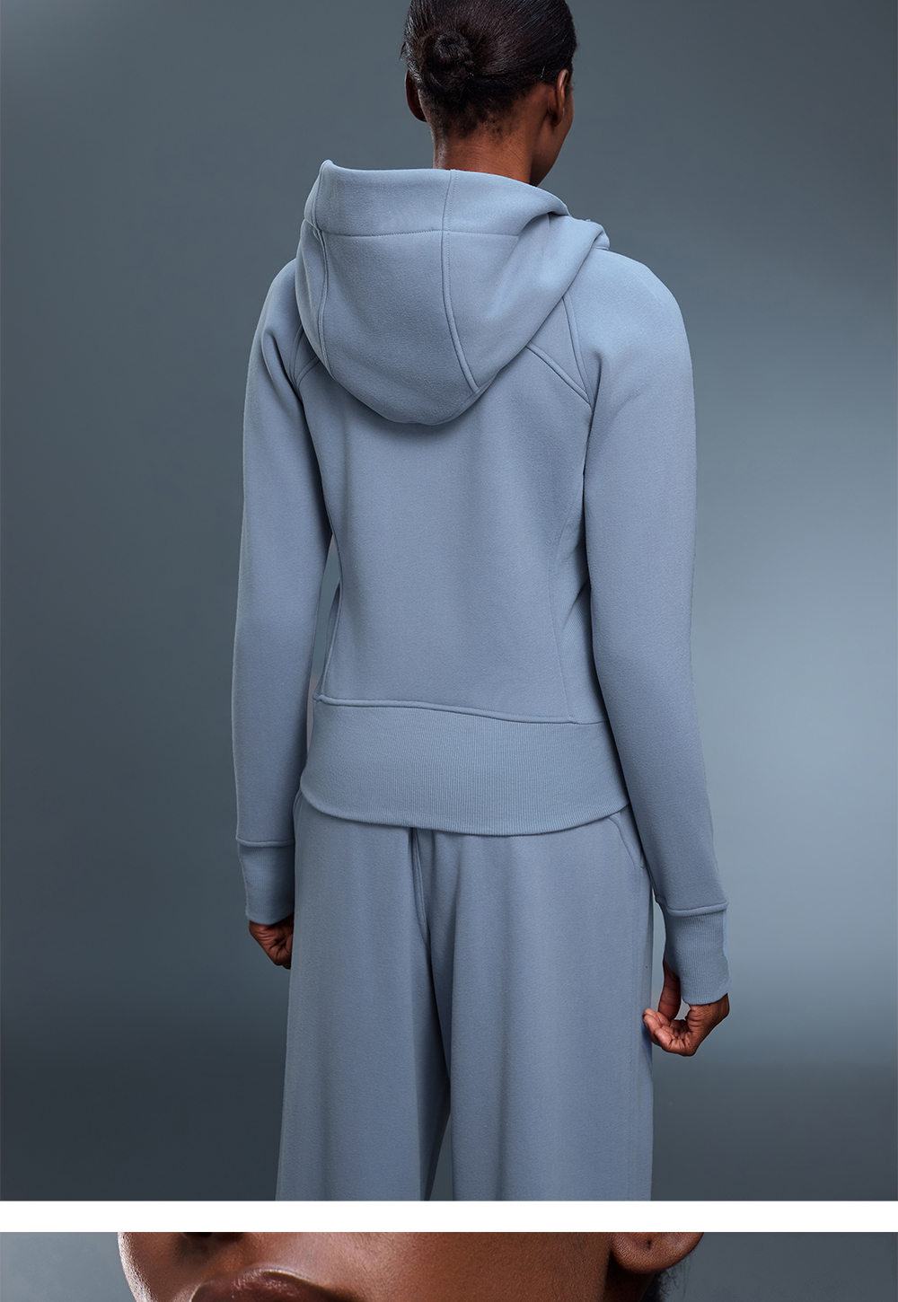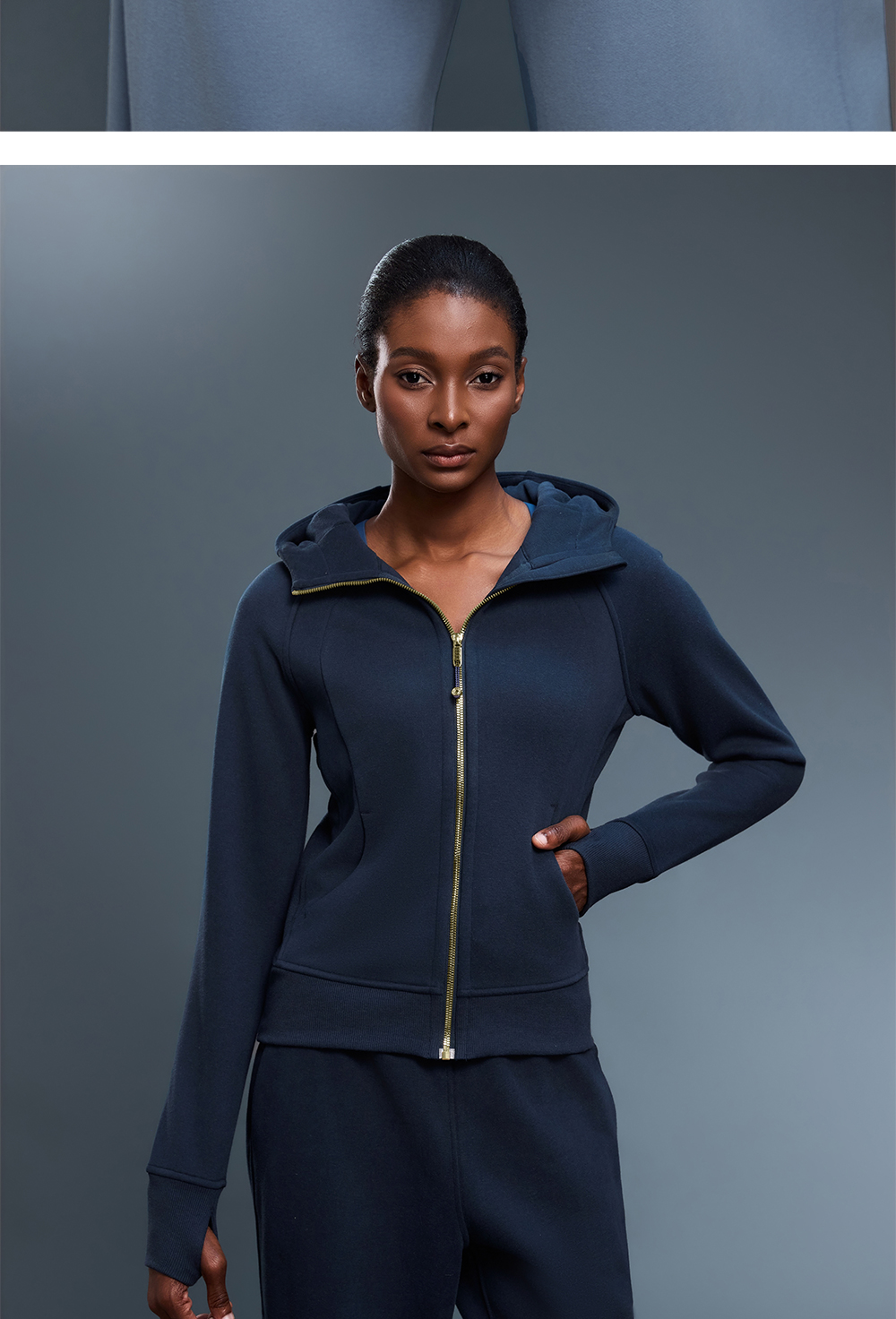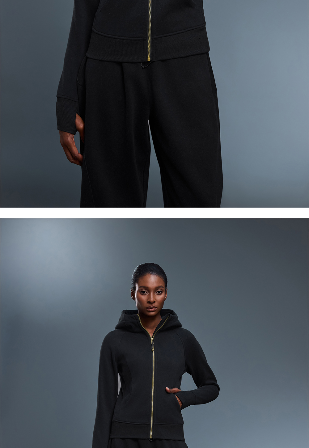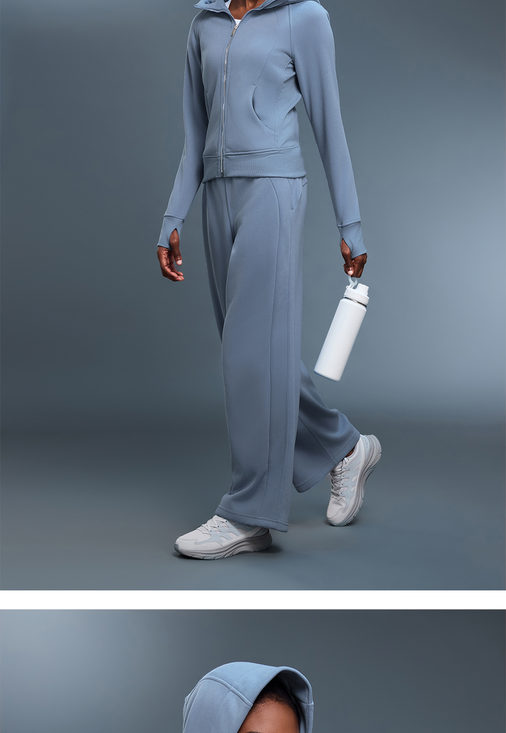 American Sports Jacket for Women in Autumn and Winter, Fleece-Lined, Thickened, Slim-Fit, Hooded, Casual Running, Yoga, Fitness Cardigan Sweatshirt