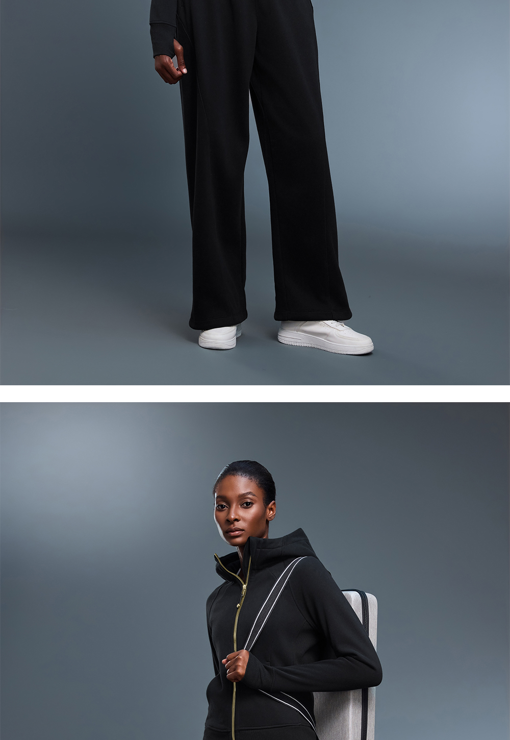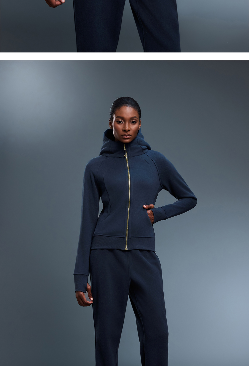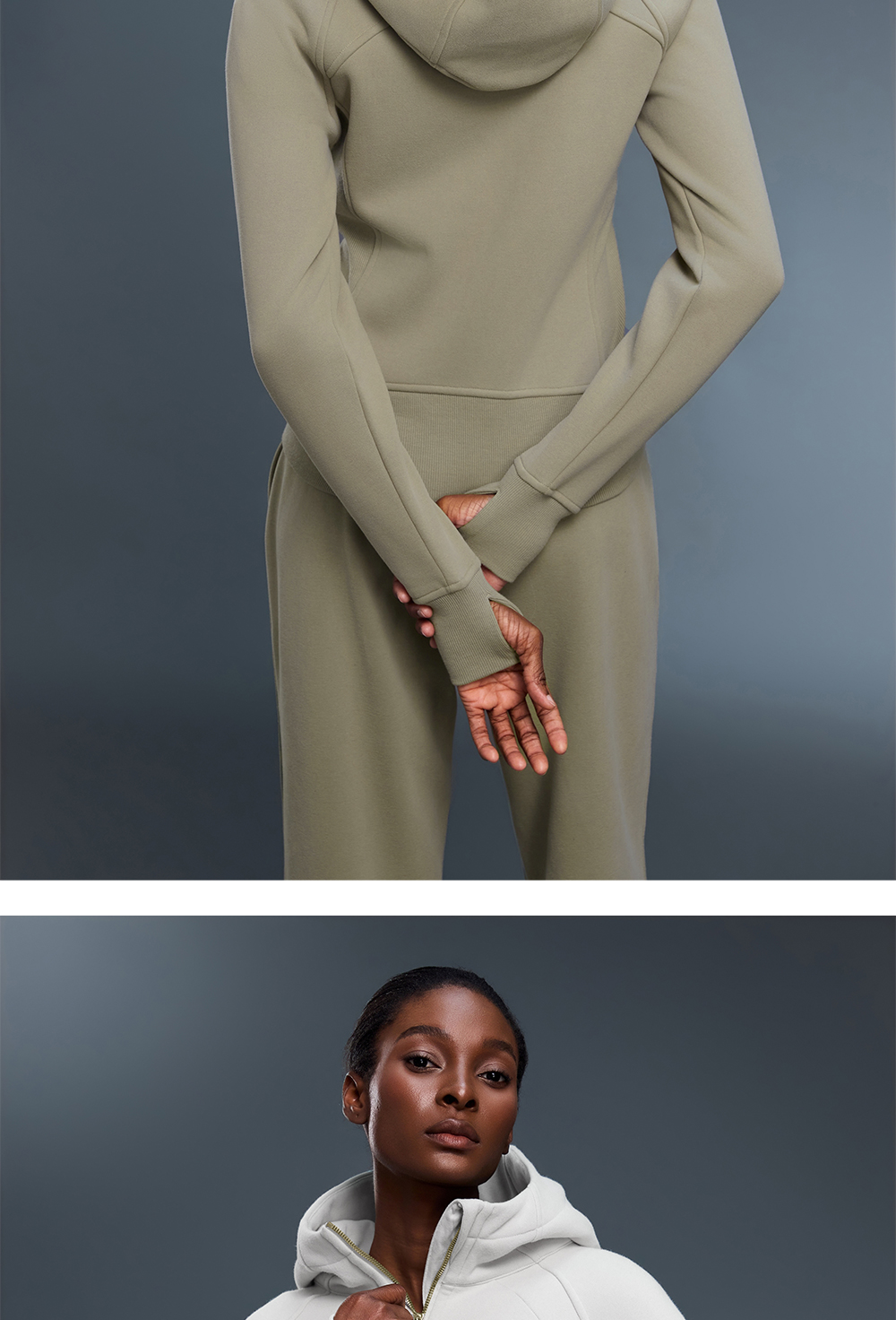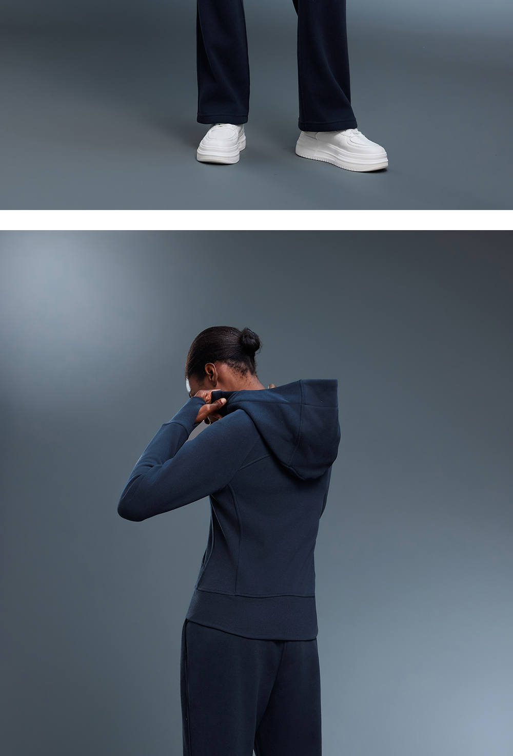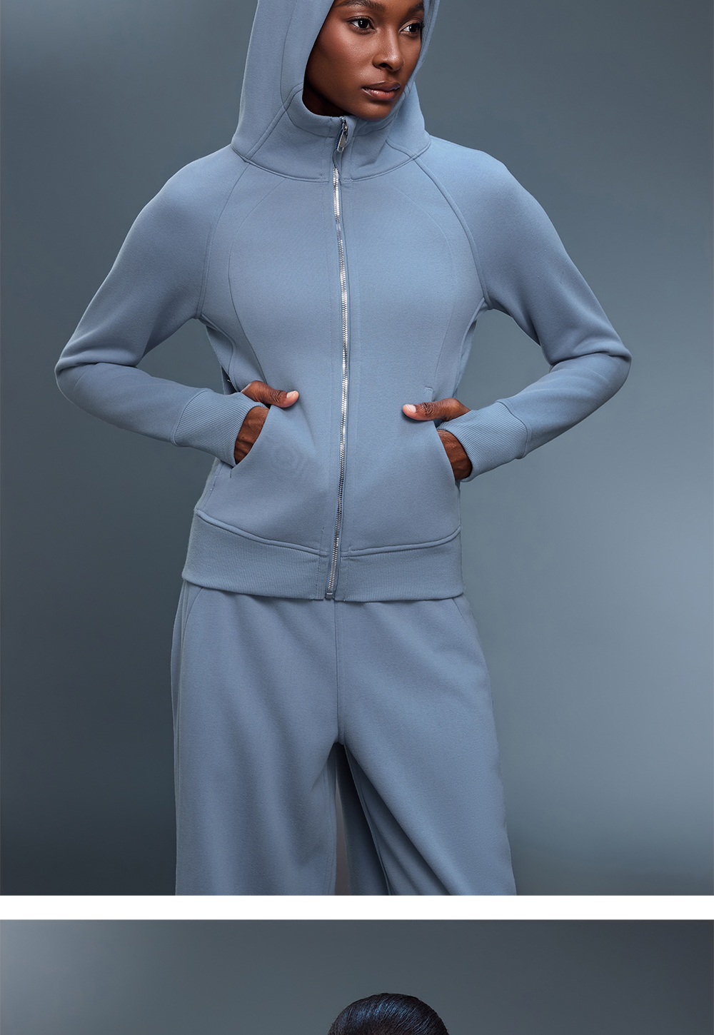 American Sports Jacket for Women in Autumn and Winter, Fleece-Lined, Thickened, Slim-Fit, Hooded, Casual Running, Yoga, Fitness Cardigan Sweatshirt