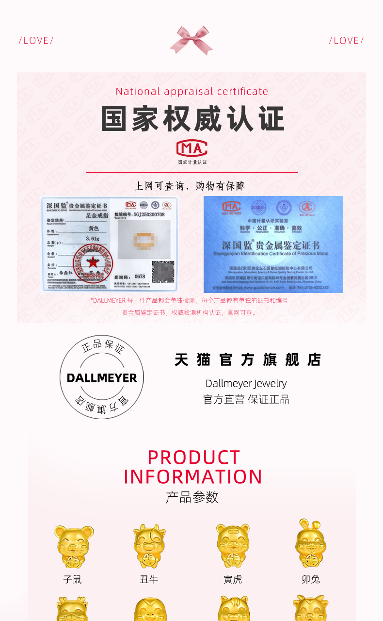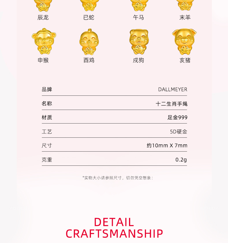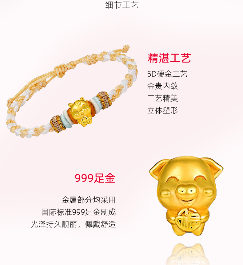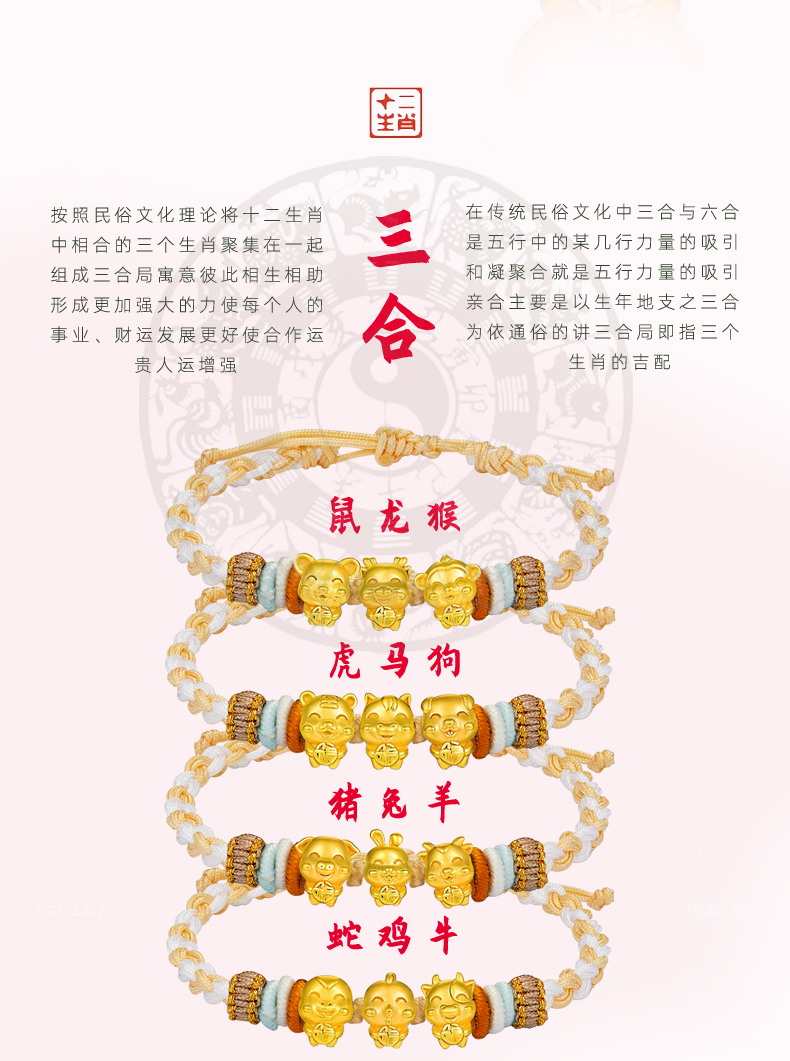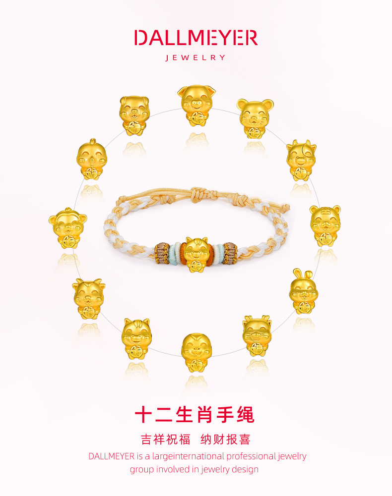 Dallmeyer Zodiac Bracelet Pure Gold 999 Gold Bracelet Three Harmonies Zodiac Year Gift for Girlfriend