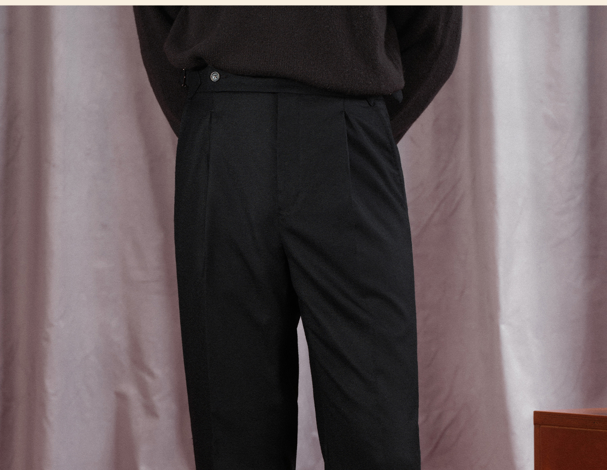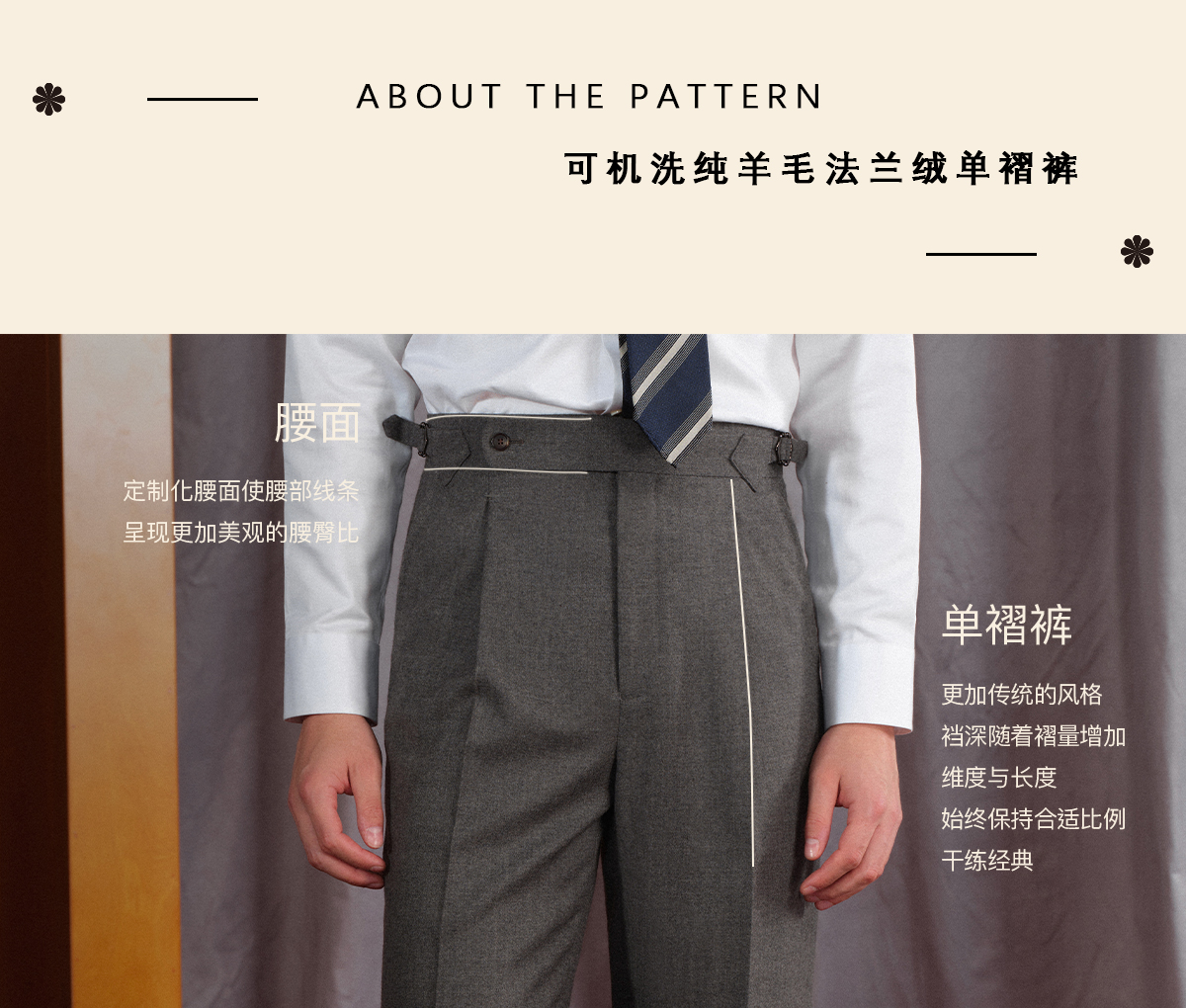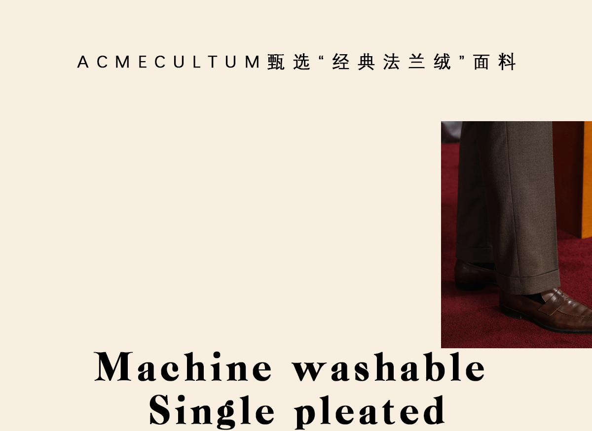 Acme cultum machine washable wool flannel easy-care single pleated trousers men's business formal silm pants