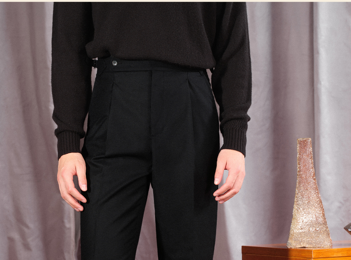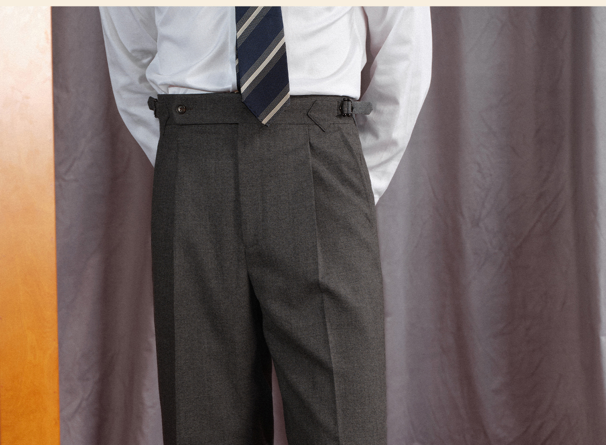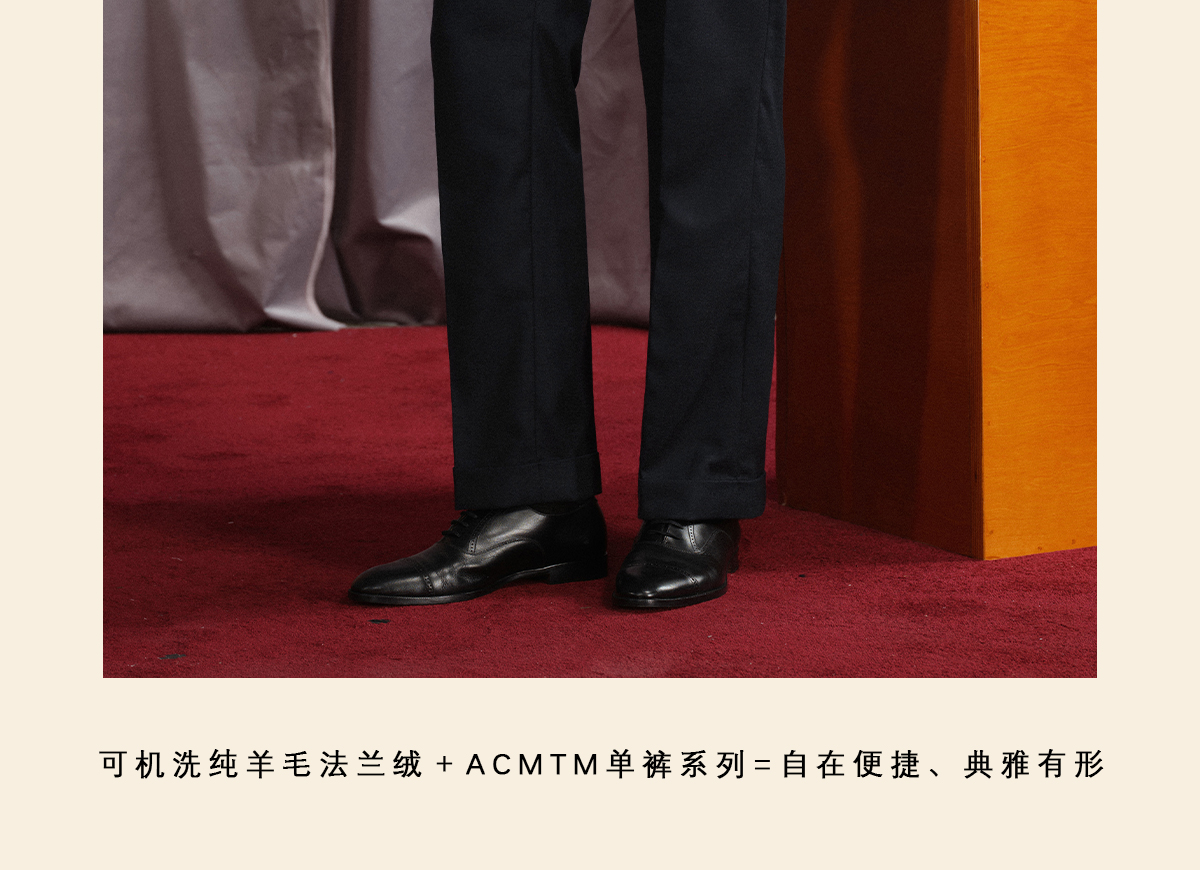 Acme cultum machine washable wool flannel easy-care single pleated trousers men's business formal silm pants