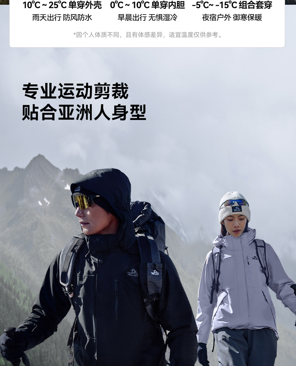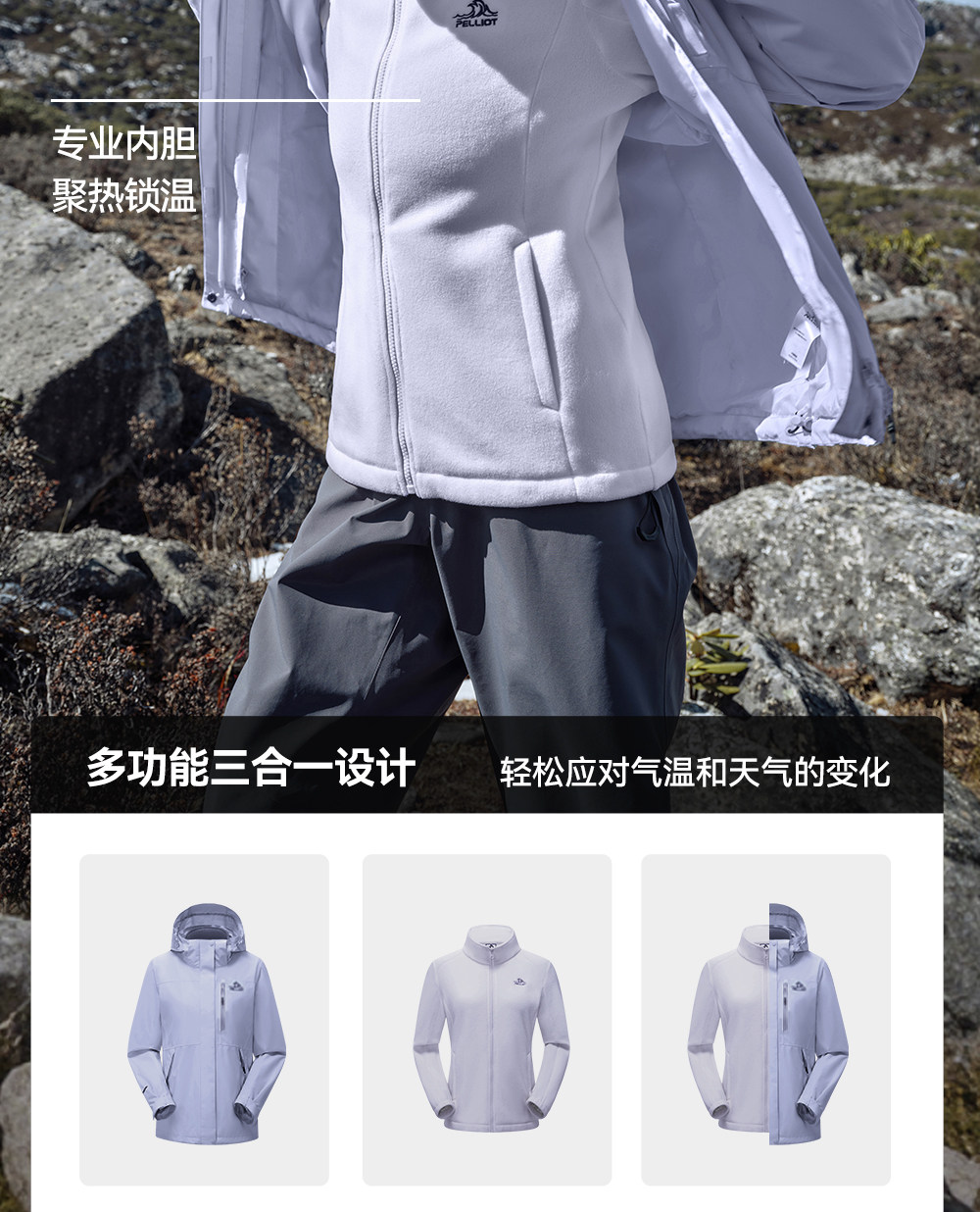 [New Color Release] Pelliot Mountain Purple Outdoor Jacket for Women, New Winter Three-In-One Windproof Jacket for Men