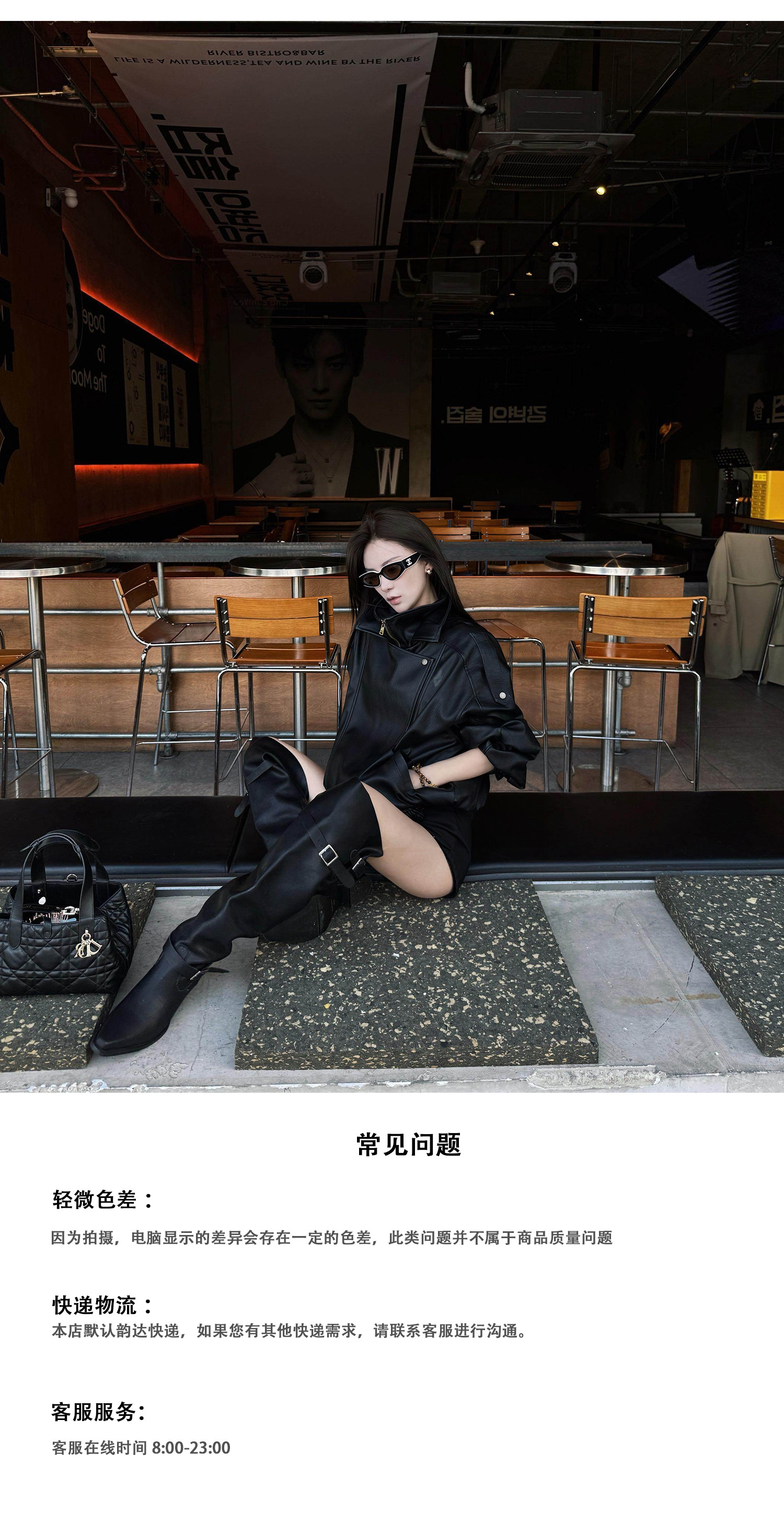 Chen Bu Ku High-End Black Leather Jacket for Women, Spring Cool and Stylish Loose Protein Leather Biker Jacket with Stand Collar