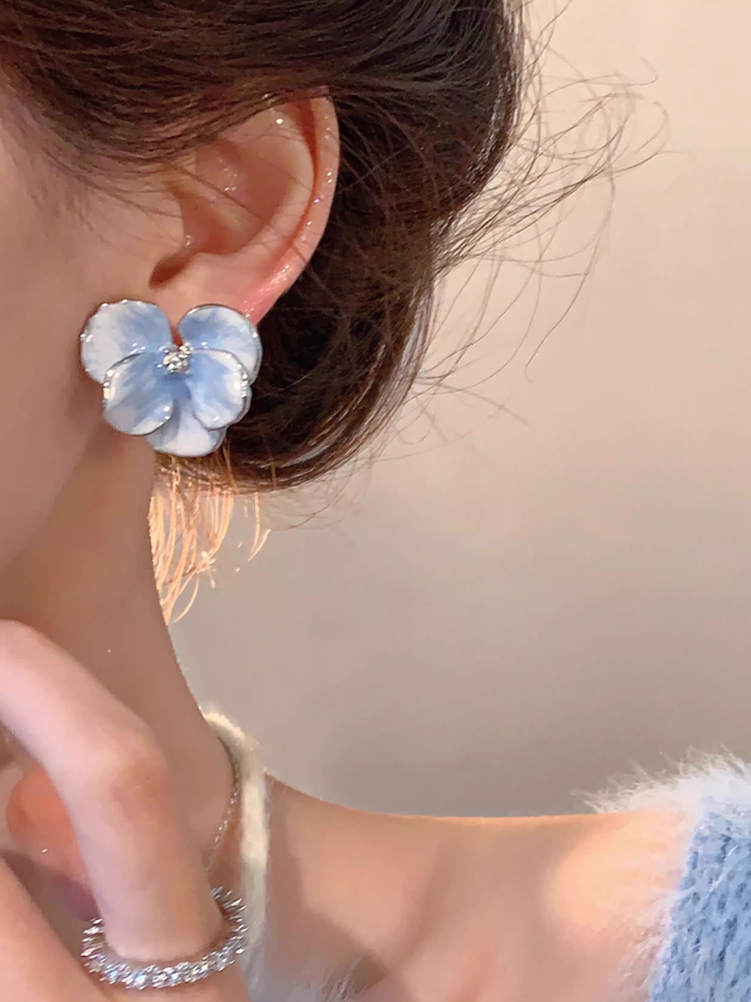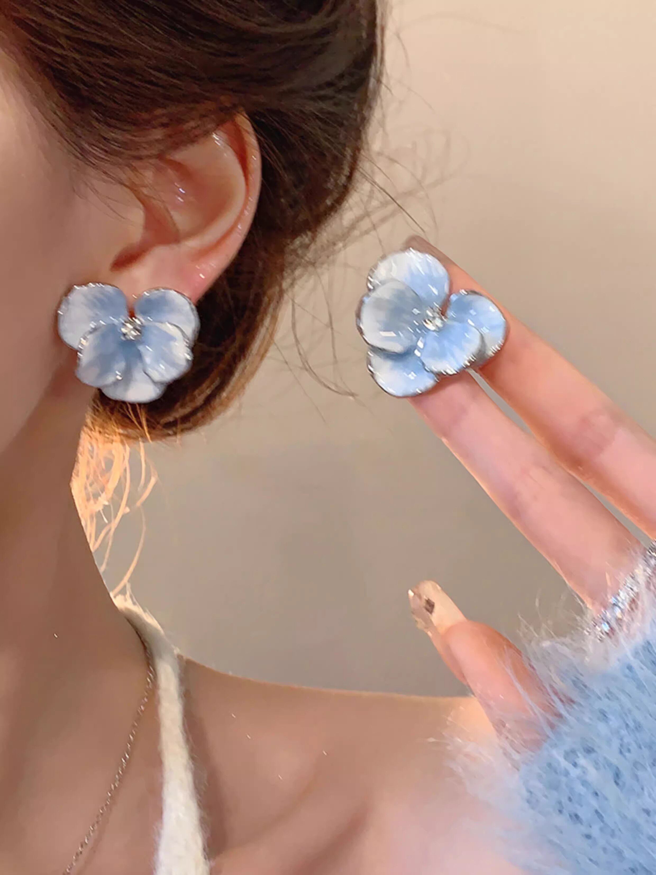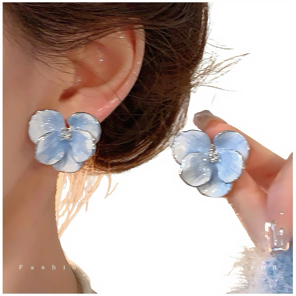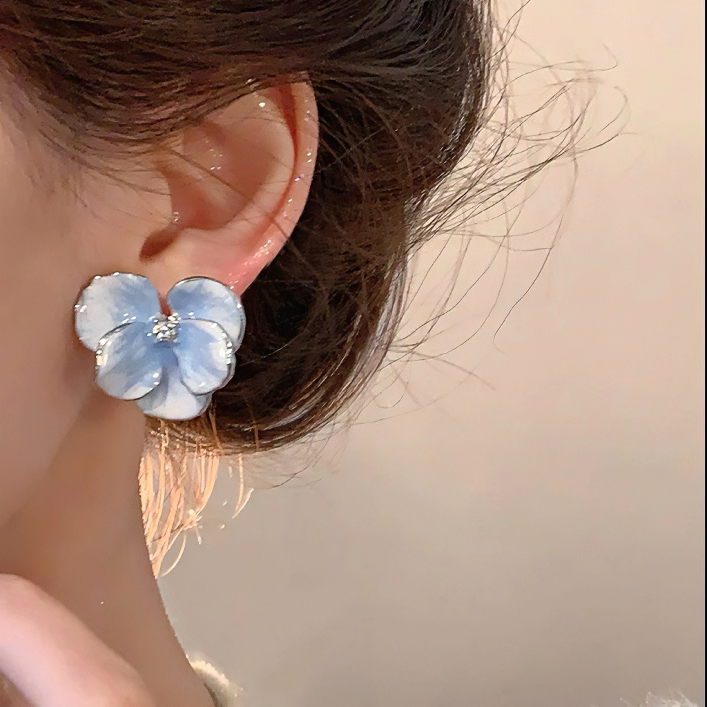Blue Real Flower Earrings, Niche Design, High-End Feel, Vintage Petal Studs, Women's Light Luxury Unique Earrings