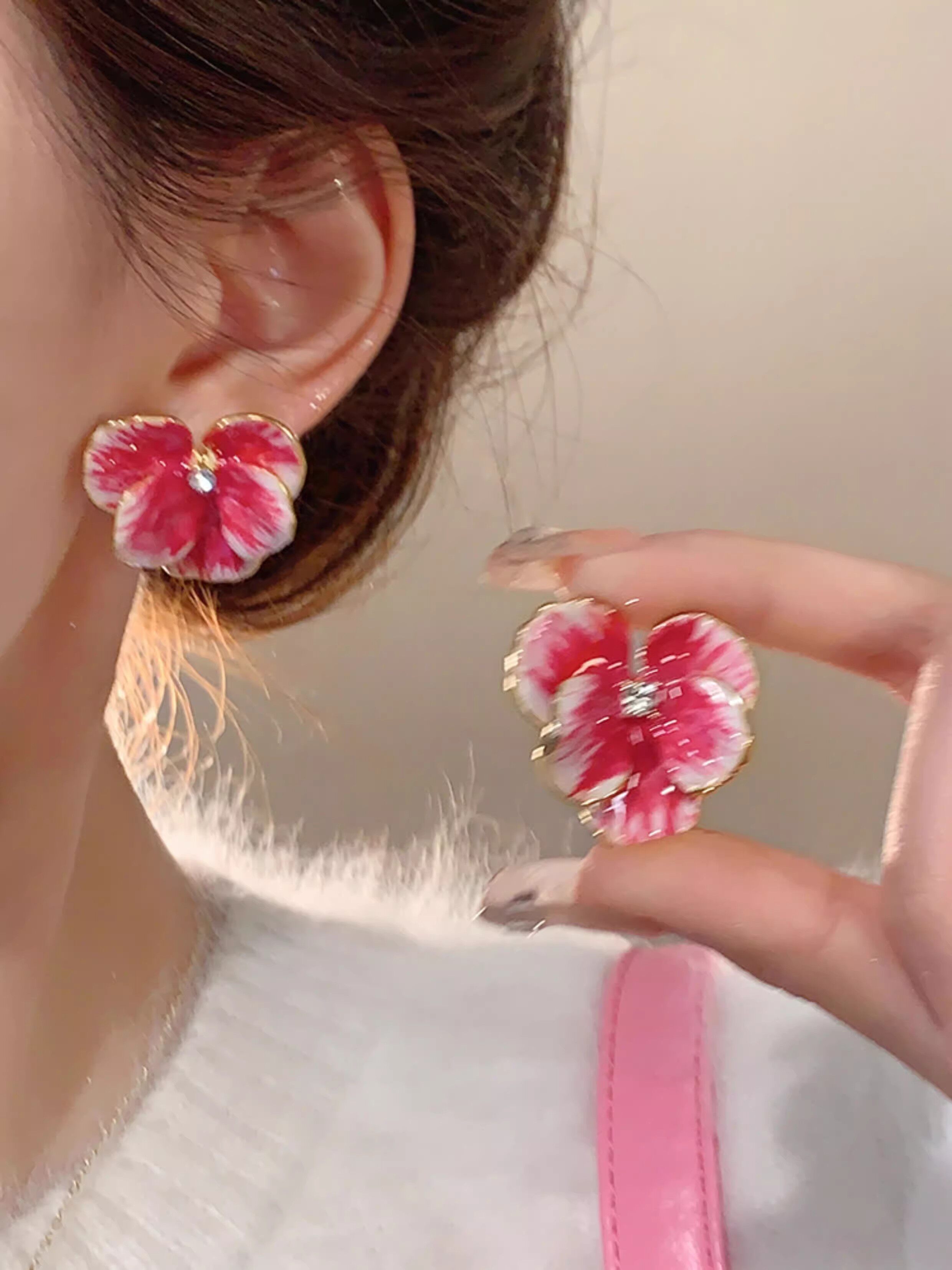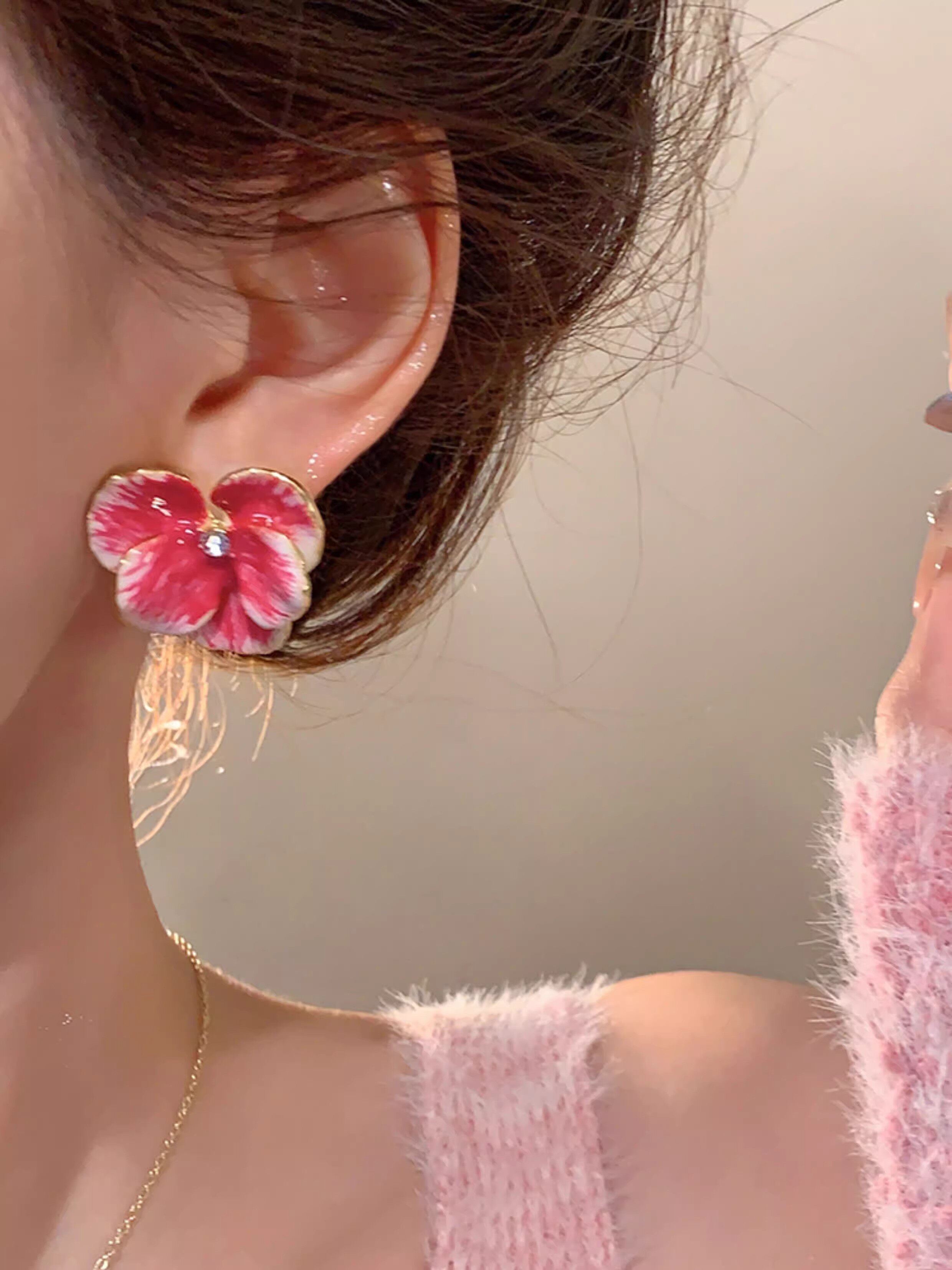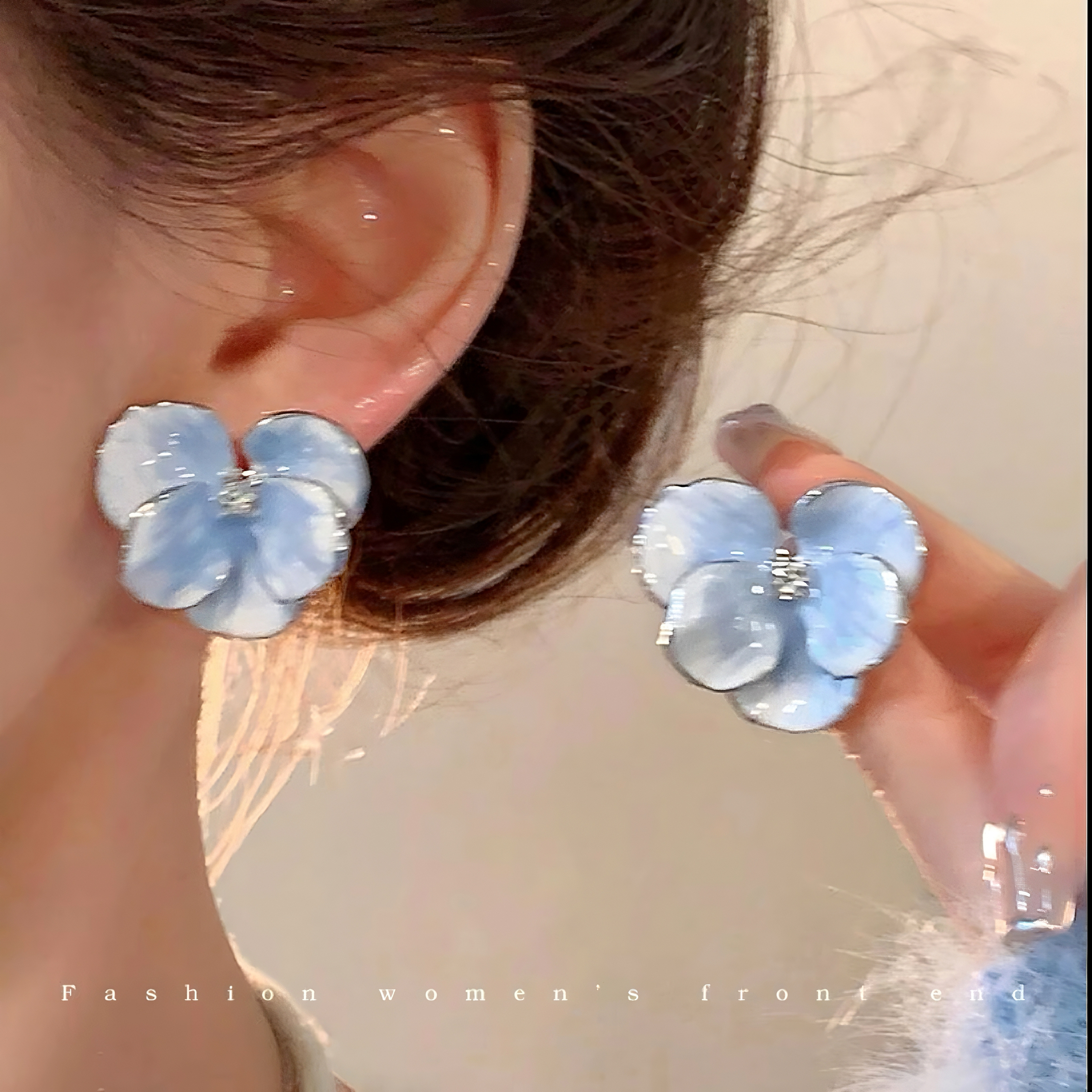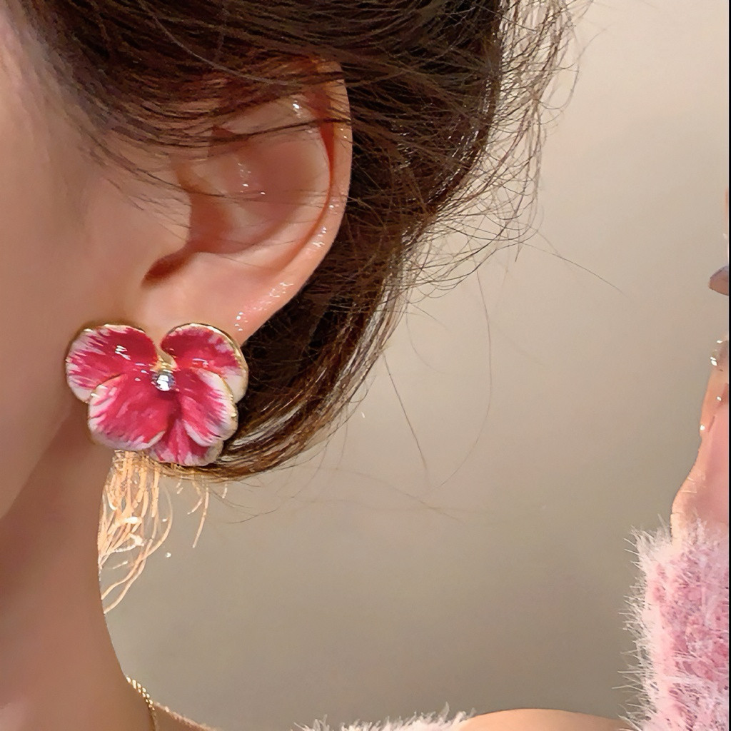 Blue Real Flower Earrings, Niche Design, High-End Feel, Vintage Petal Studs, Women's Light Luxury Unique Earrings
